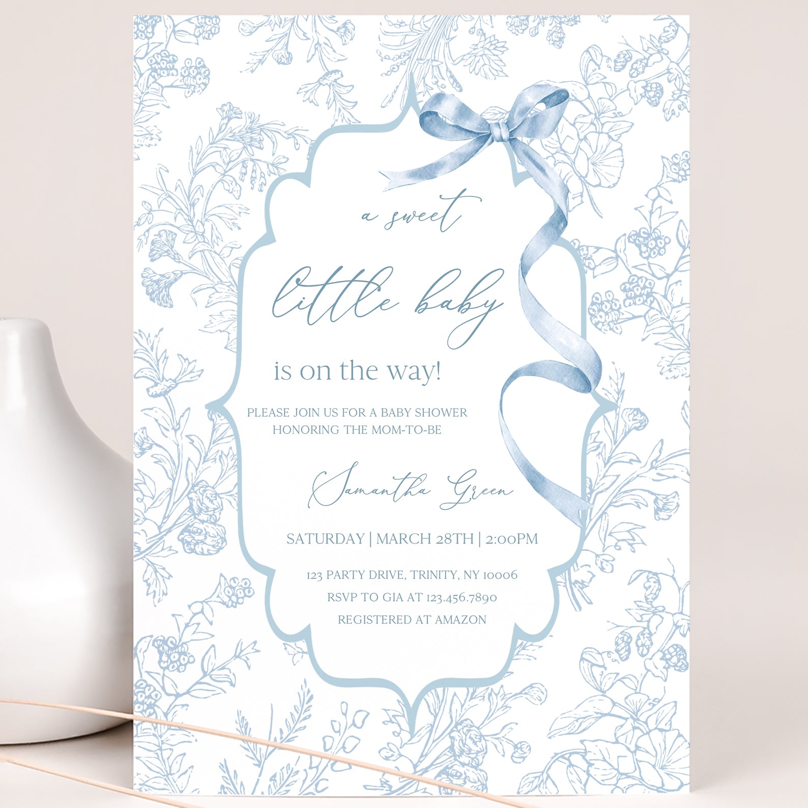 Elegant Blue Baby Shower Digital Invite: A Sweet Little Boy