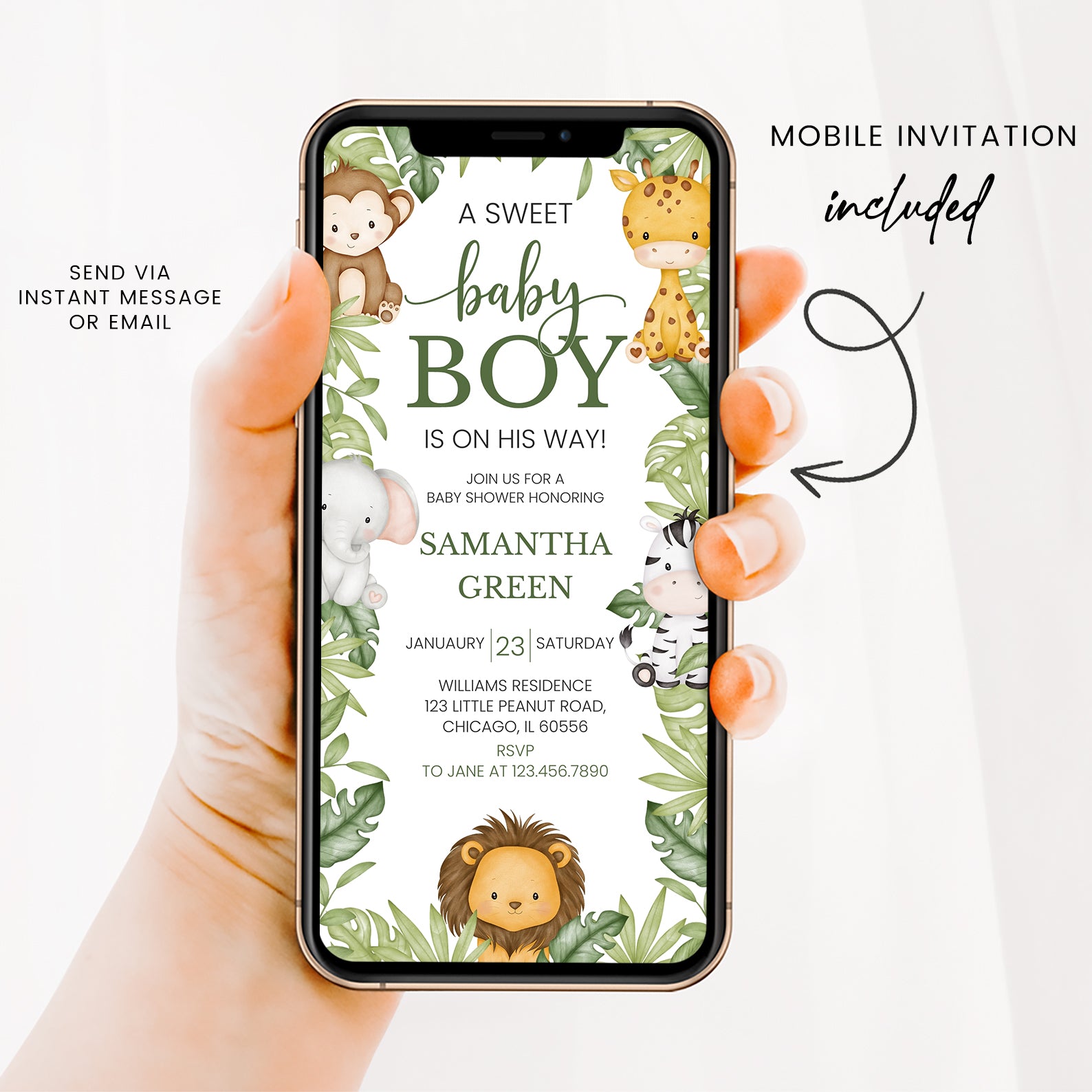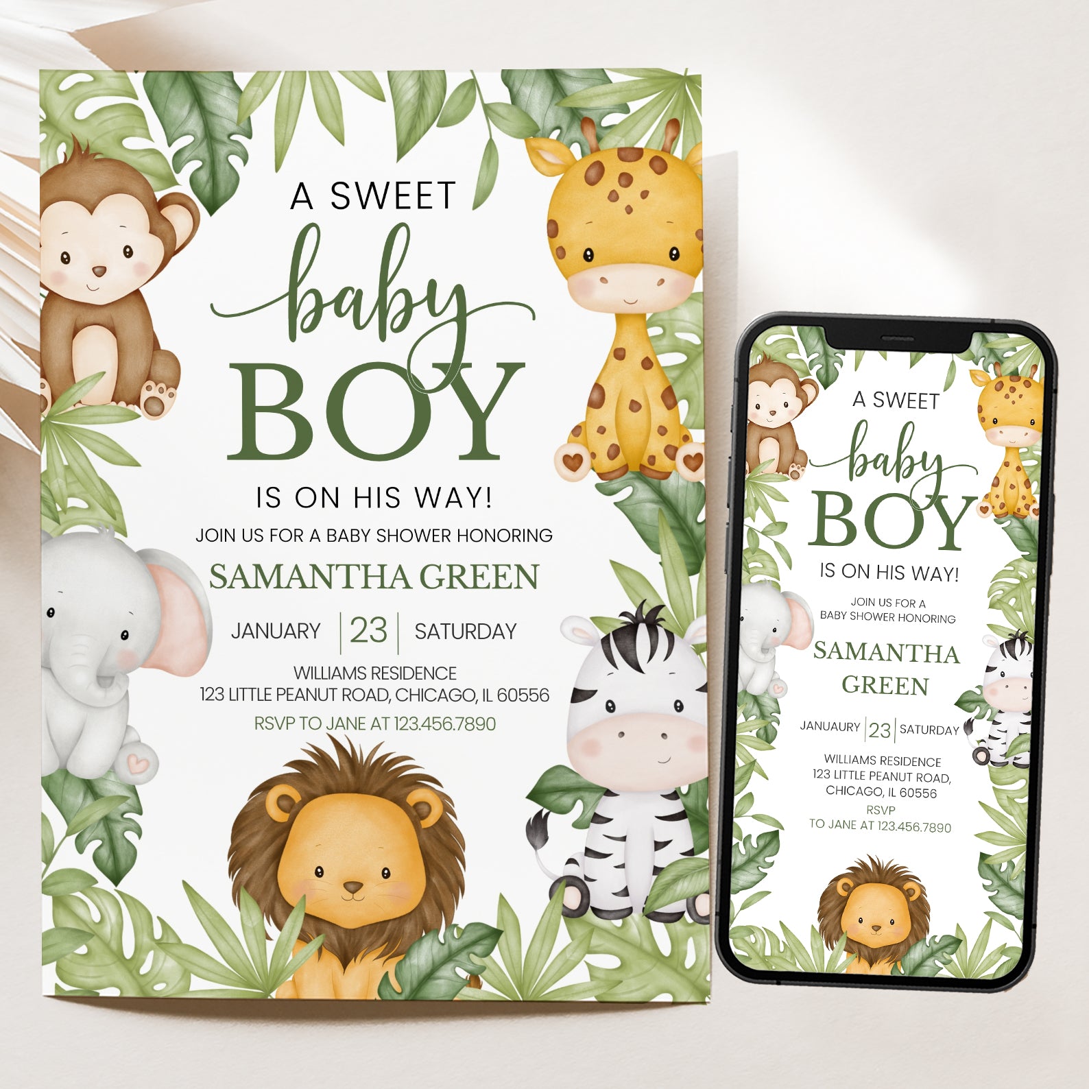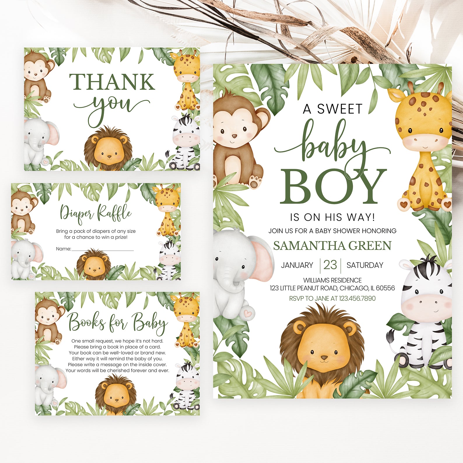 Jungle Safari Baby Shower Invite Bundle: Cute Animal Theme