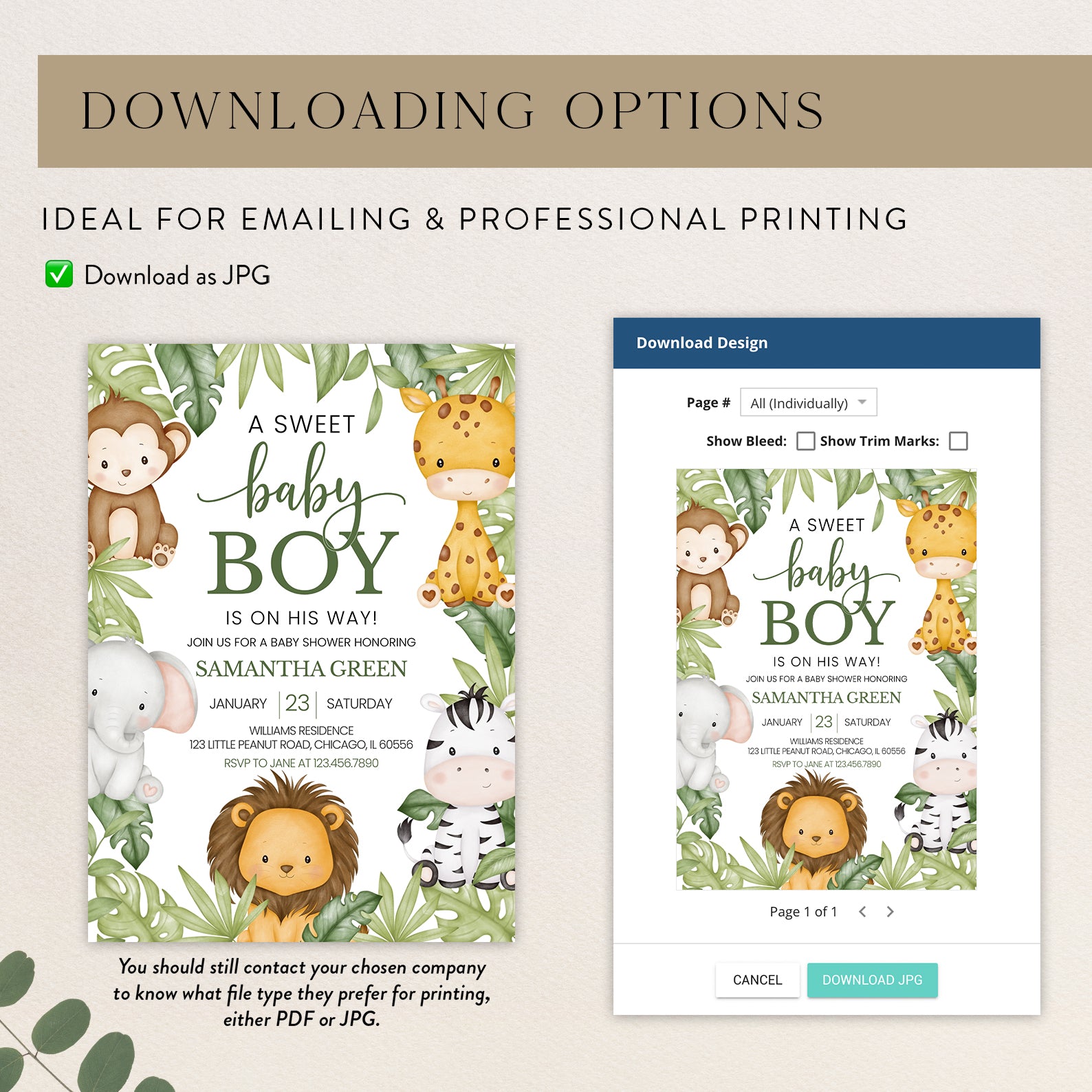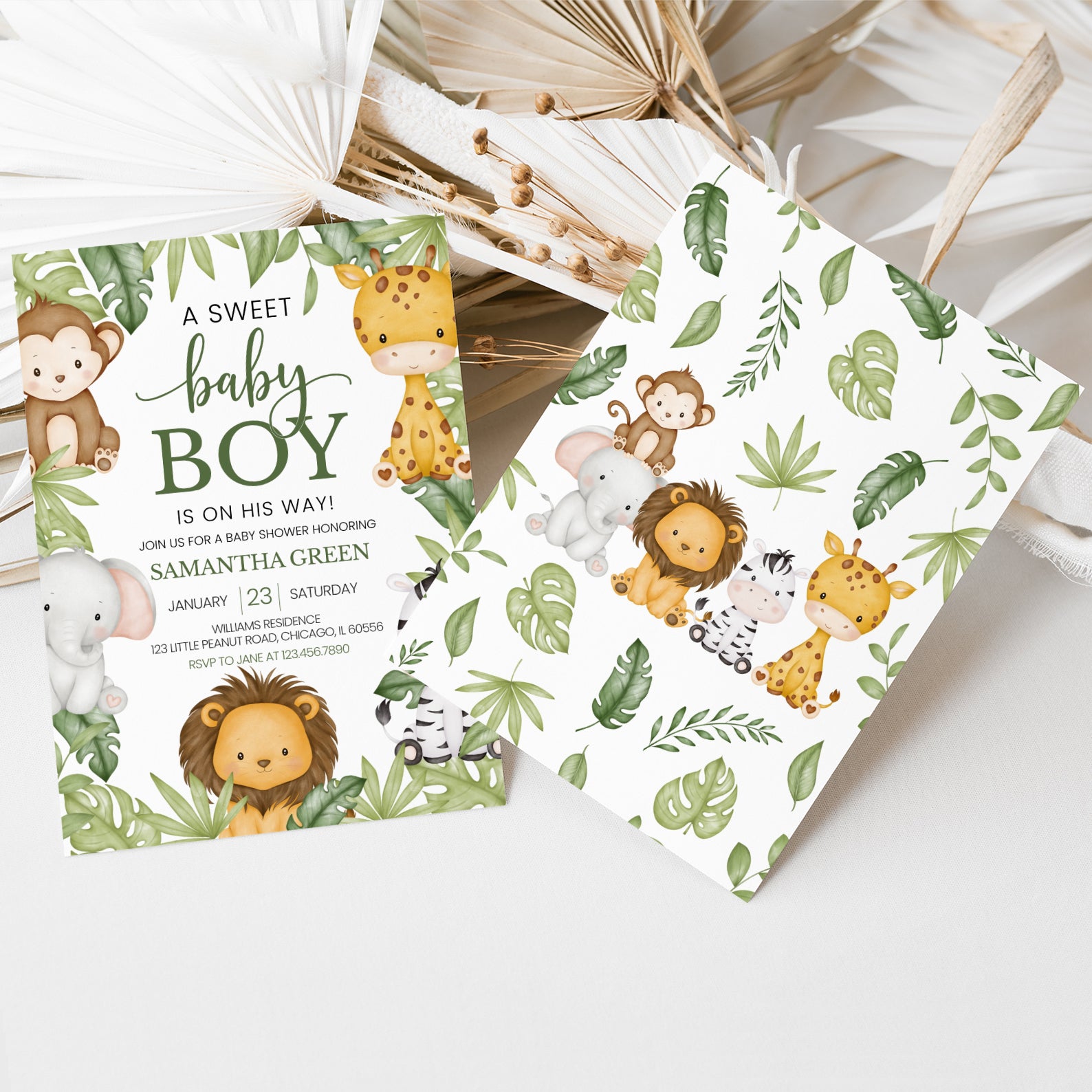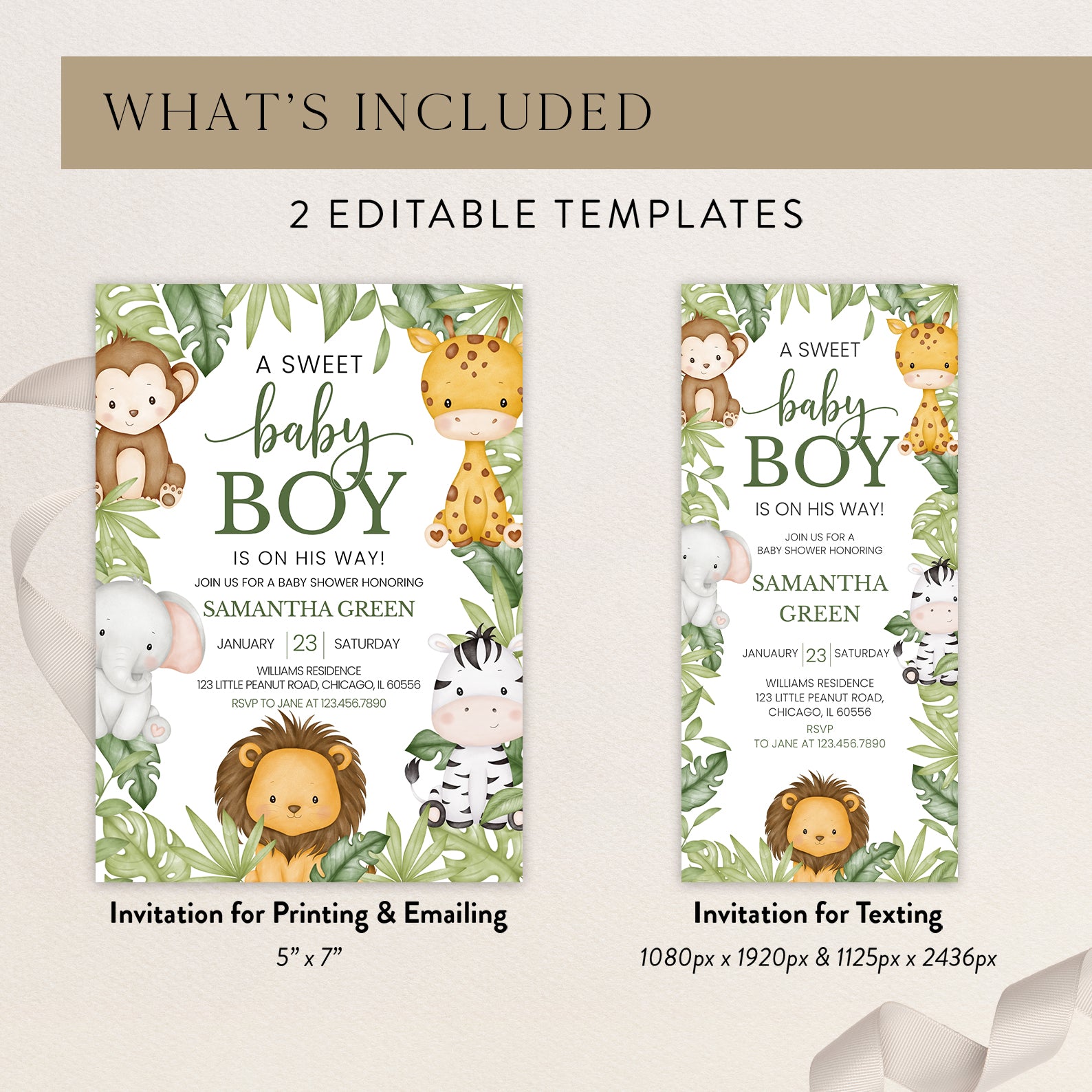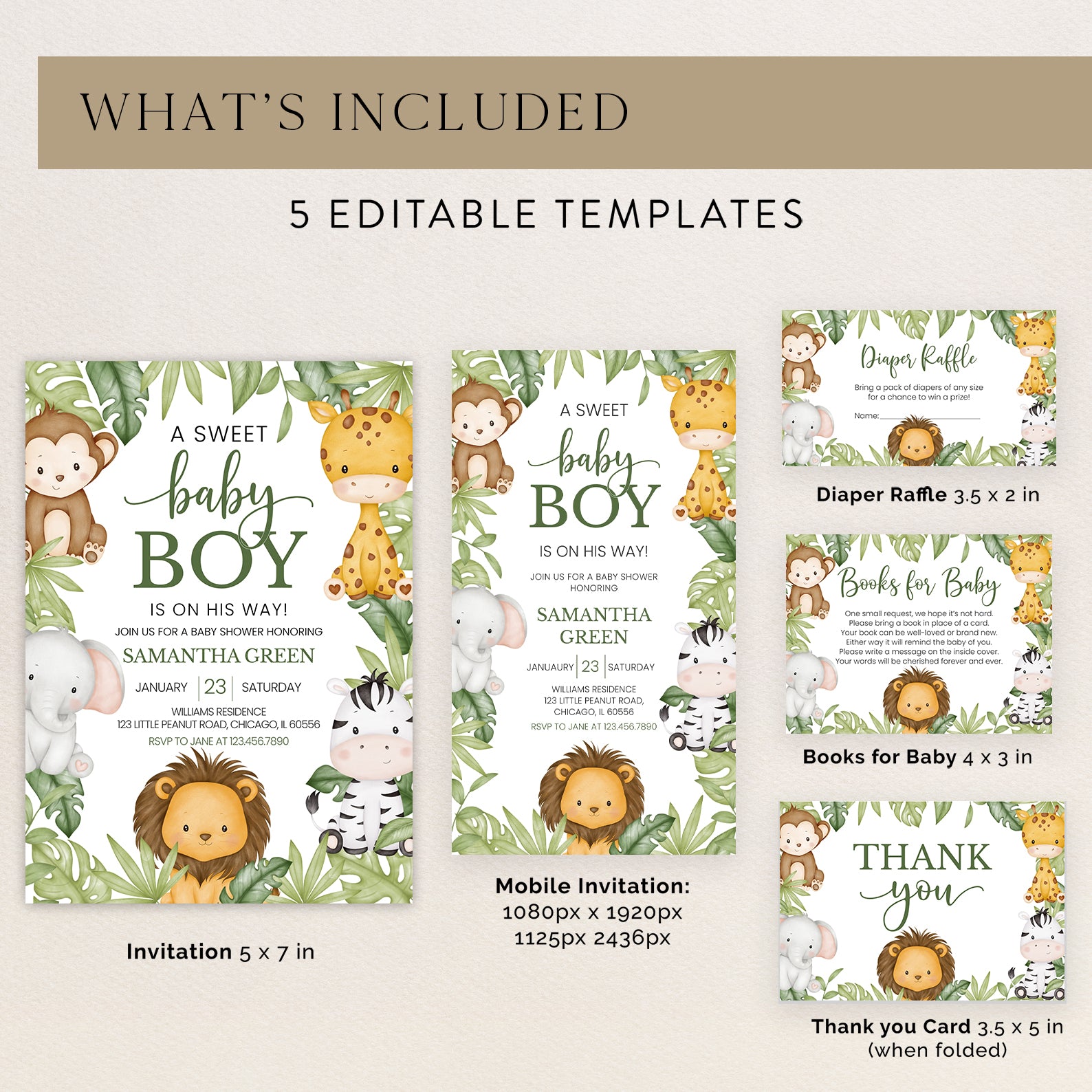 - Purchase this Jungle Safari Baby Shower Invite Bundle: Cute Animal Theme template