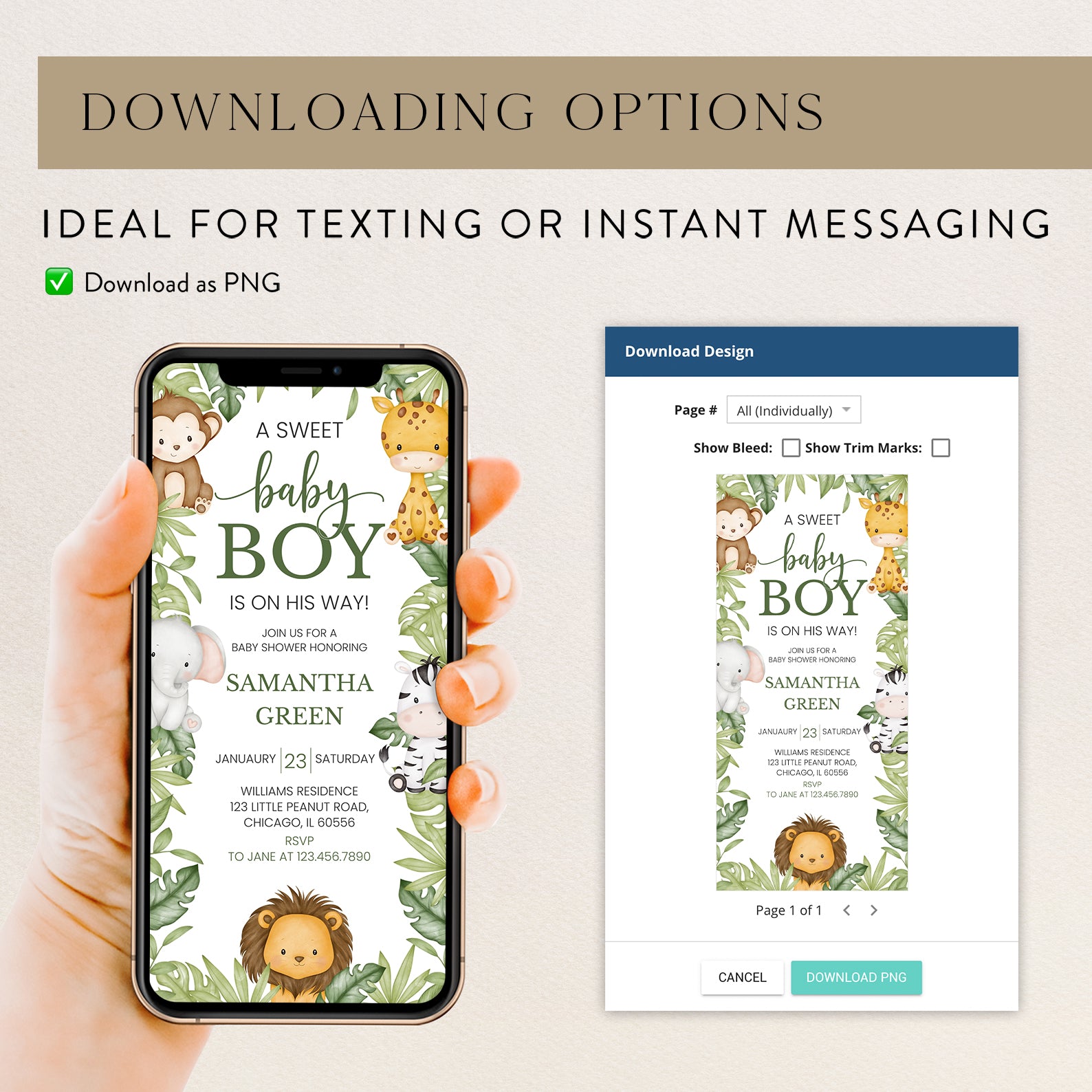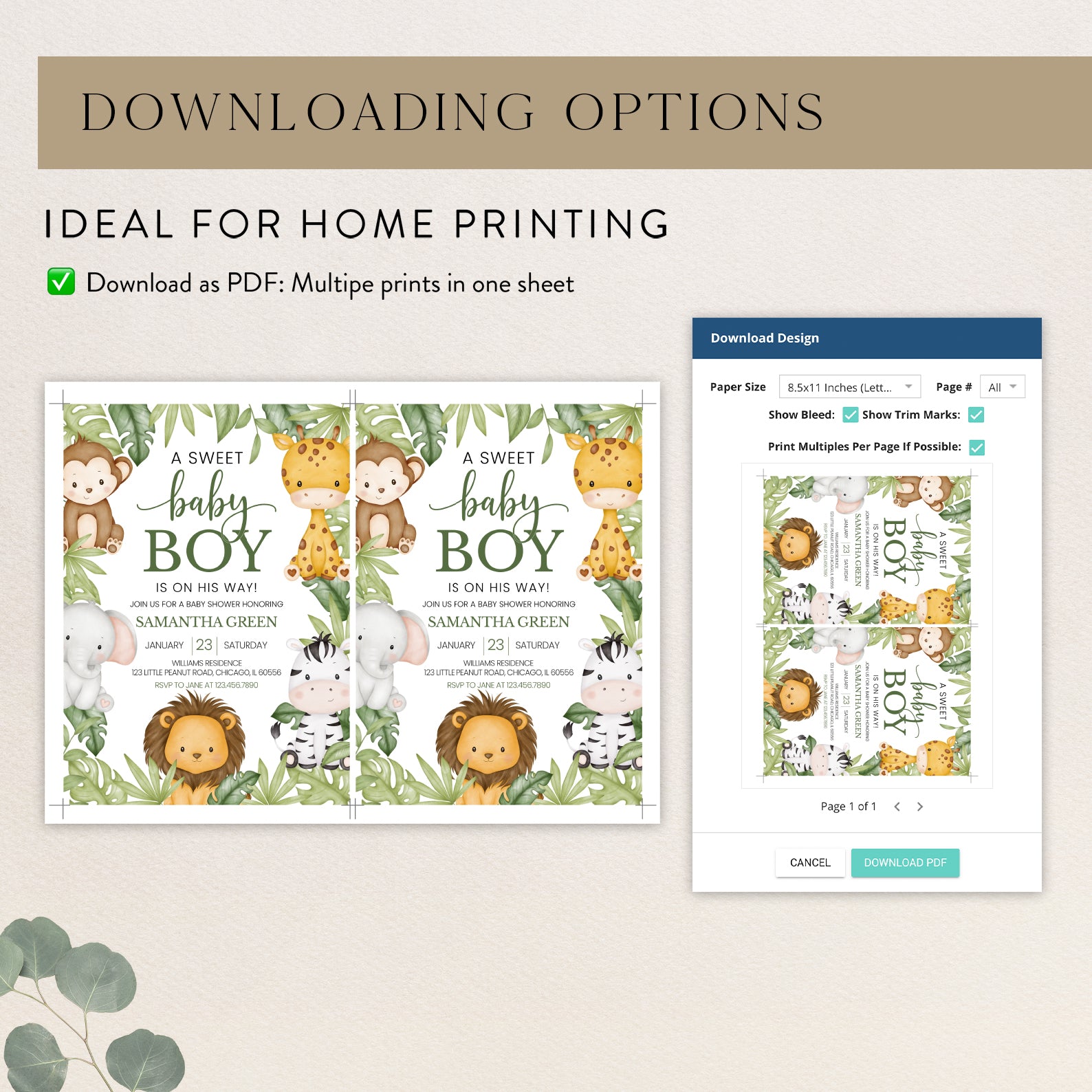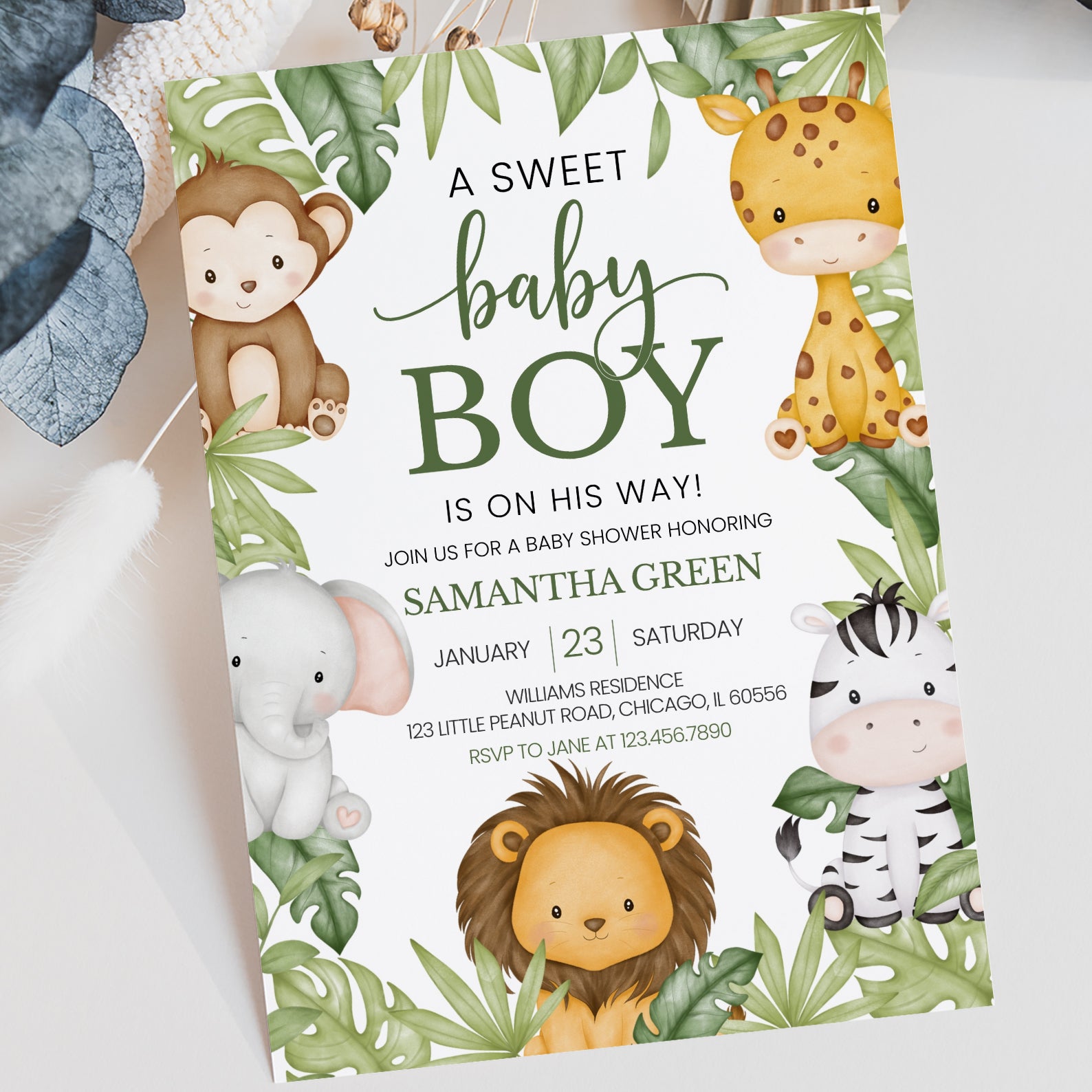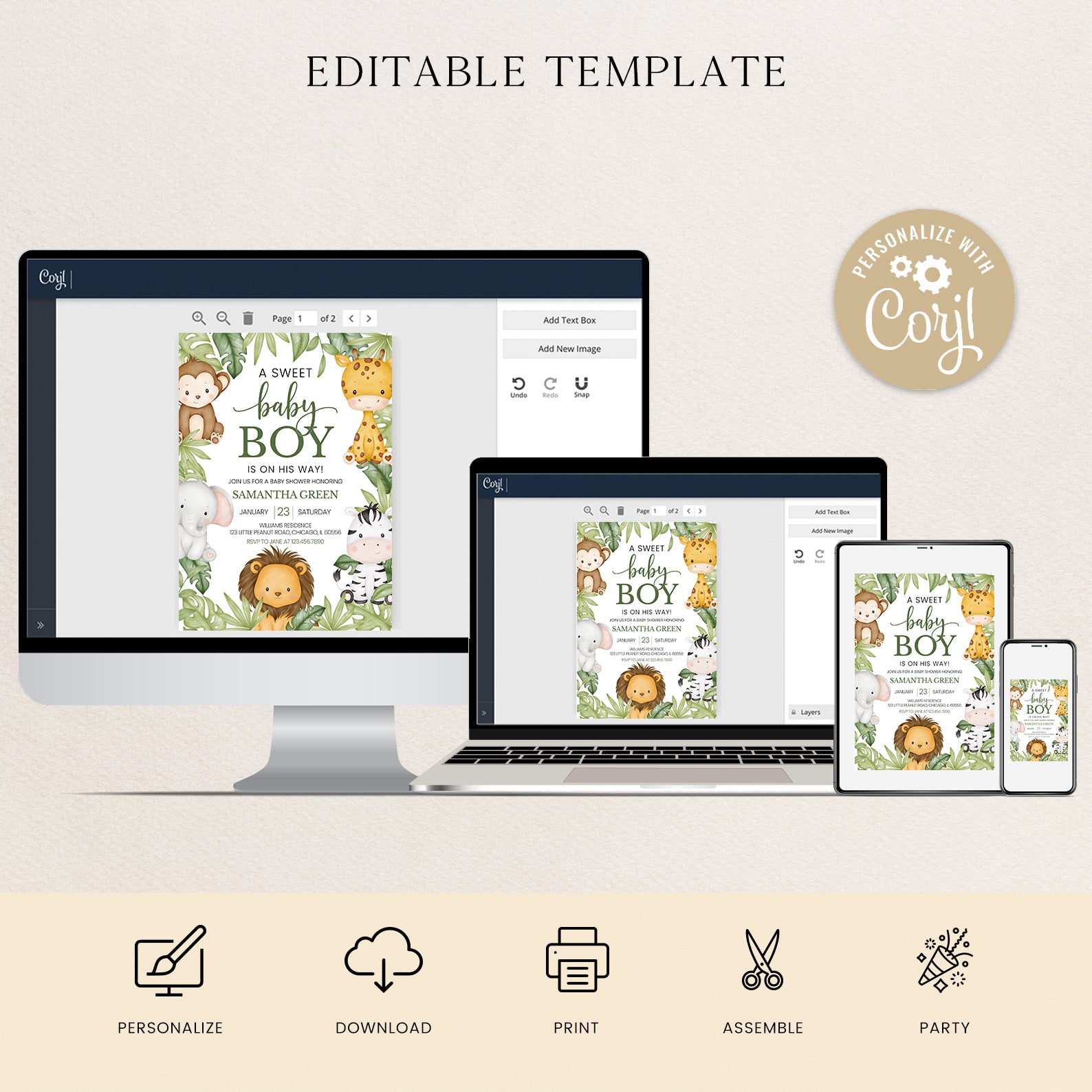 - Purchase this Jungle Safari Baby Shower Invite Bundle: Cute Animal Theme template
