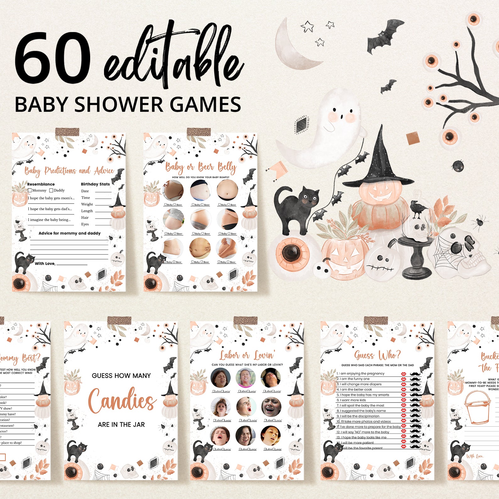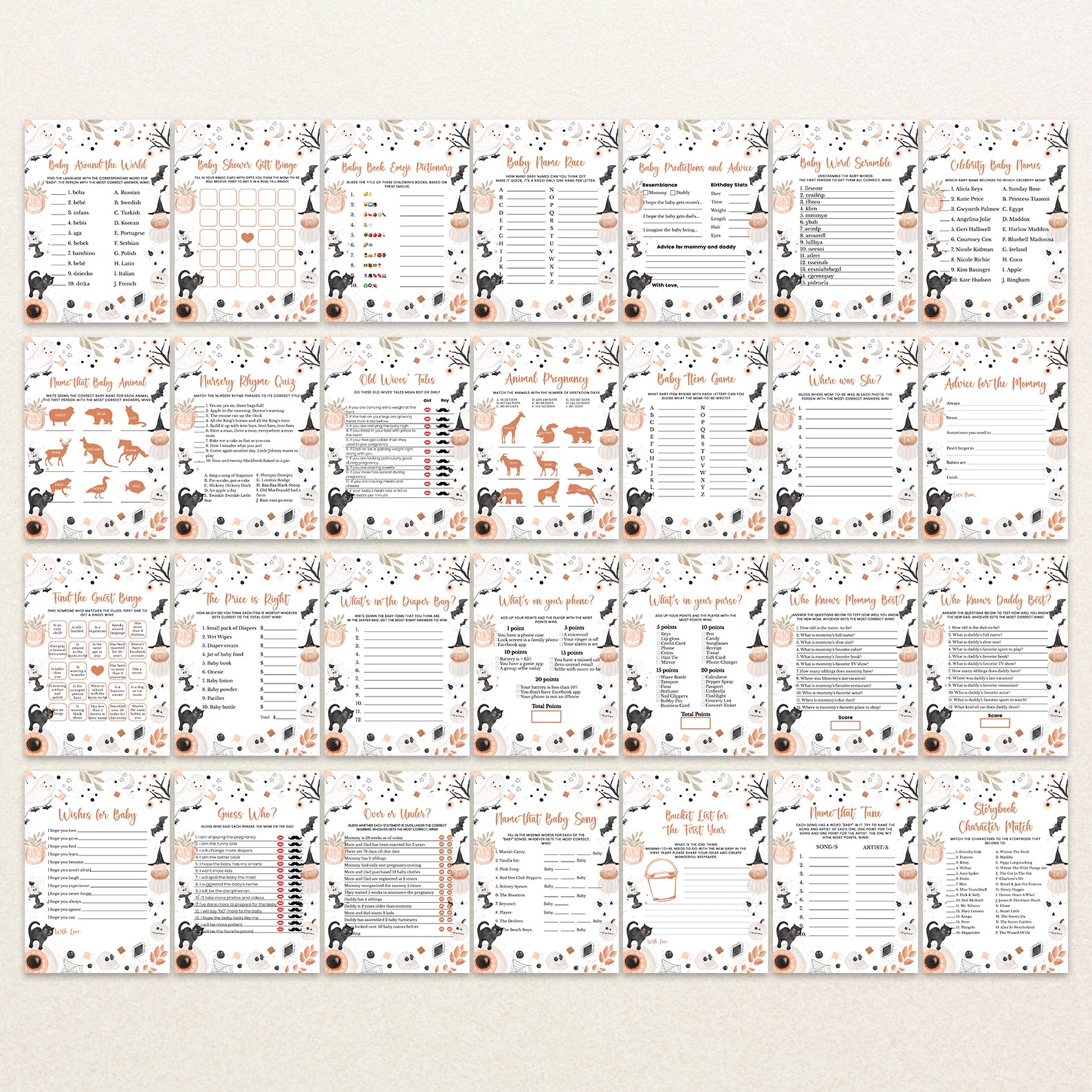 - Purchase this Cute Boho Halloween Digital Game Bundle: A Little Boo's Arrival template