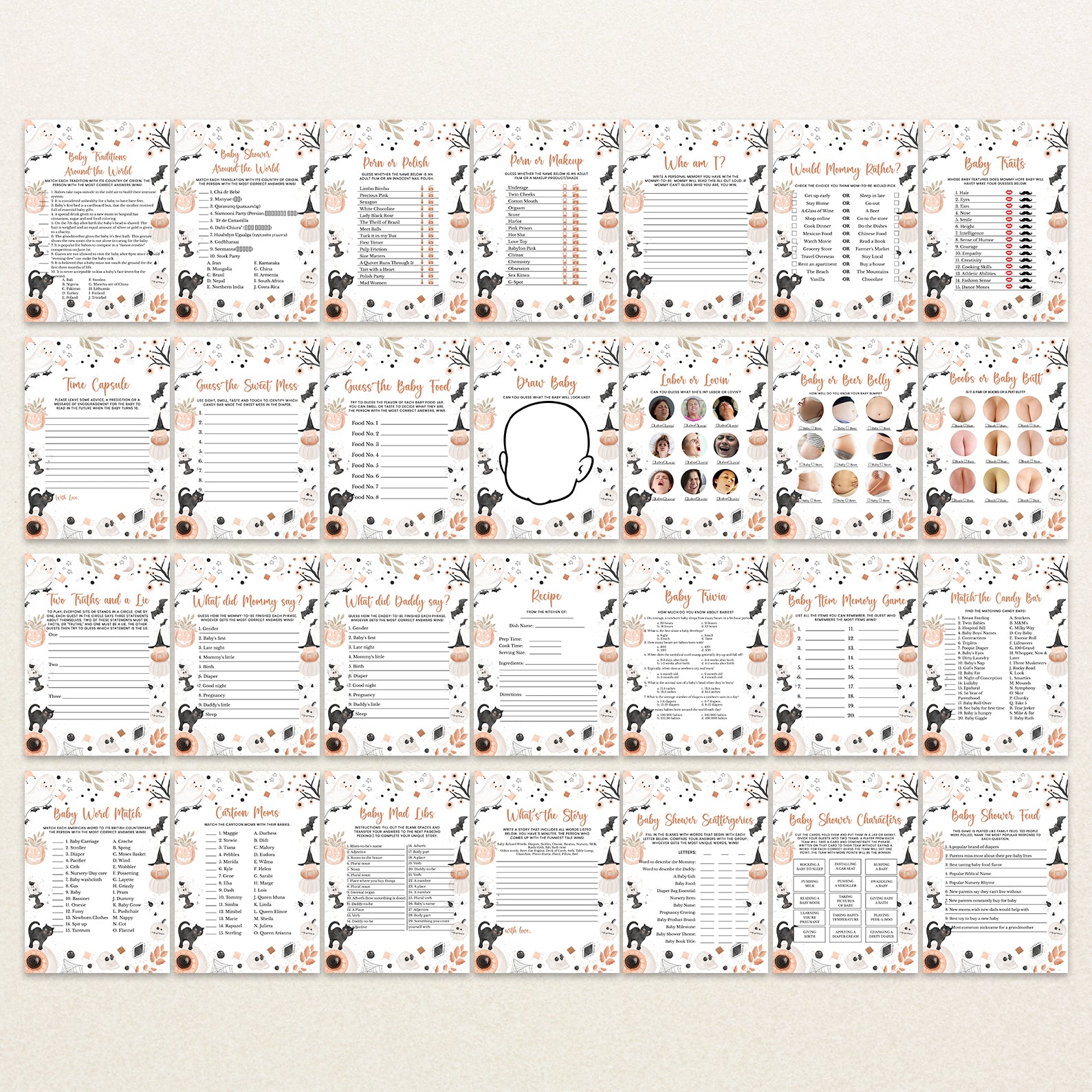 Celebrate the arrival of your little boo with our adorable Boho Halloween Baby Shower Game Bundle! This enchanting bundle features editable baby shower games, perfect for adding a touch of fun and festivity to your celebration.