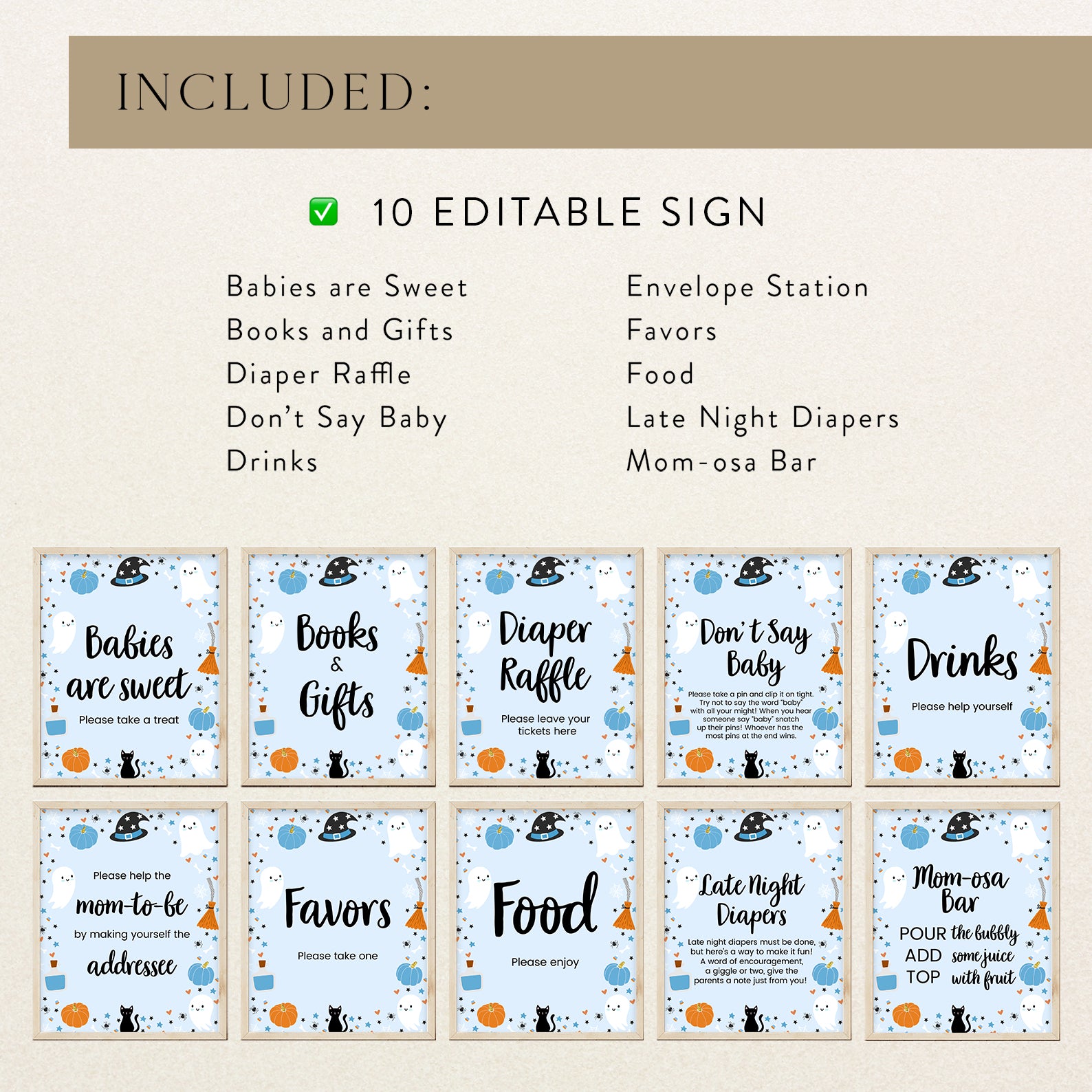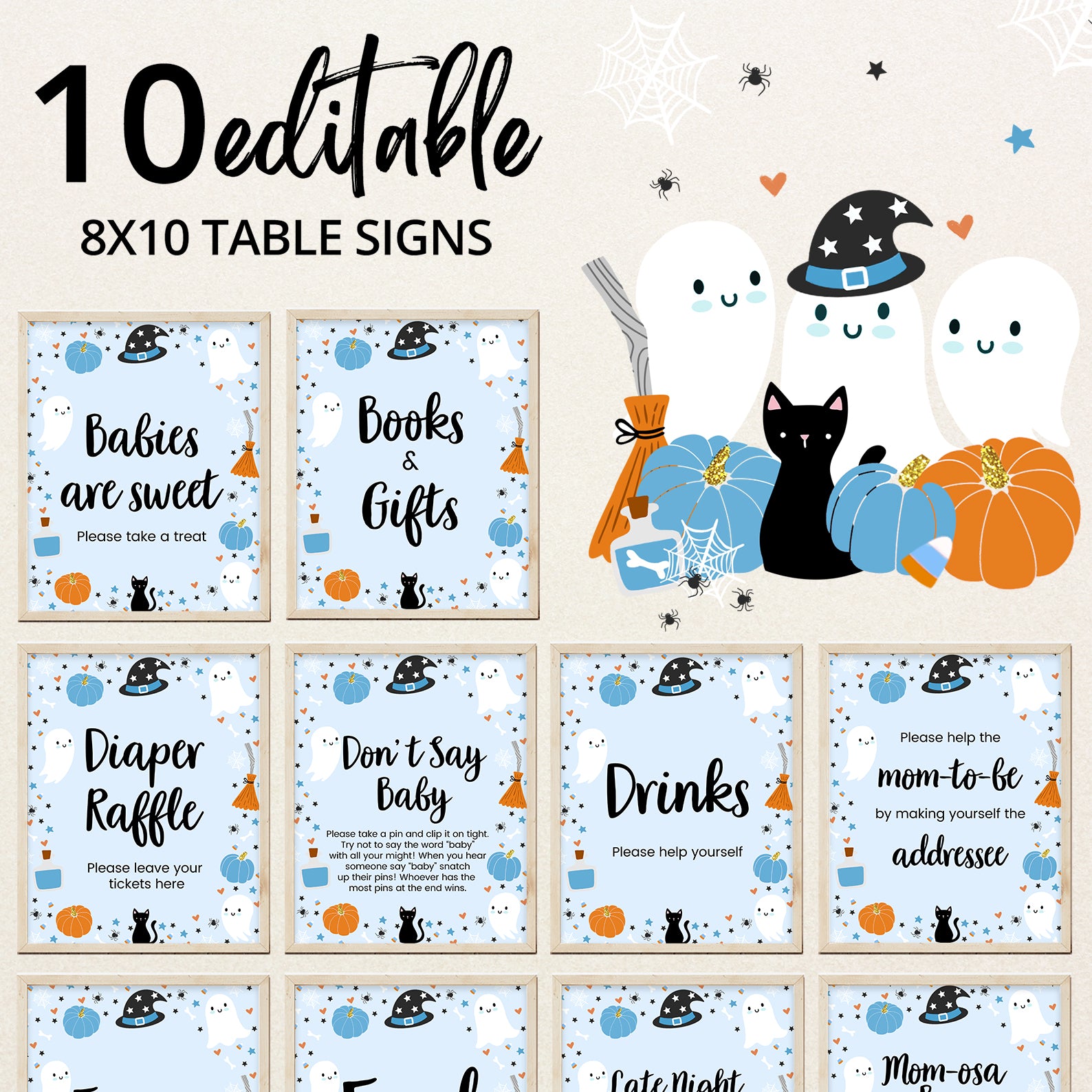 - Purchase this Festive Halloween Baby Shower Table Sign: Little Boo’s Due template