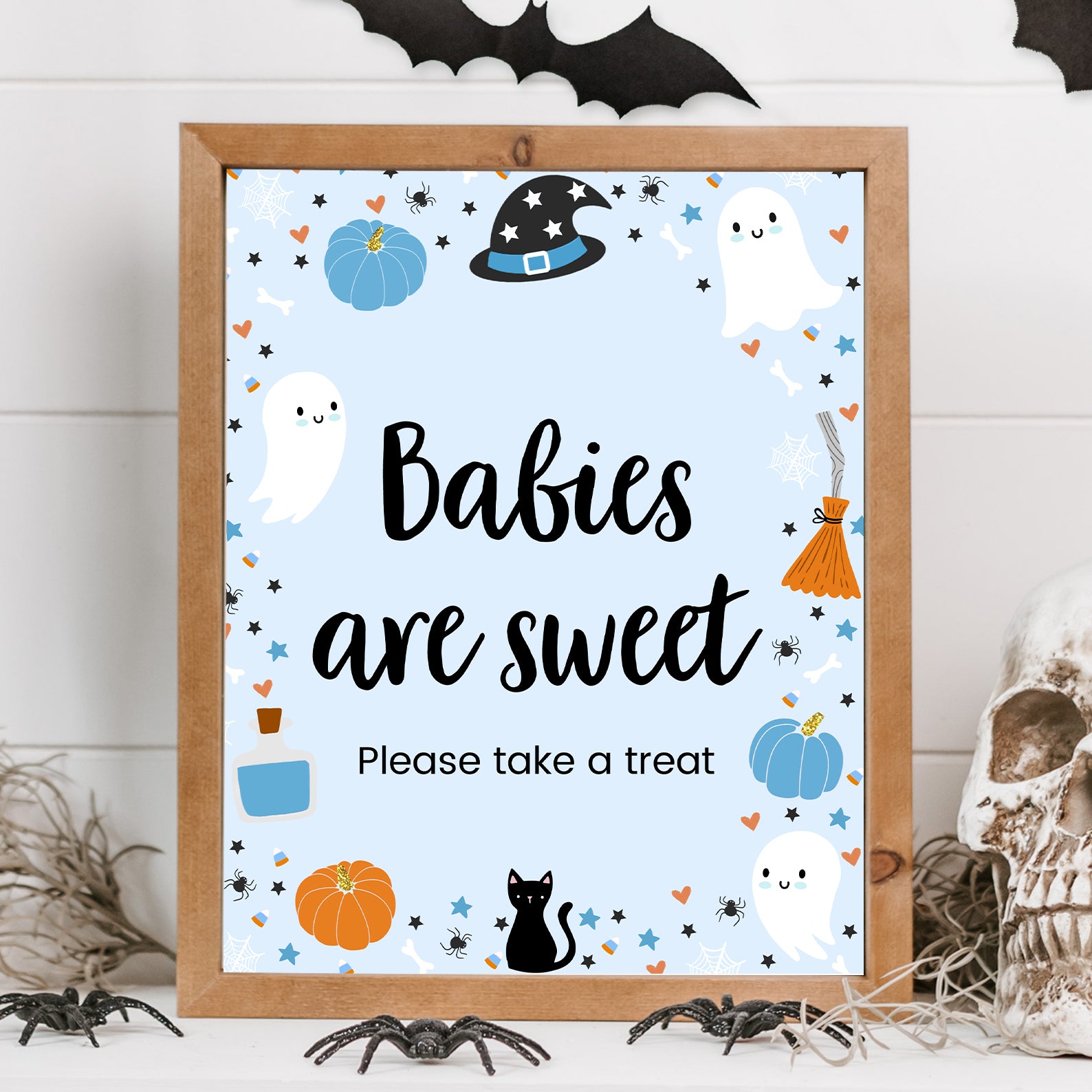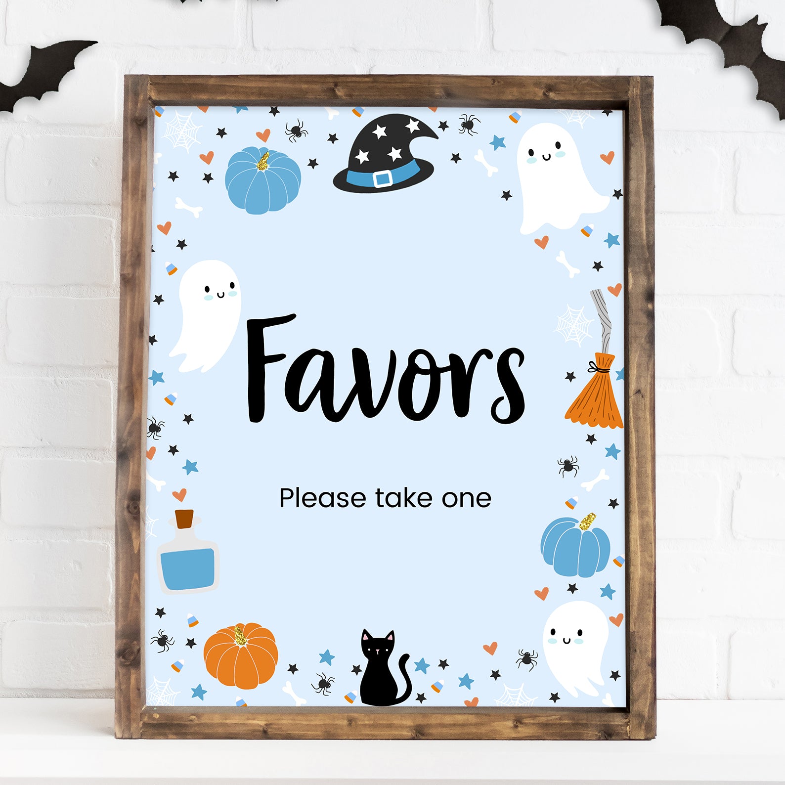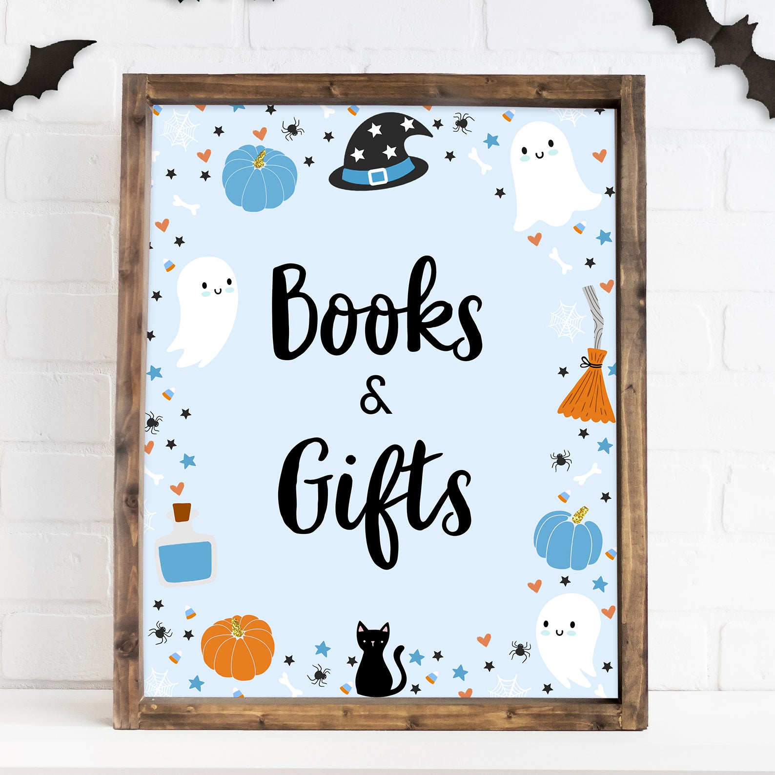 Add a whimsical touch to your baby shower with our "Little Boo's Spooky Celebration" table sign! Featuring cute ghosts, a witch’s broom and hat, stars, hearts, a black cat, and spider webs against a blue or pink background, this sign is perfect for setting a fun, spooky-cute tone. It’s a delightful way to guide guests and enhance your festive decor!