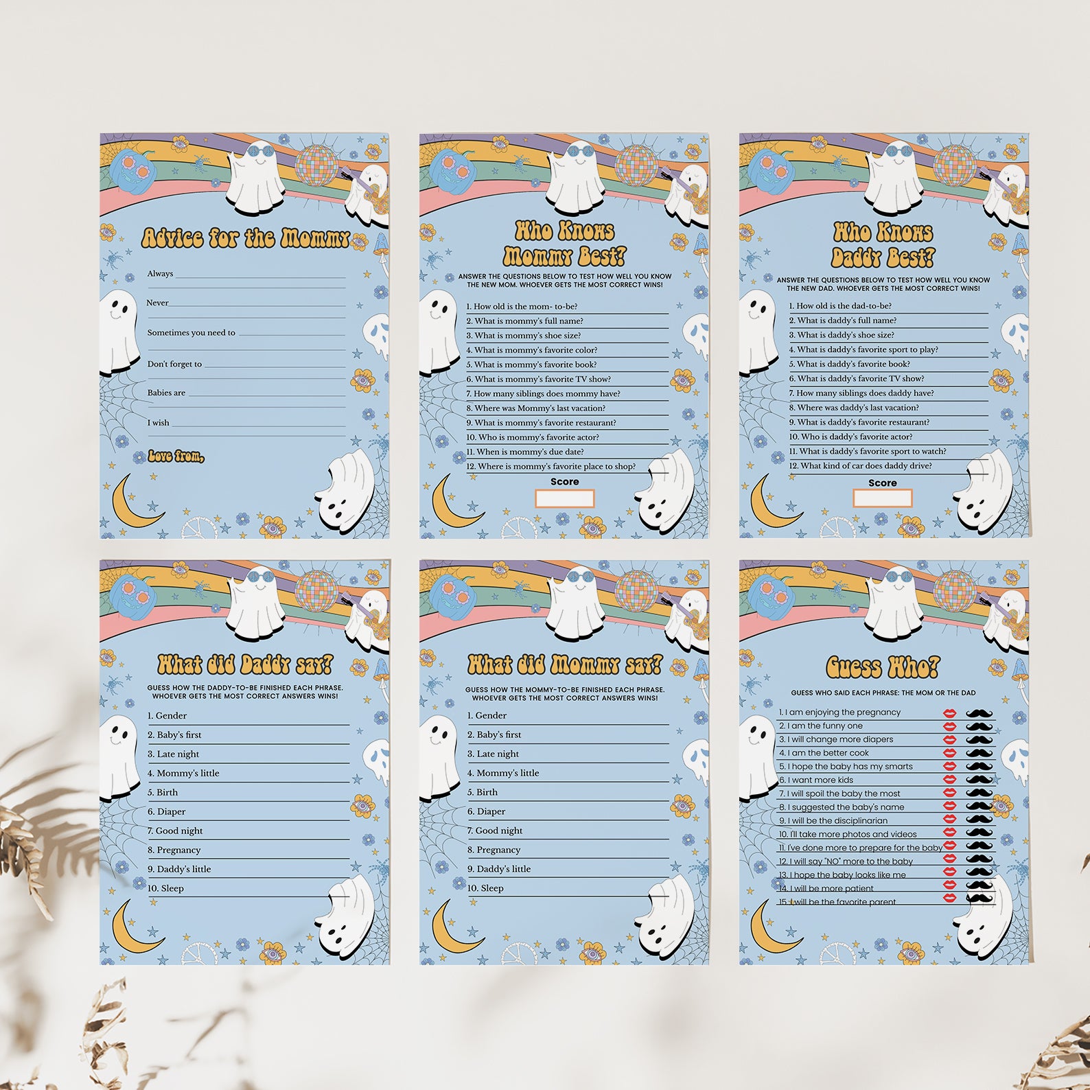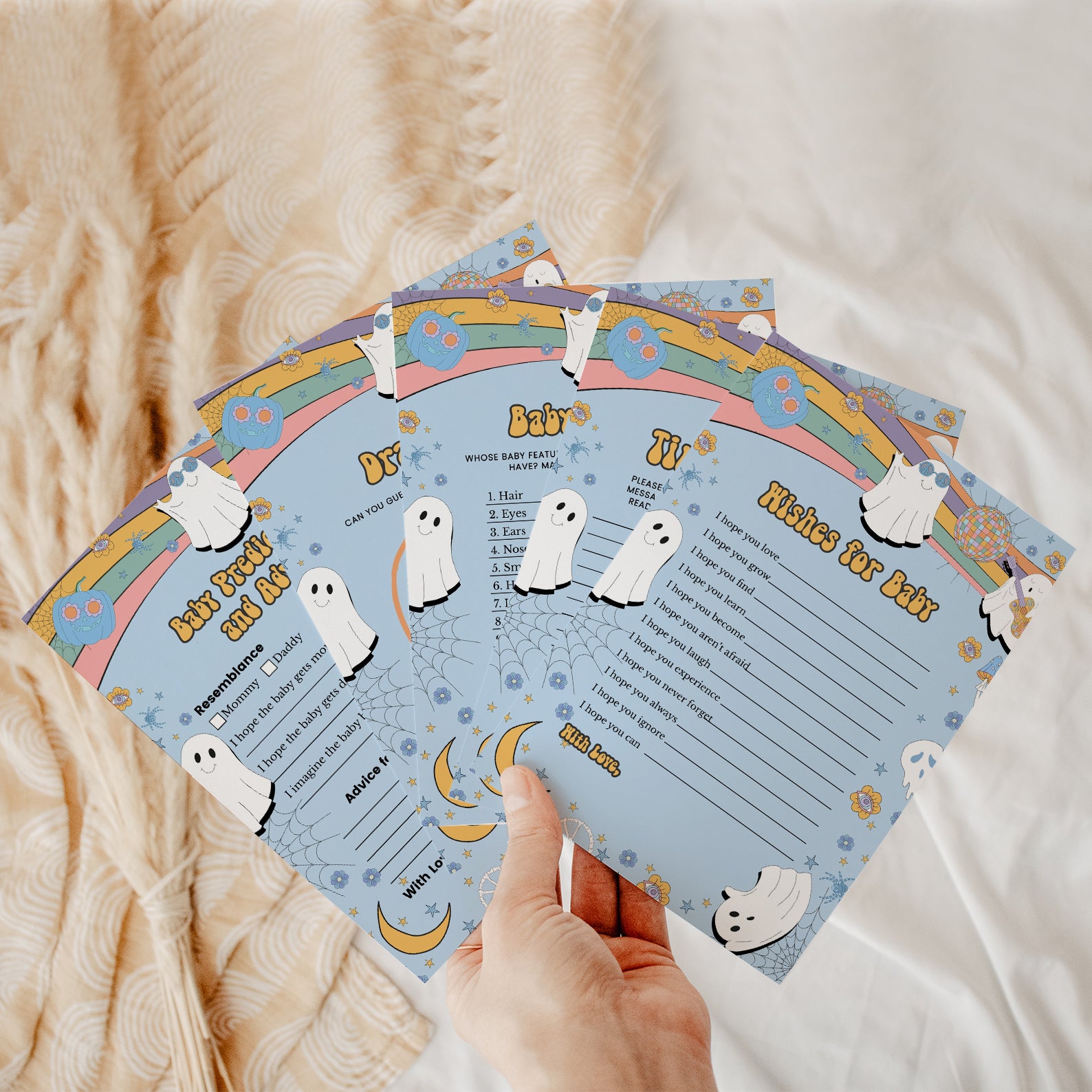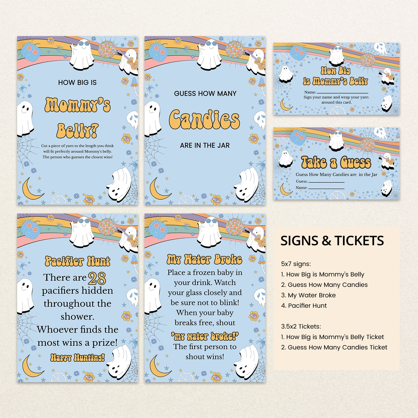Groovy Blue Baby Shower Game Bundle: Spooky Playful Halloween Ghosts