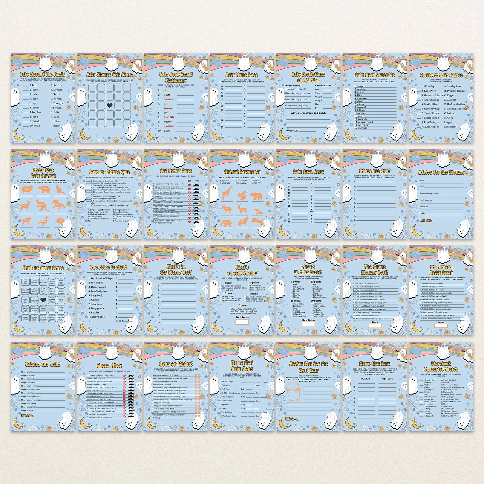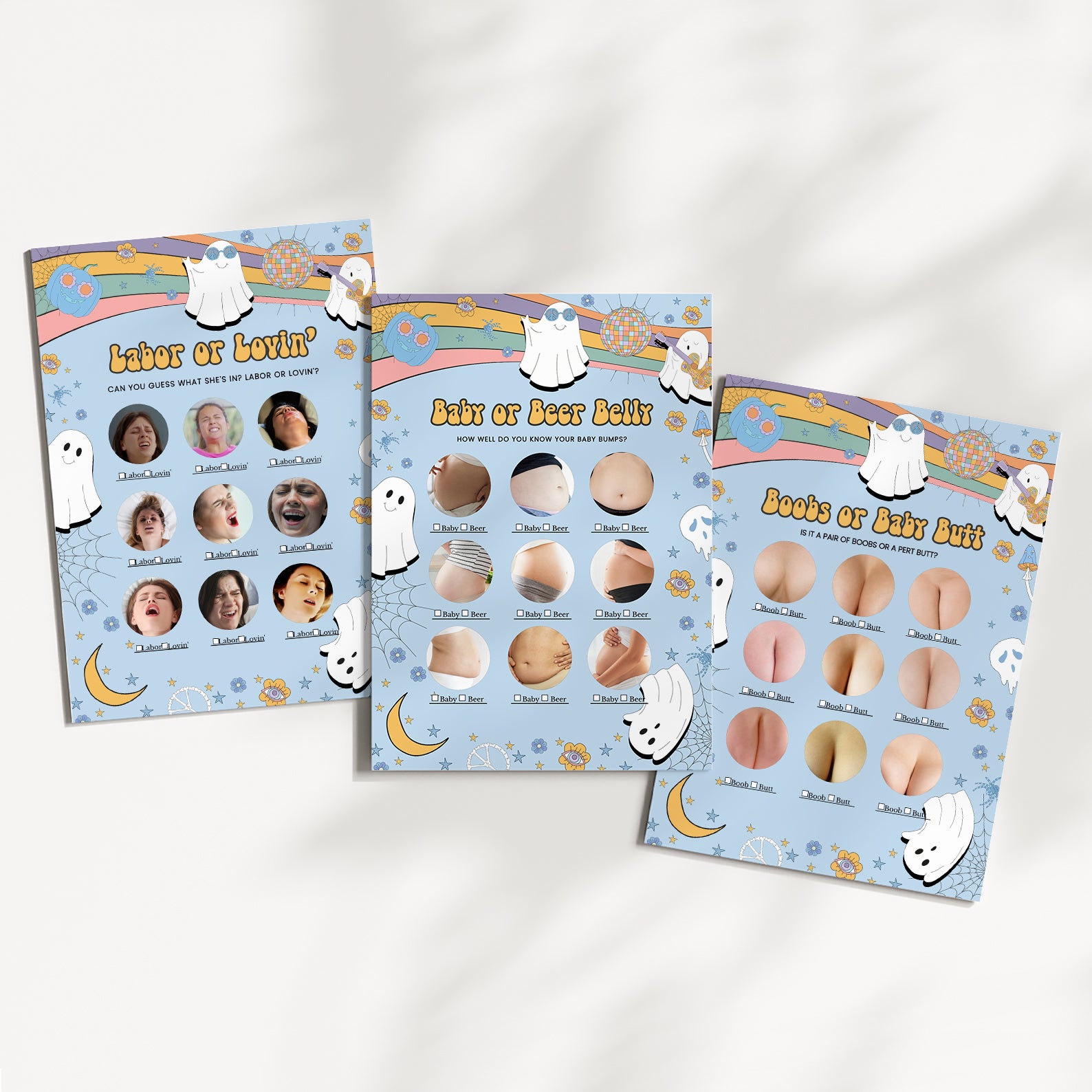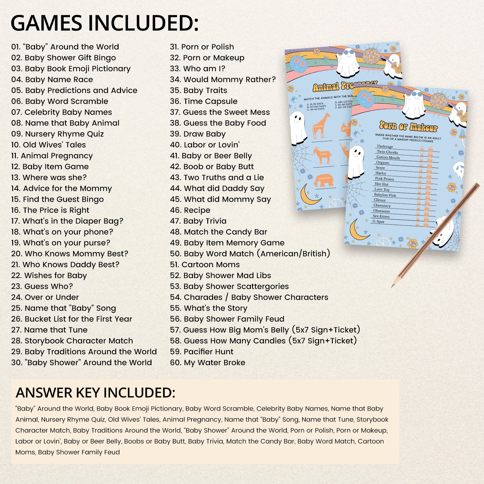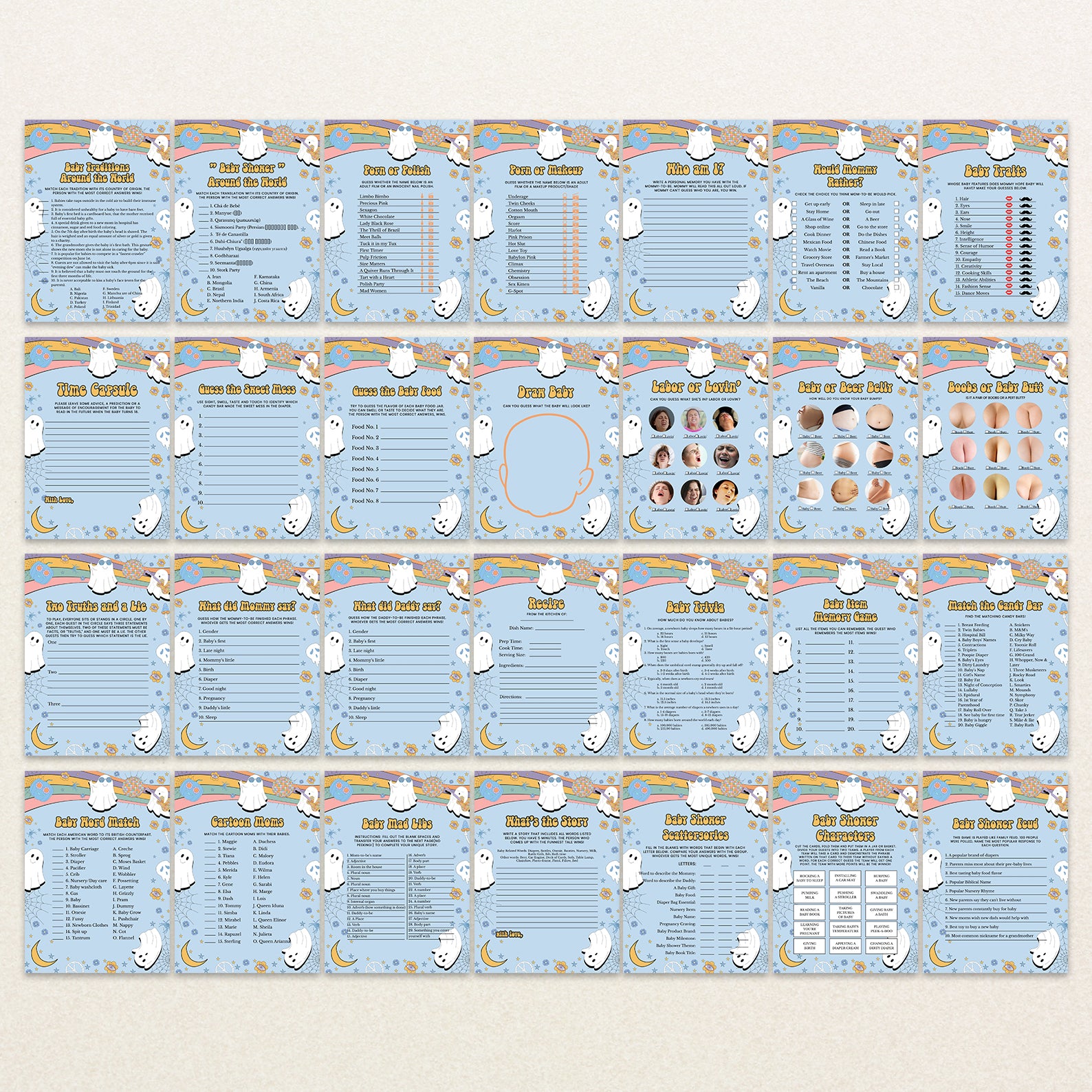 Groovy Blue Baby Shower Game Bundle: Spooky Playful Halloween Ghosts