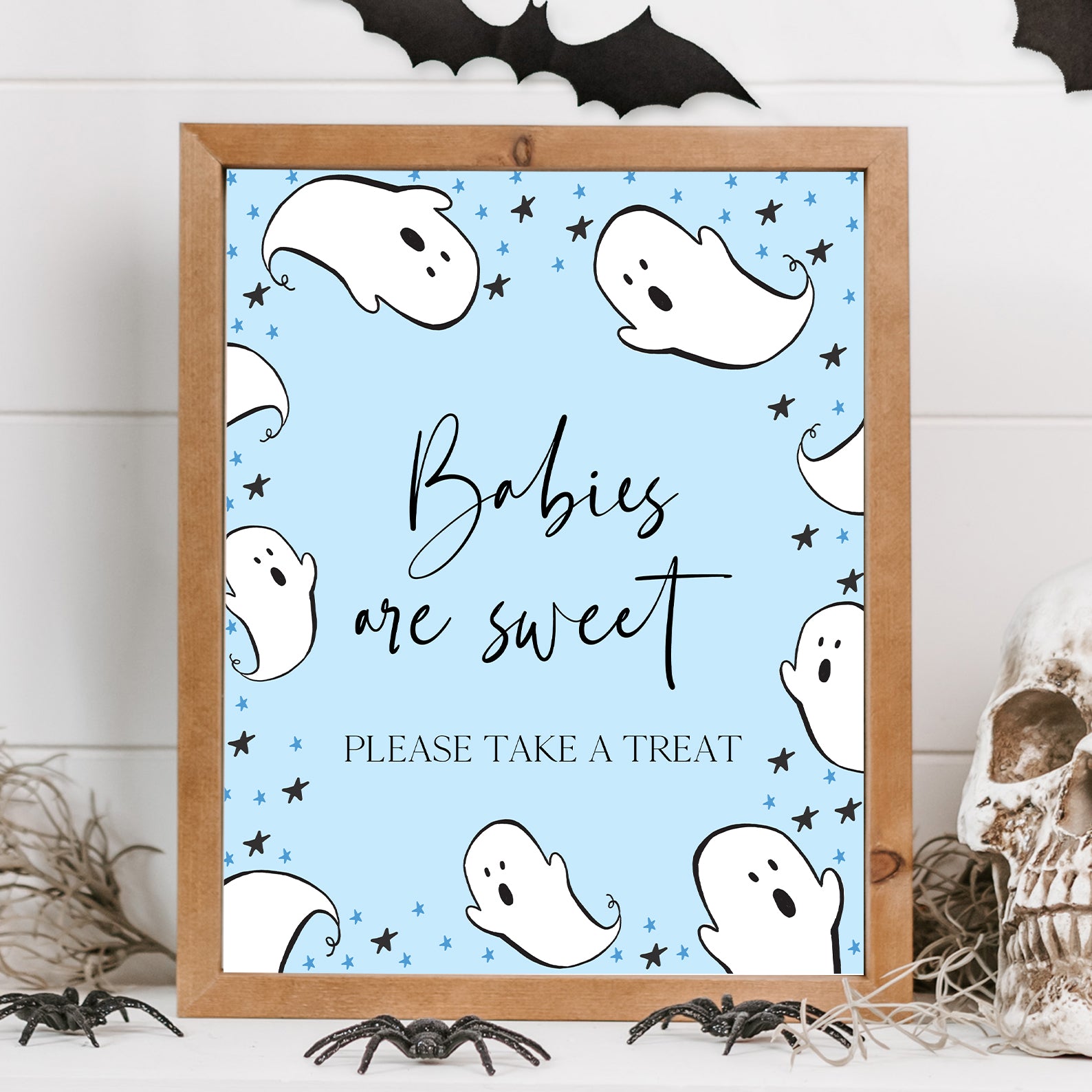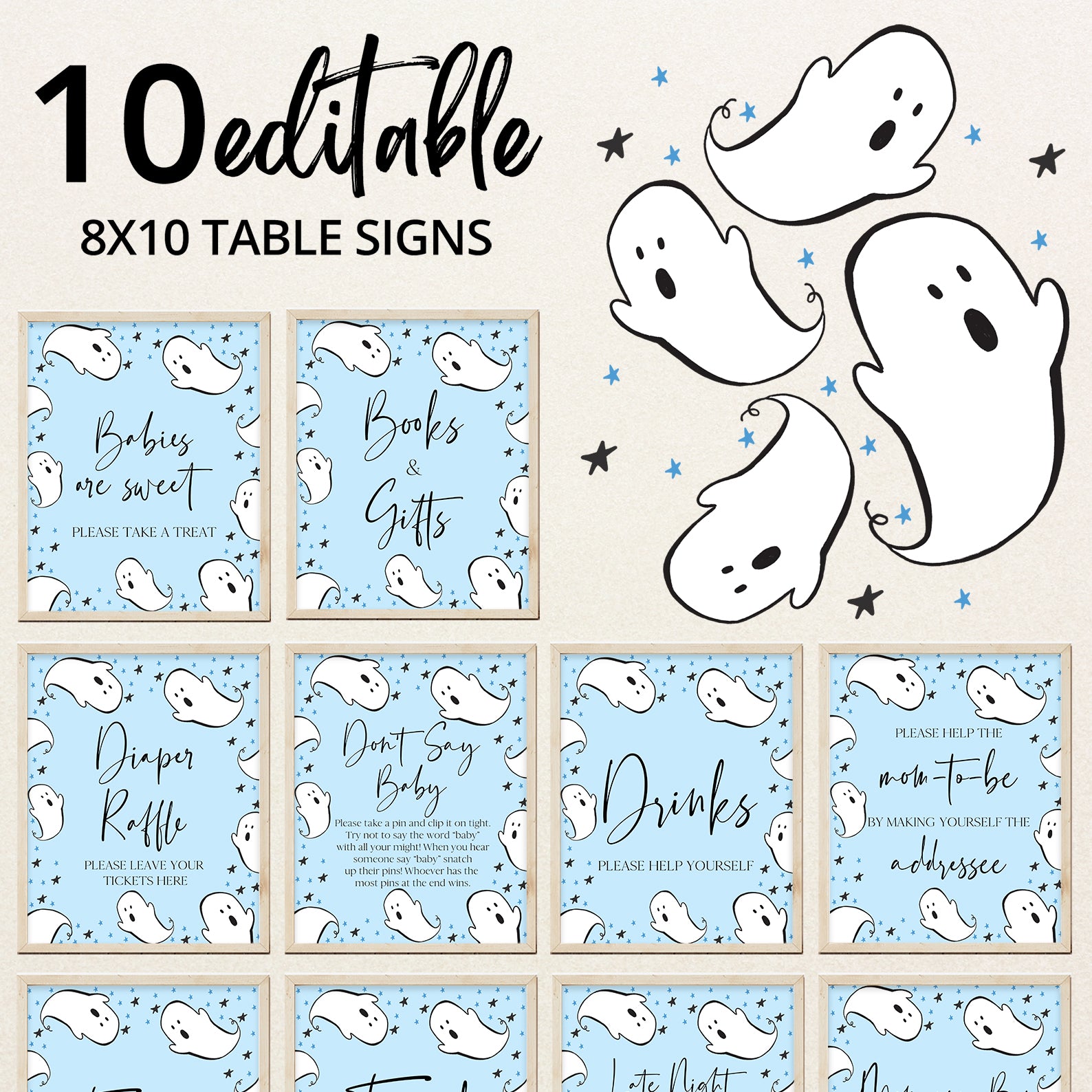 1. Purchase this Playful Blue Baby Shower Table Sign: Little Boo, Ghosts, and Stars template