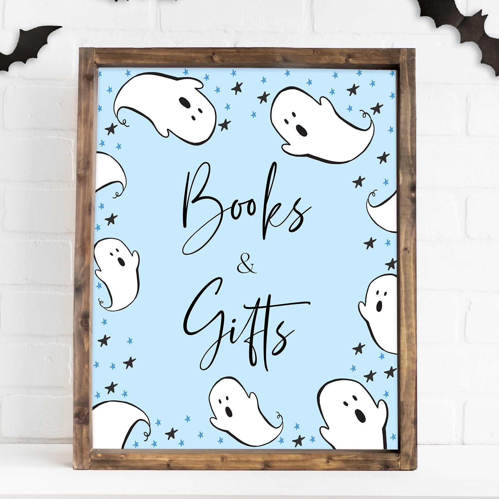 Playful Blue Baby Shower Table Sign: Little Boo, Ghosts, and Stars