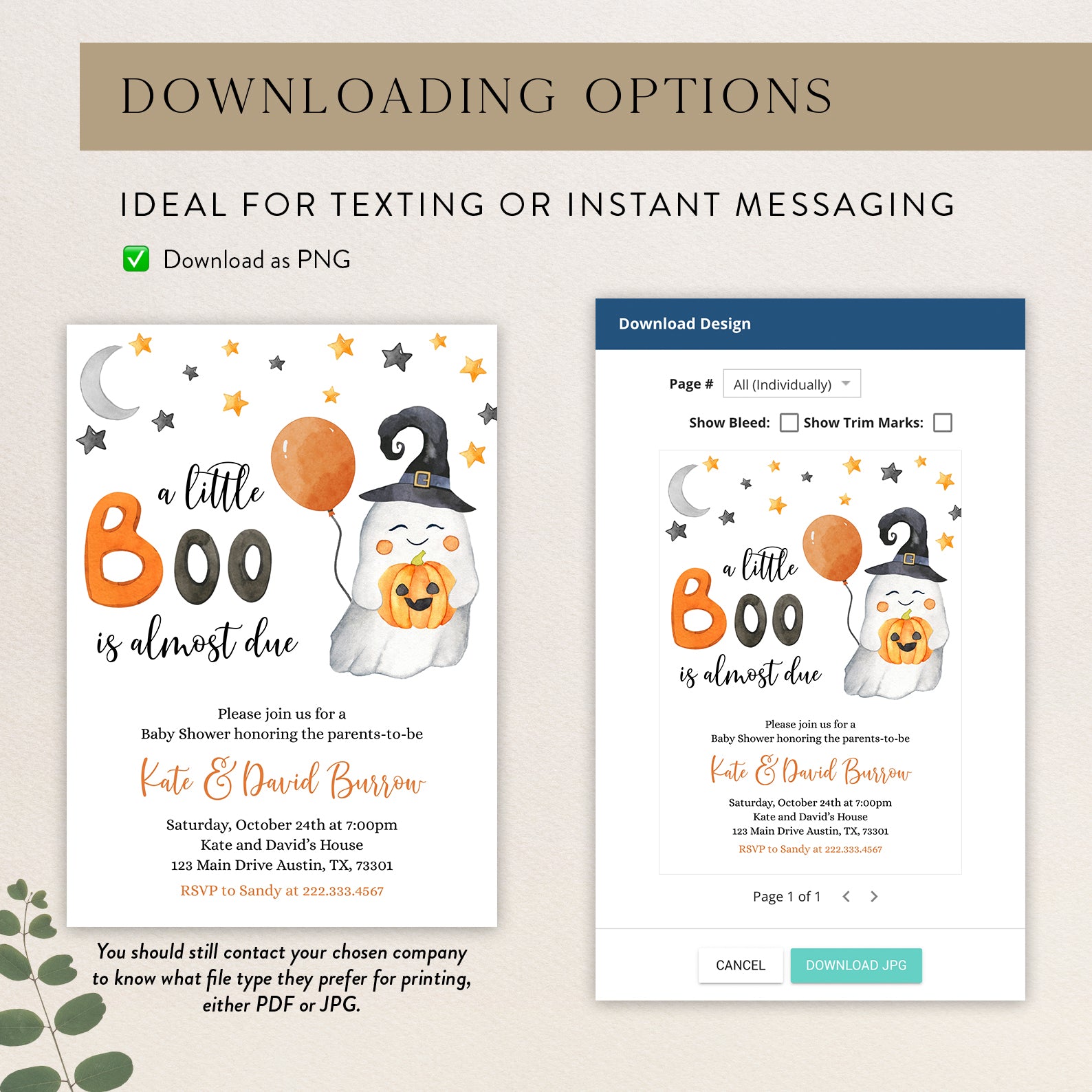 Sweet Baby Shower Digital Invite Bundle: A Little Boo is Almost Due!