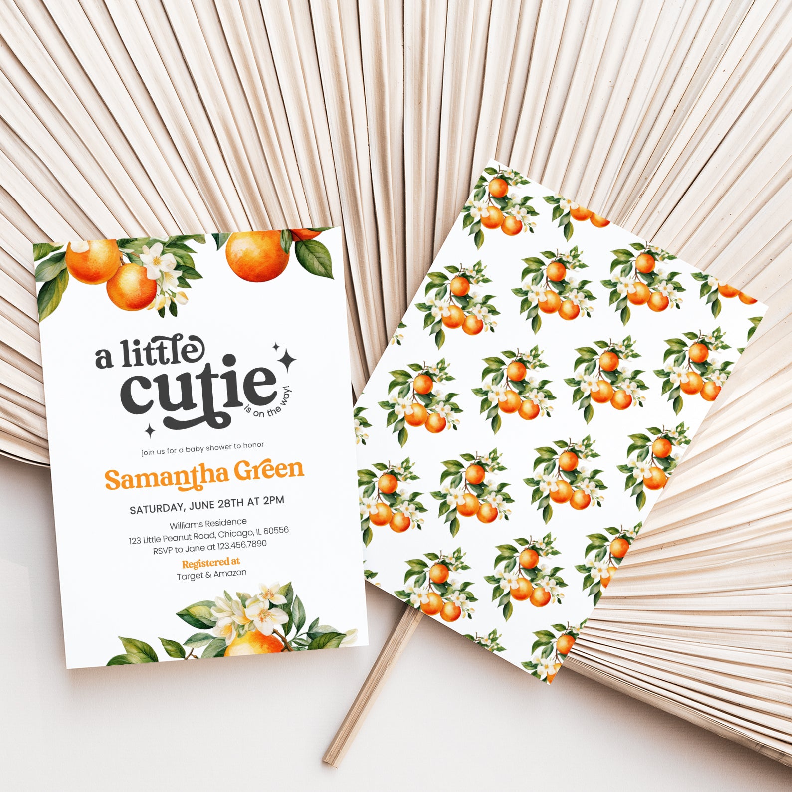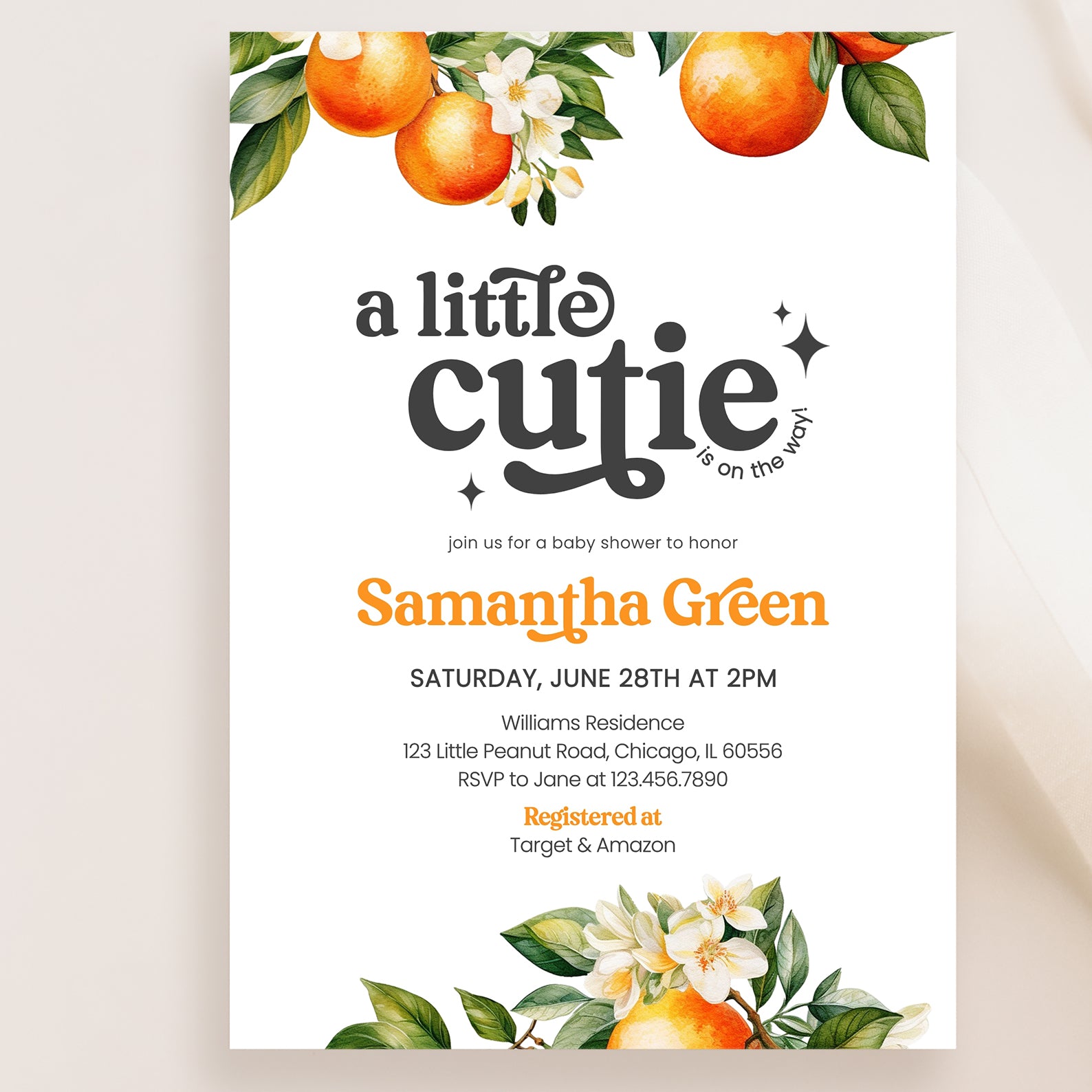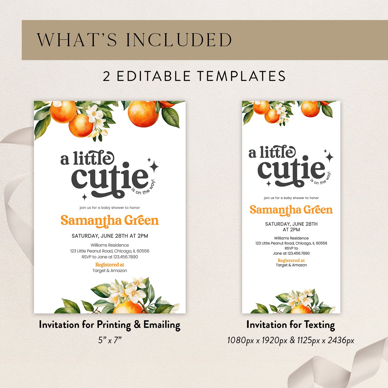 - Purchase this Summer Baby Shower Digital Invite Bundle with Oranges & Blossoms template