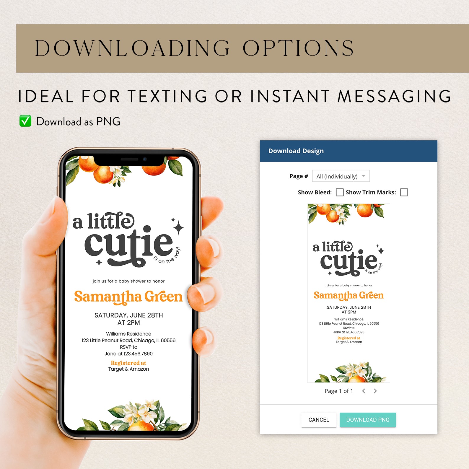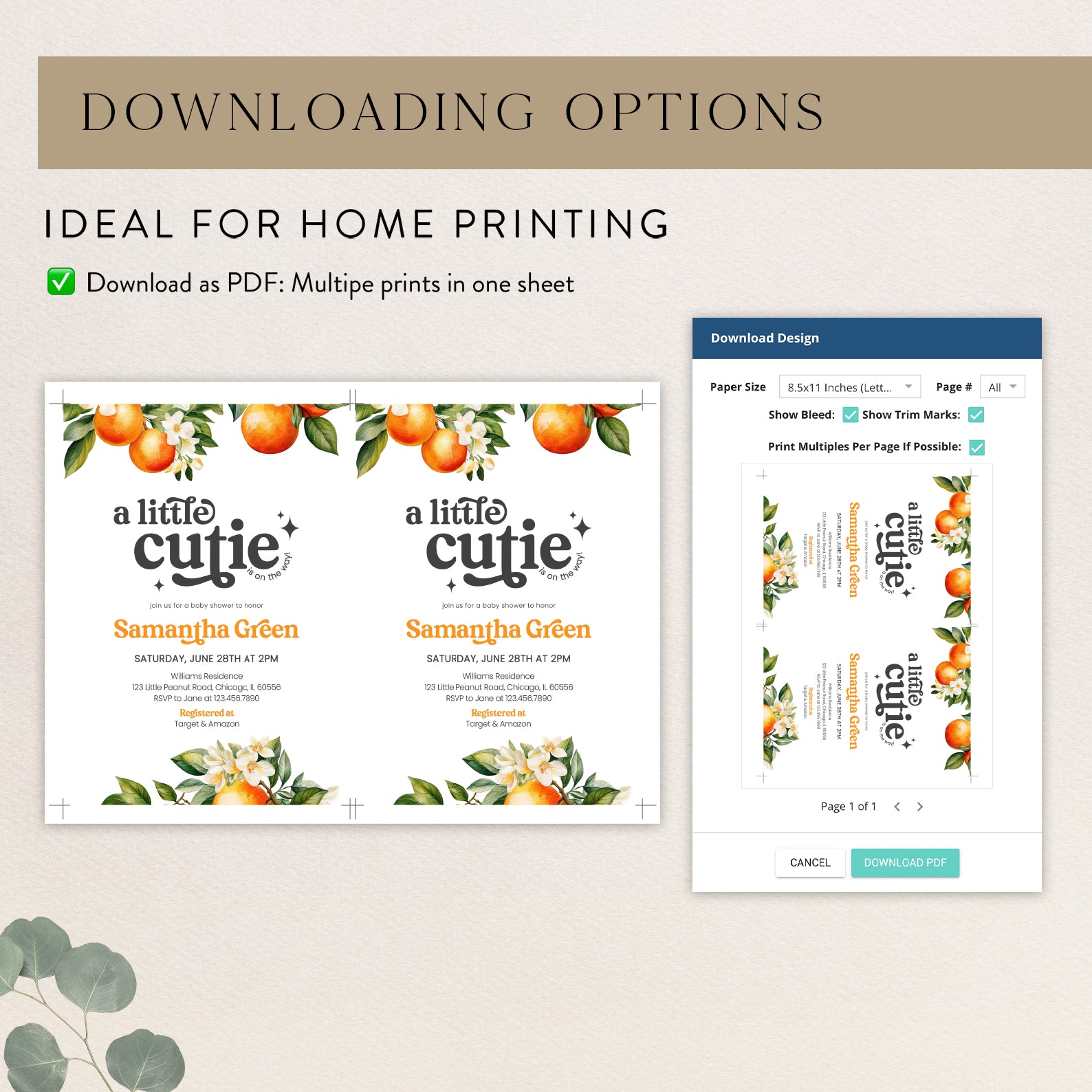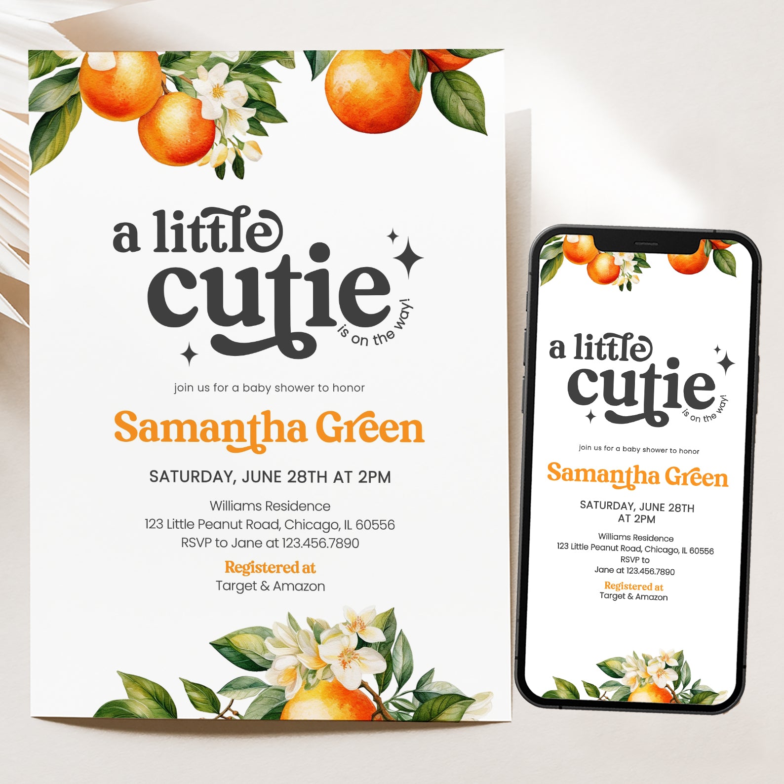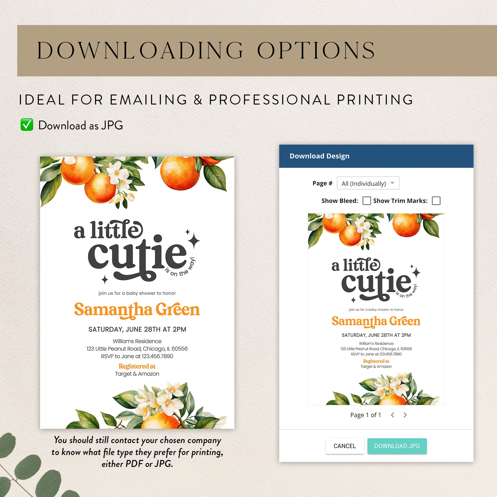 - Purchase this Summer Baby Shower Digital Invite Bundle with Oranges & Blossoms template