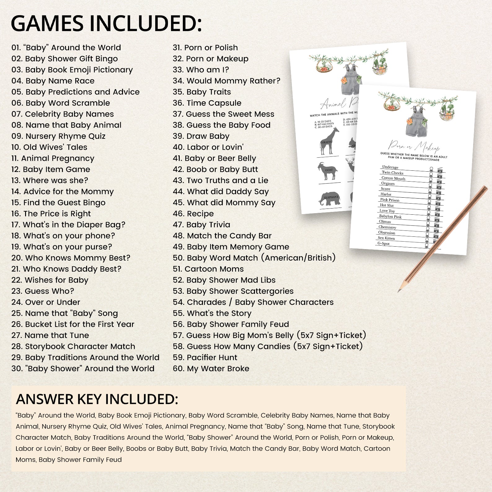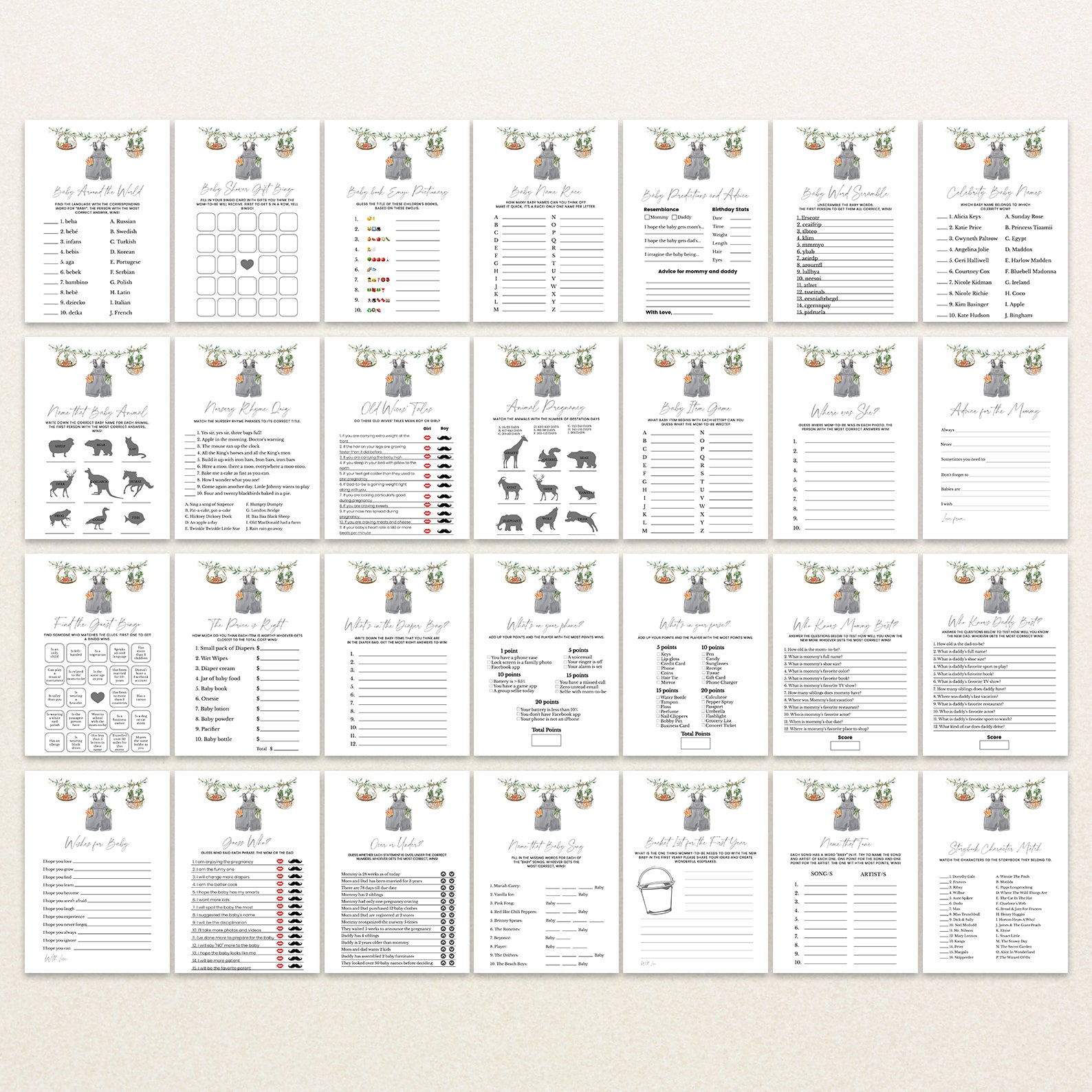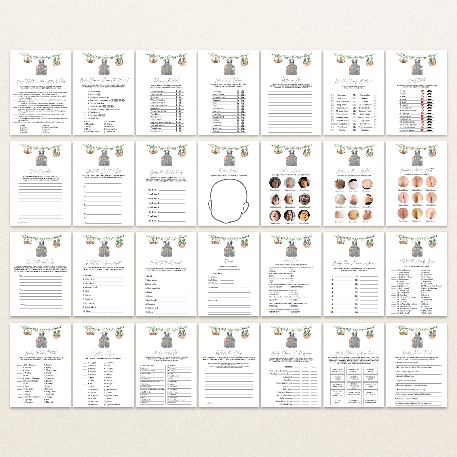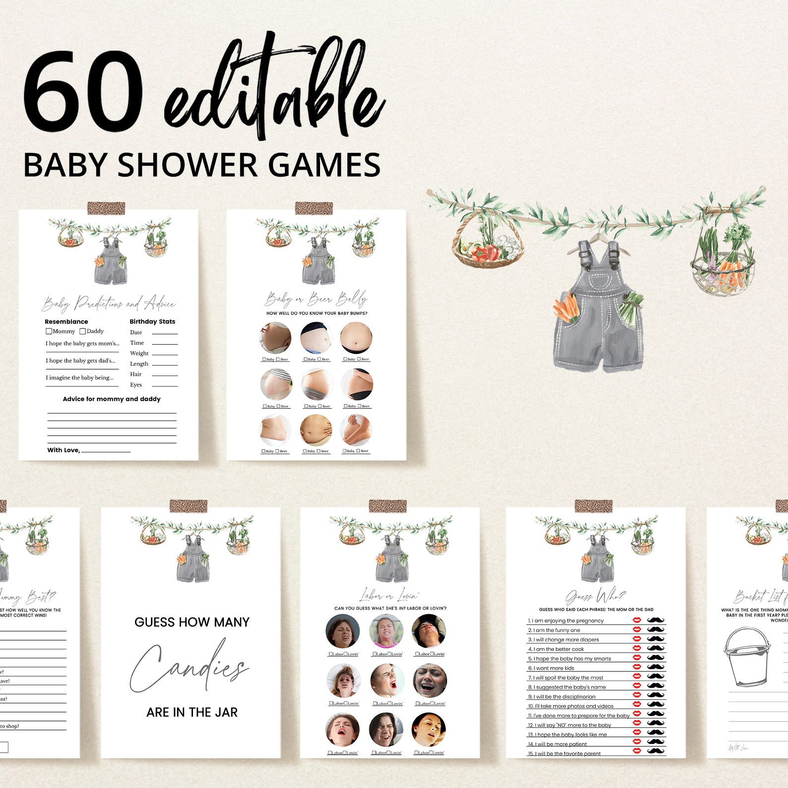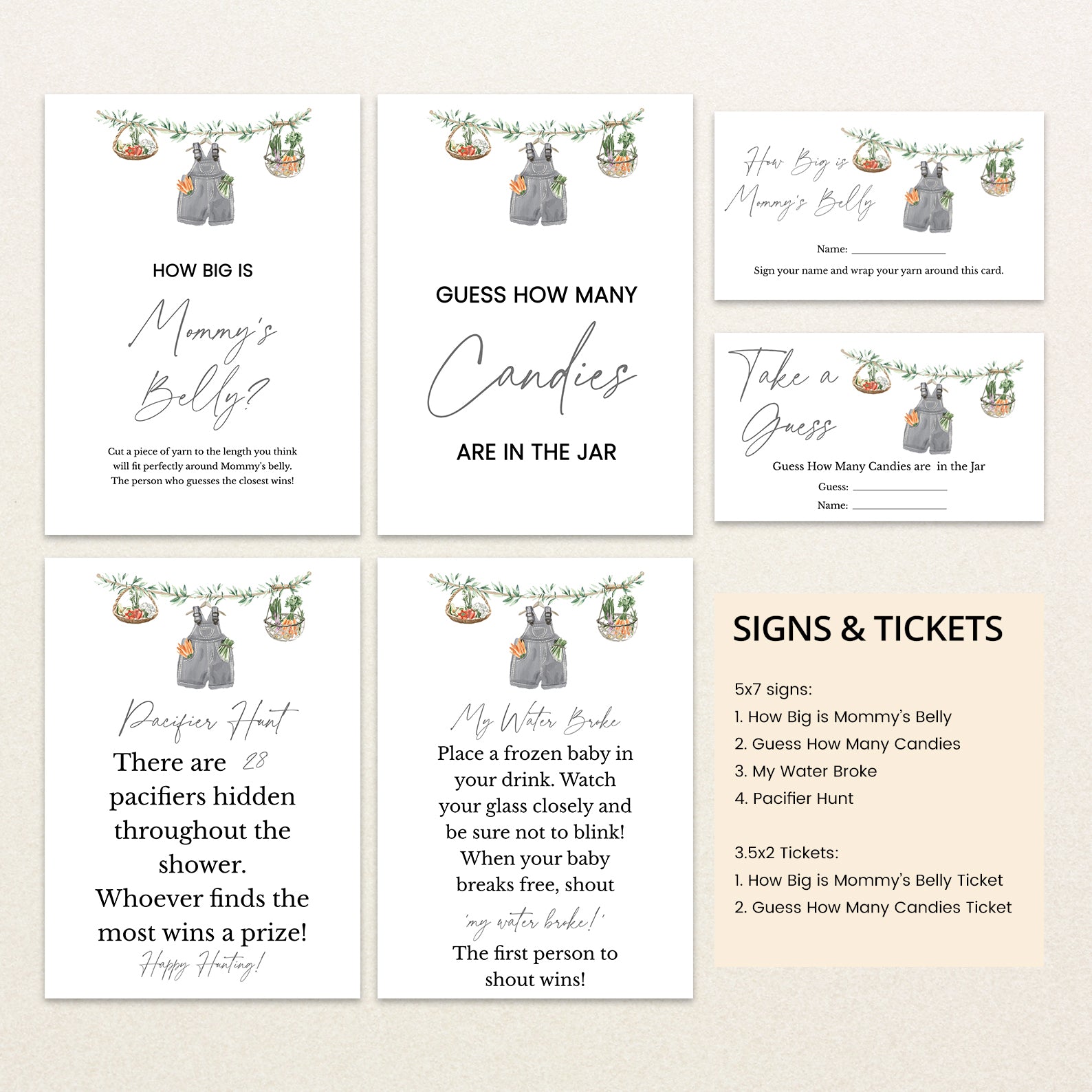 Celebrate the upcoming arrival of your little one with our Spring Minimalist Baby Shower Game Bundle! Featuring a fresh, nature-inspired design with two charming hanging baskets filled with vegetables and a cozy gray jumper adorned with cute veggie pockets, this bundle brings a modern, eco-friendly vibe to your celebration. Packed with 60 editable baby shower games, this set offers everything you need to entertain guests and create lasting memories. Whether you're planning a garden-themed gathering or simply love clean, whimsical style, this customizable game bundle is the perfect way to add fun and charm to your special day.