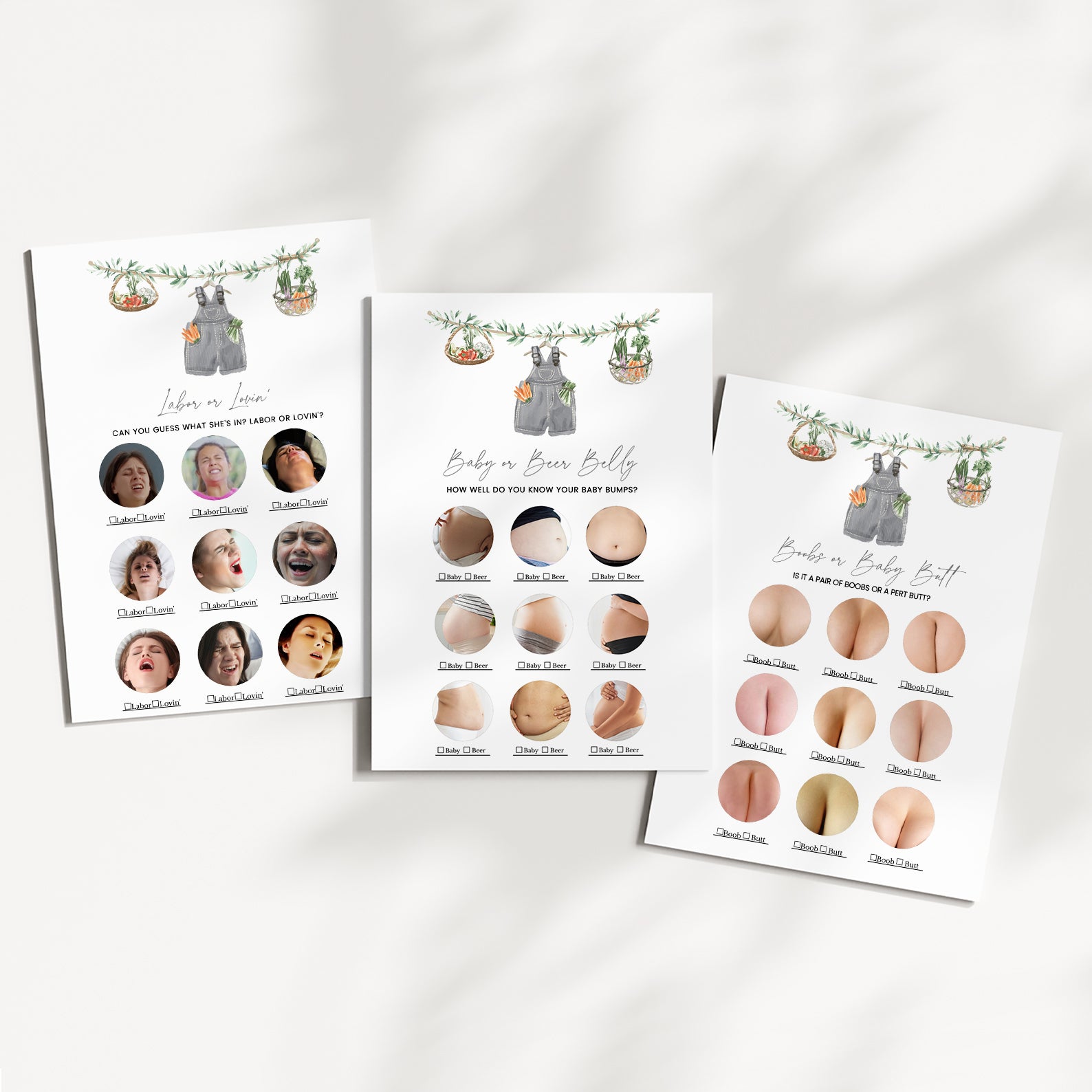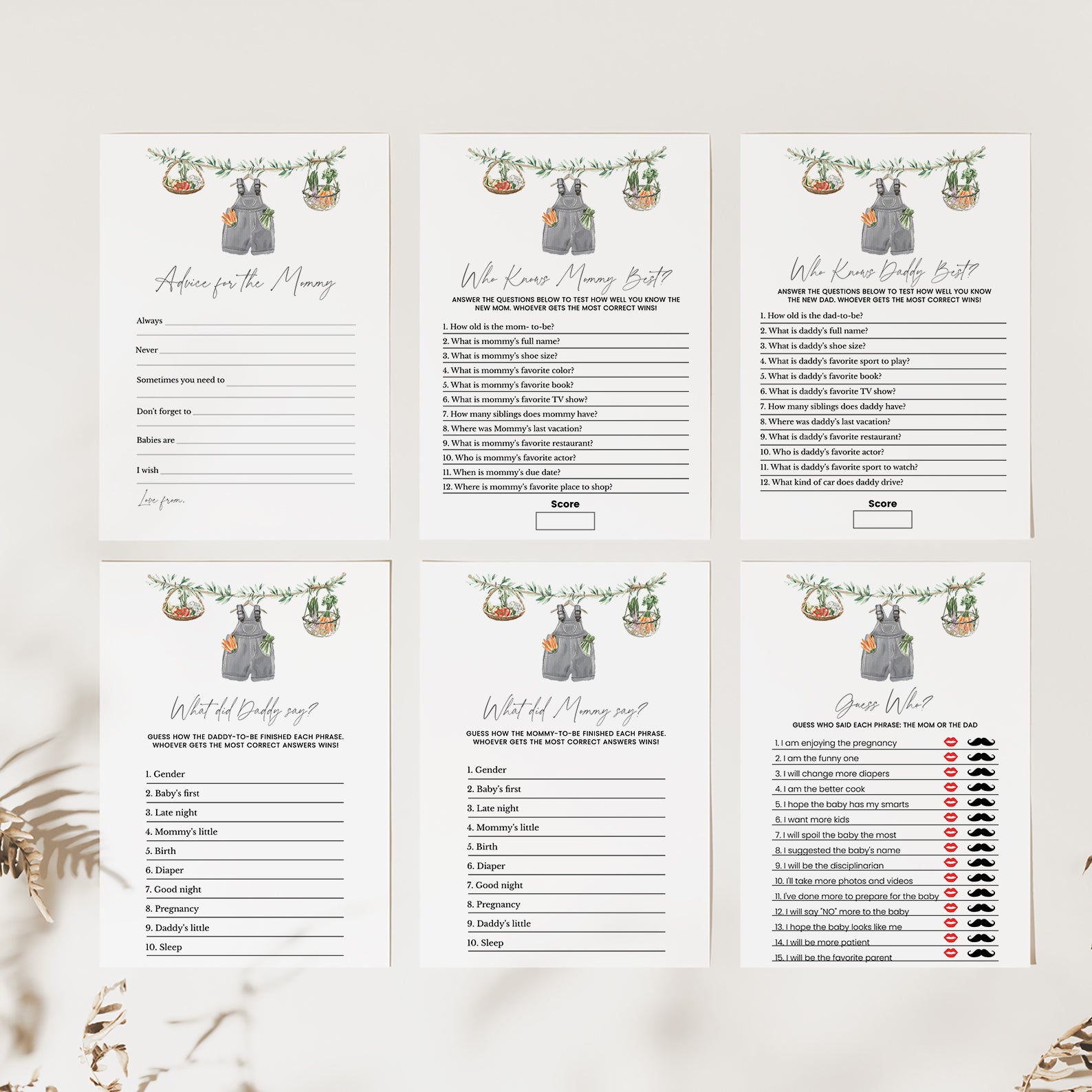 Locally Grown Spring Baby Shower Game Bundle with Veggie Theme