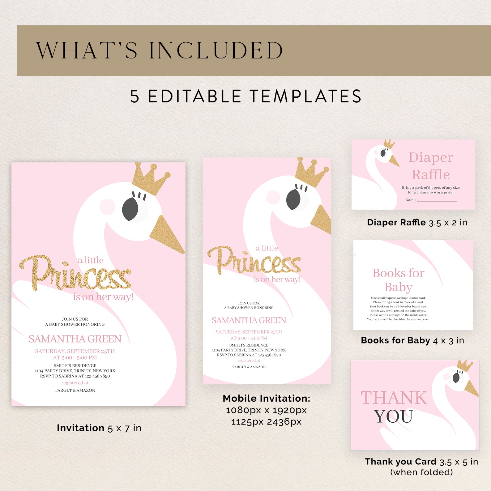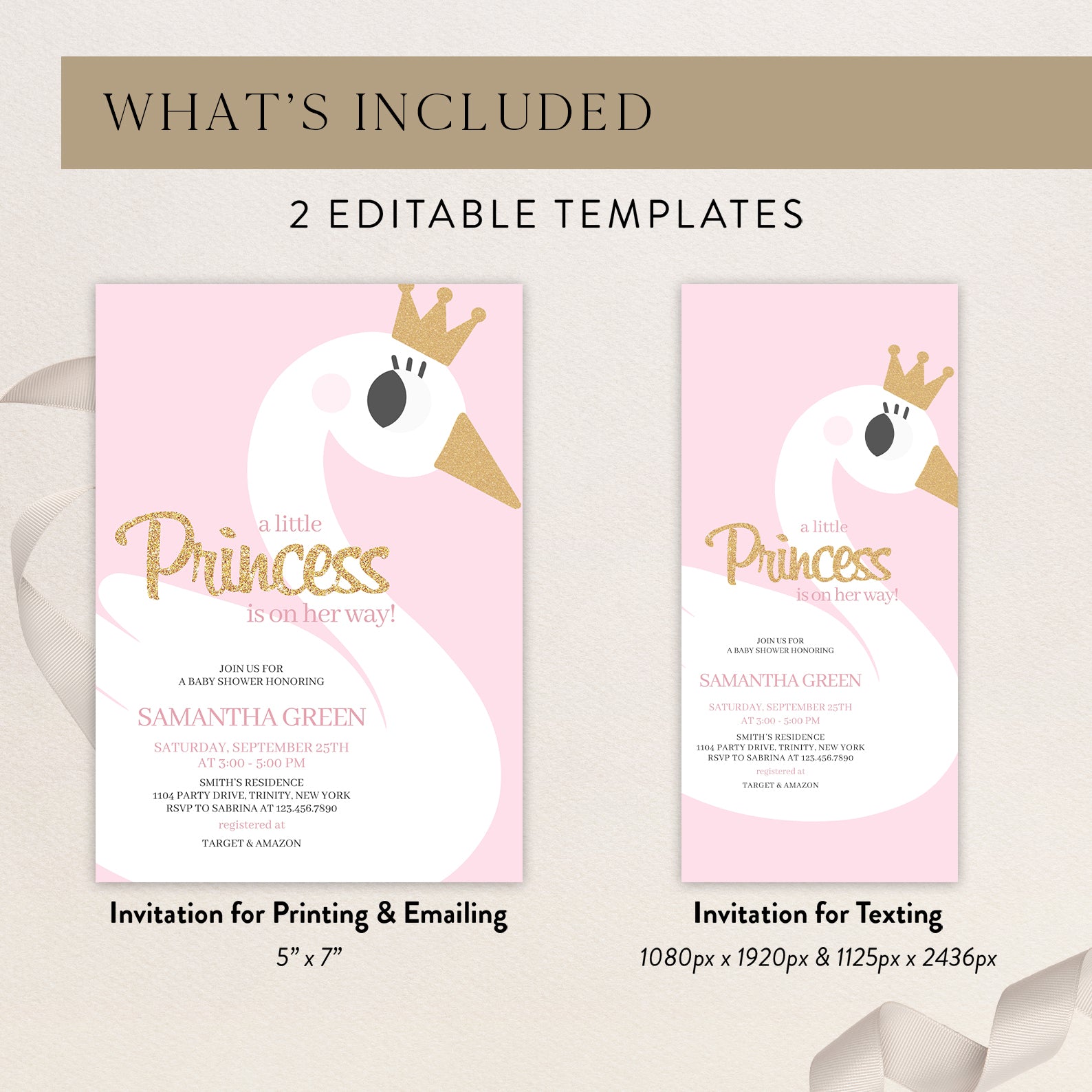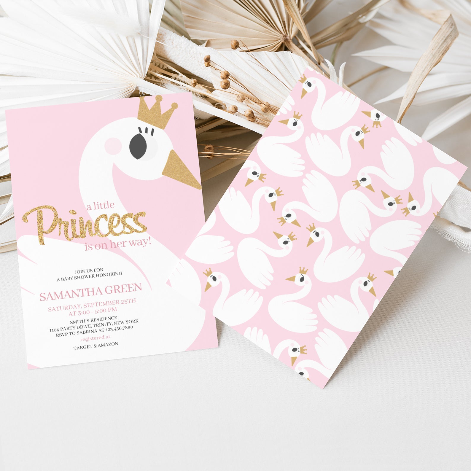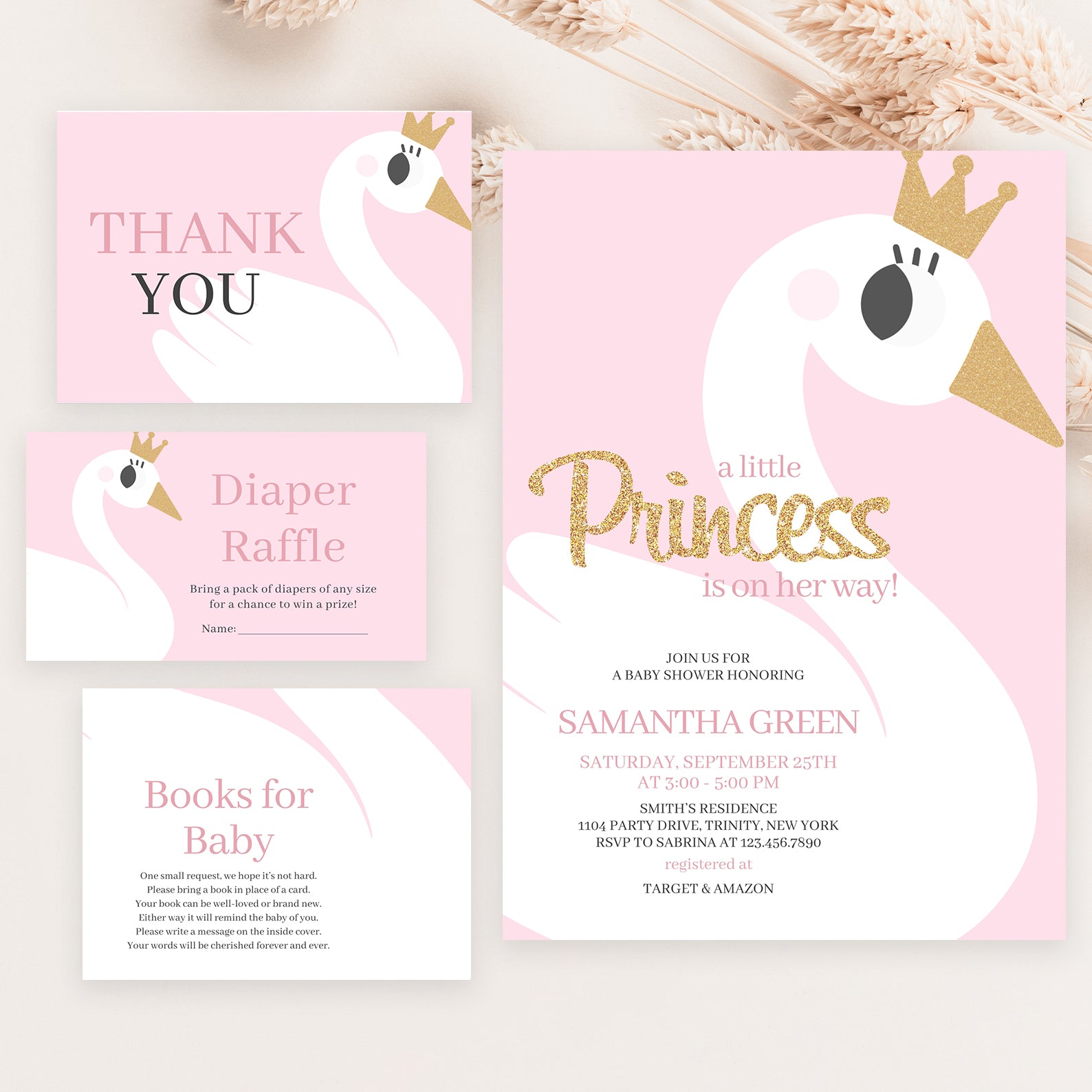 - Purchase this A Little Princess Baby Shower: Pink Swan Invitation Bundle template