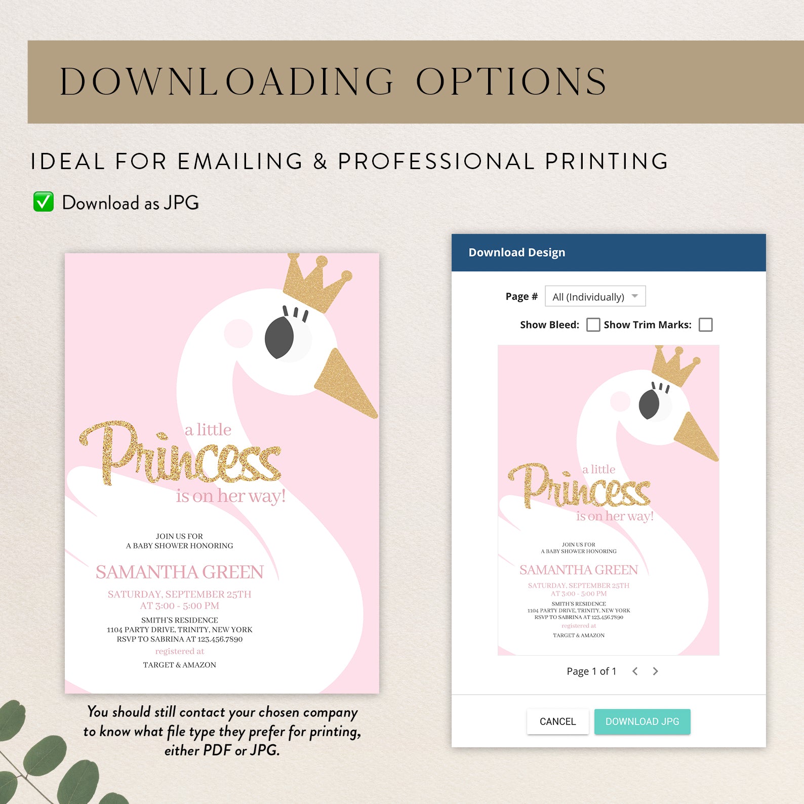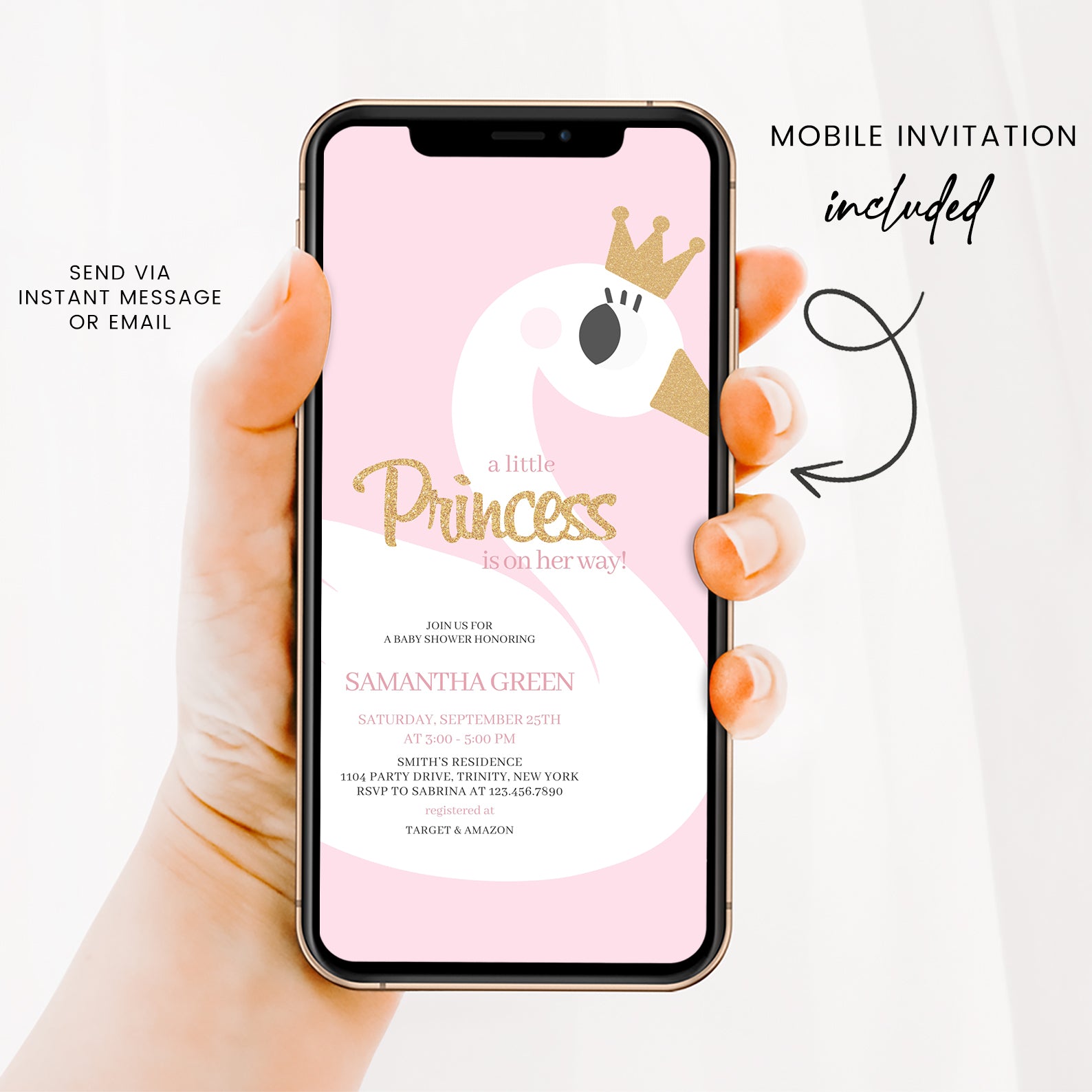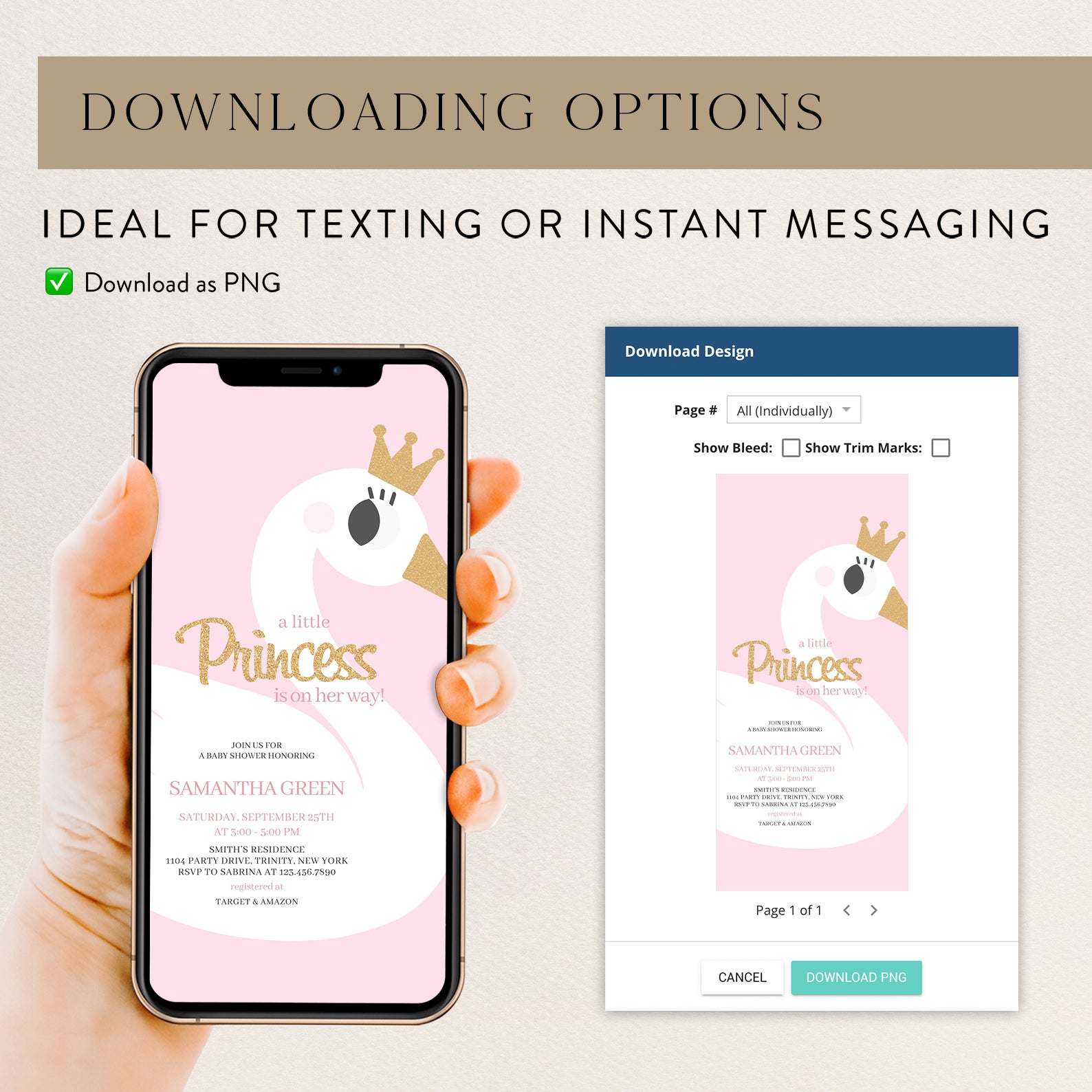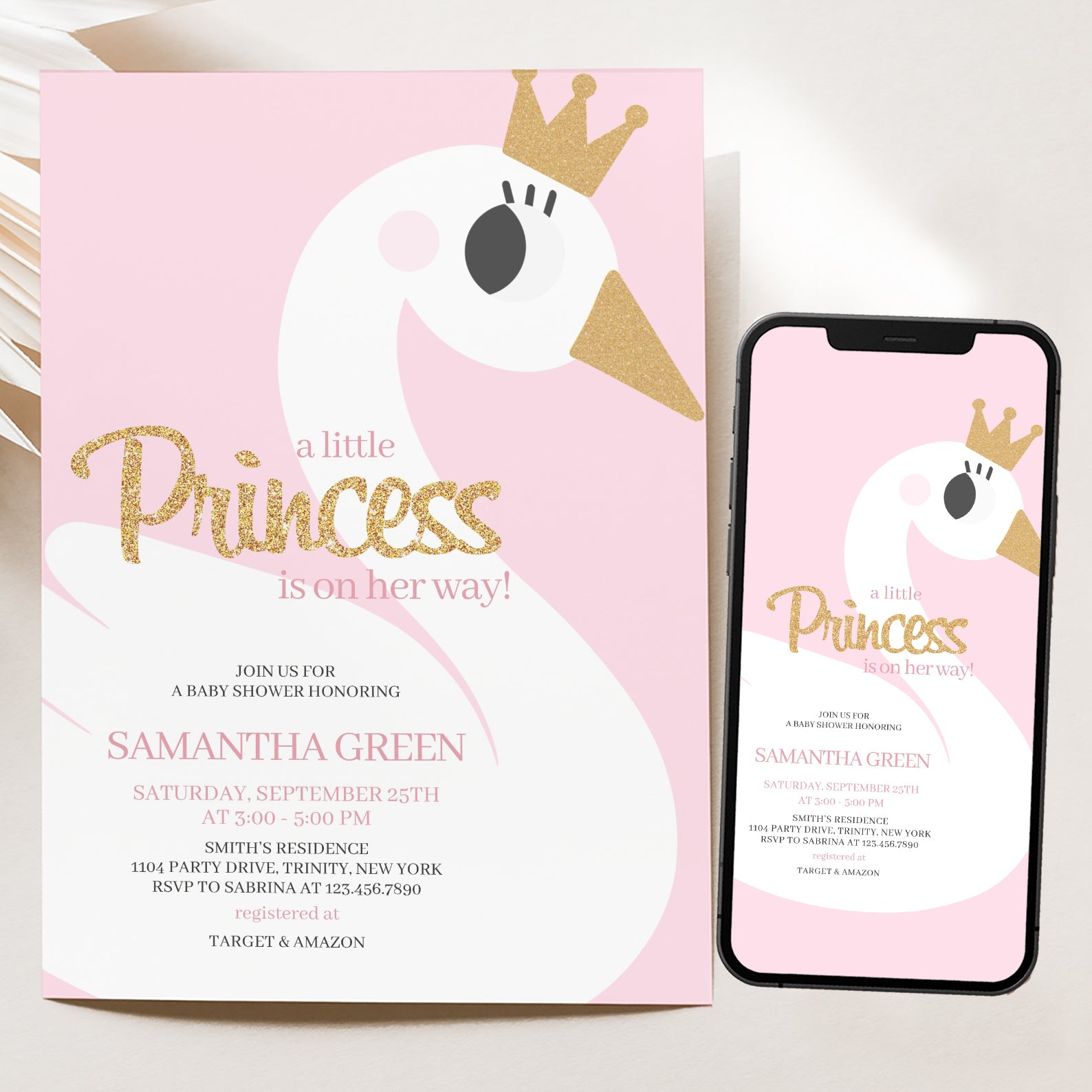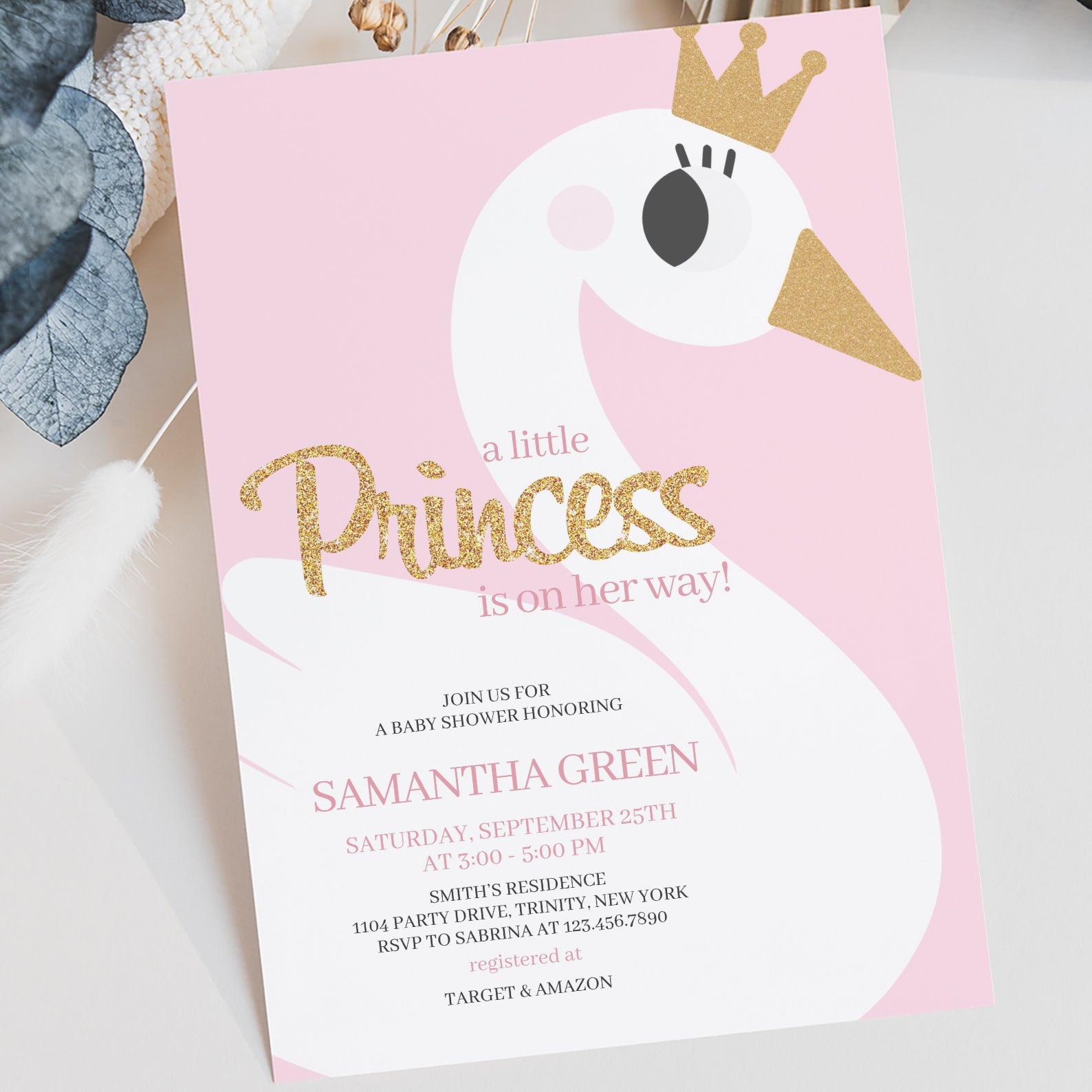 - Purchase this A Little Princess Baby Shower: Pink Swan Invitation Bundle template