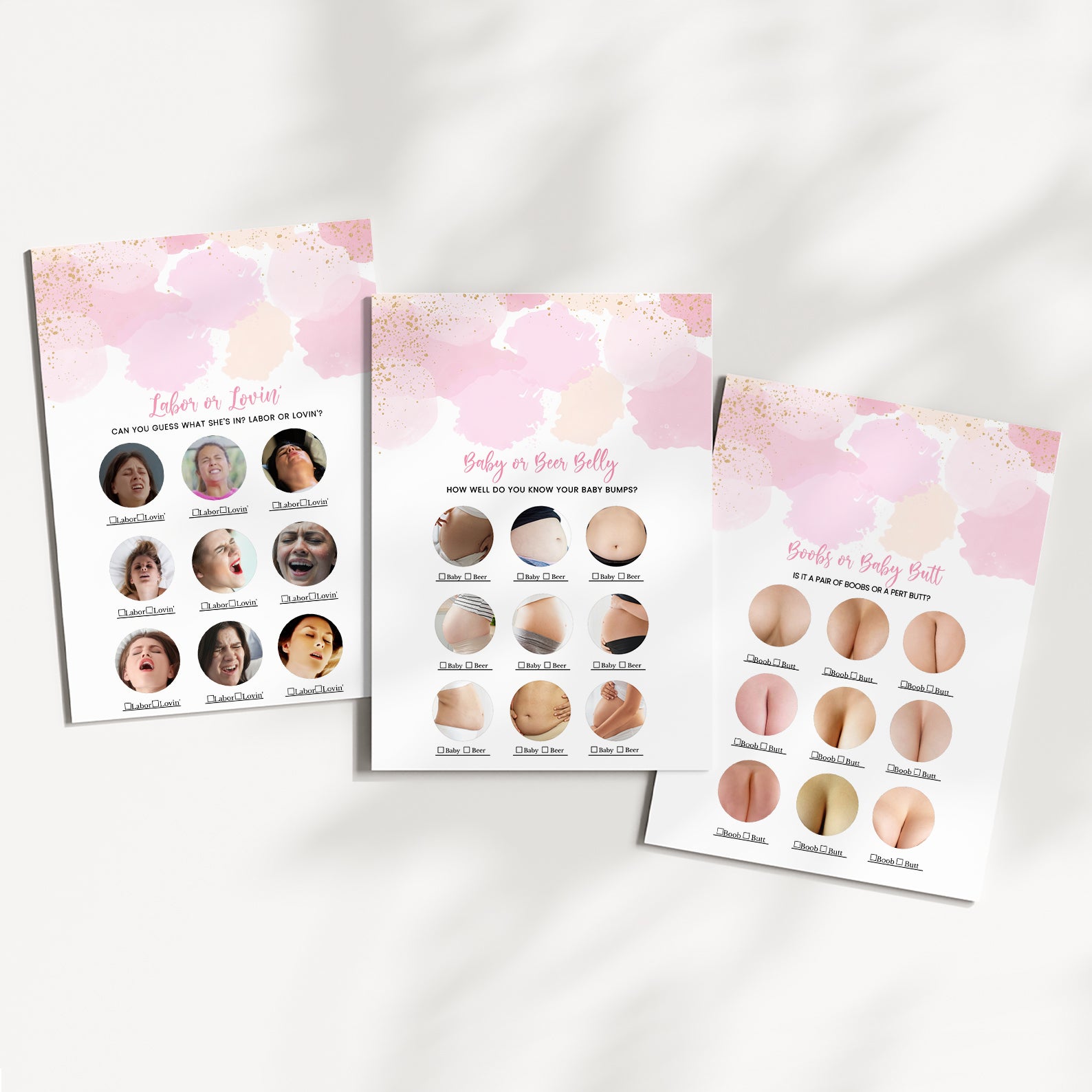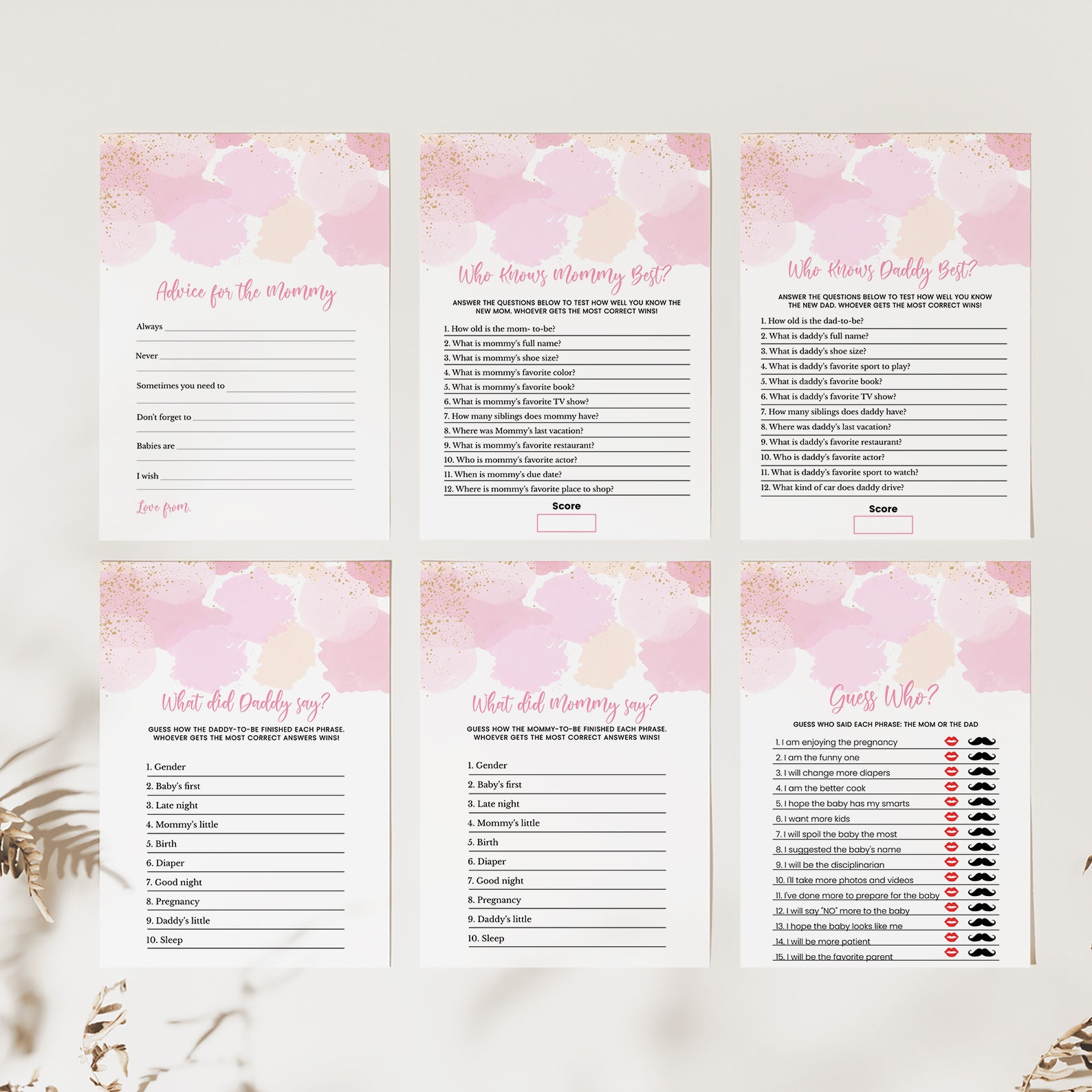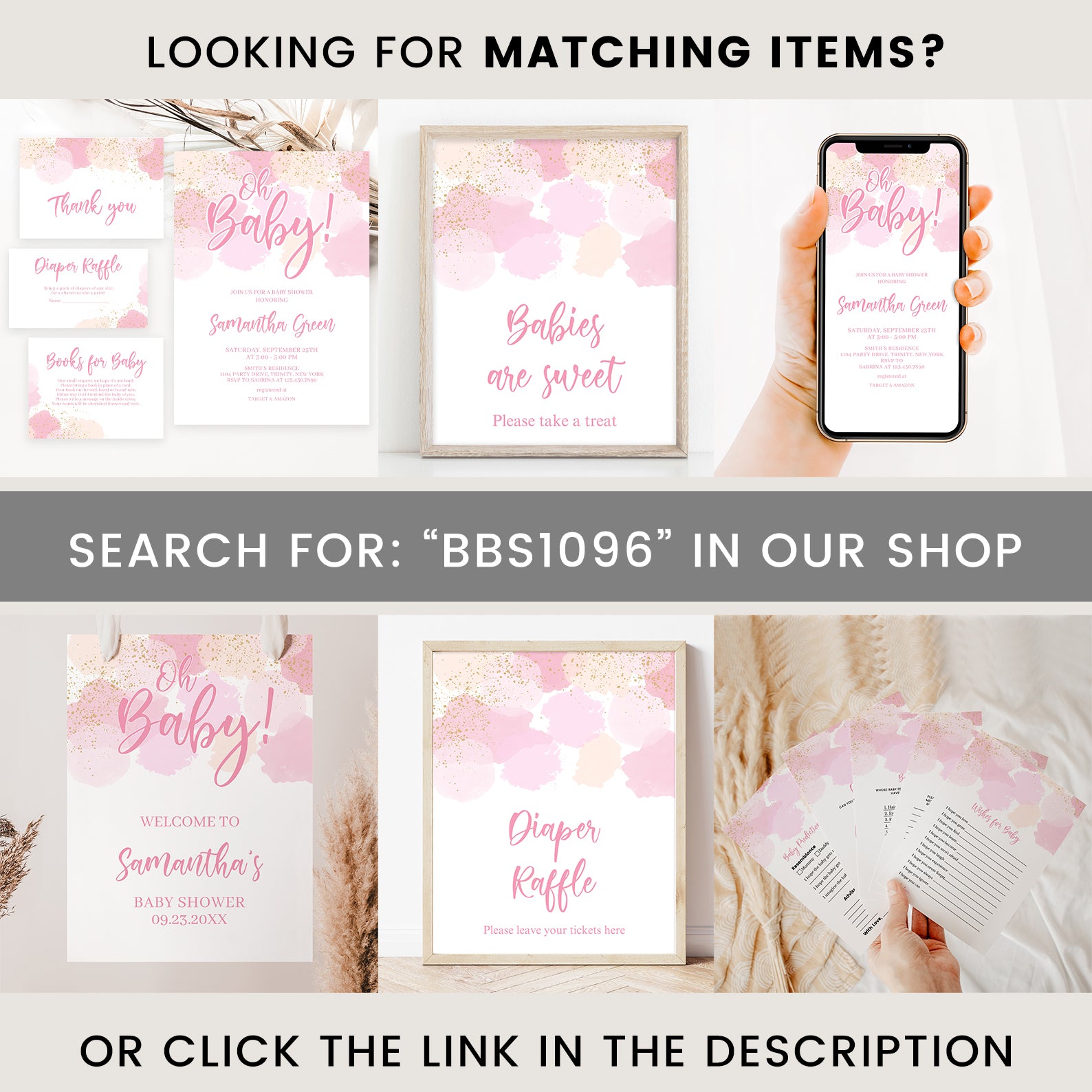 - Purchase this Oh Baby Pink Shower Game Bundle with Gold & Watercolor Accents template