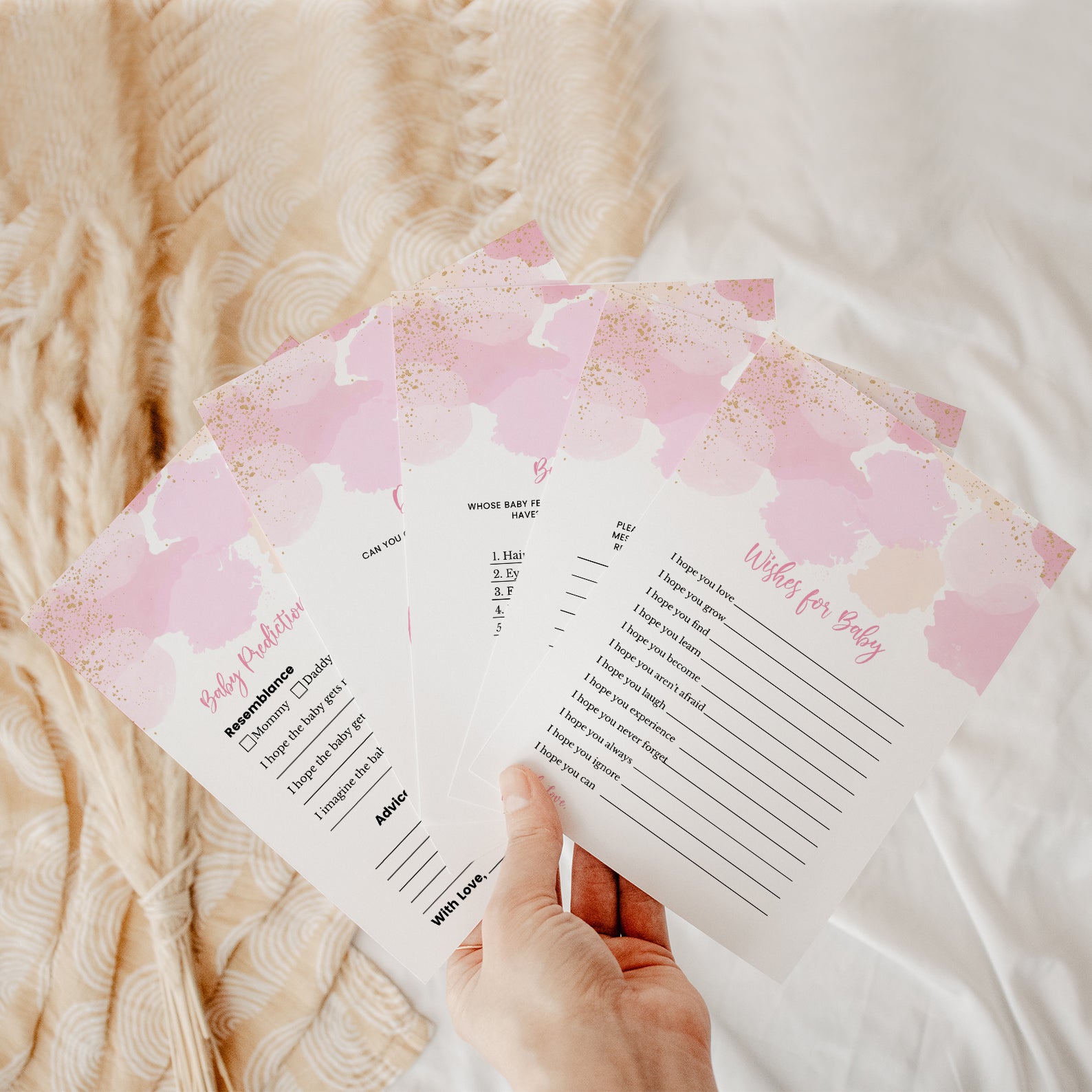 Oh Baby Pink Shower Game Bundle with Gold & Watercolor Accents