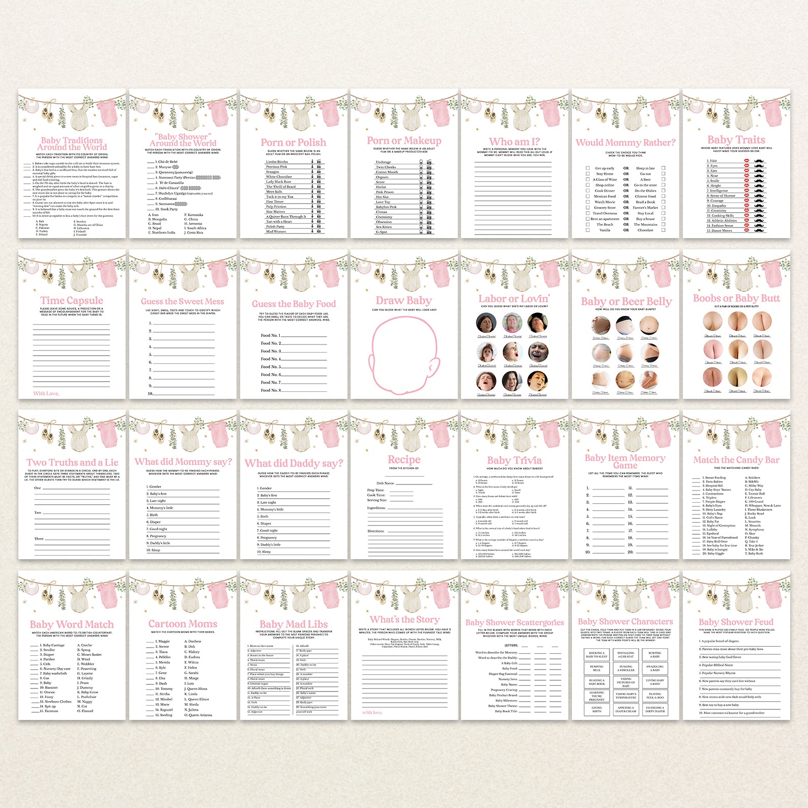 - Purchase this Pink Baby Shower Digital Game Bundle: A Sweet Girl Is On The Way template