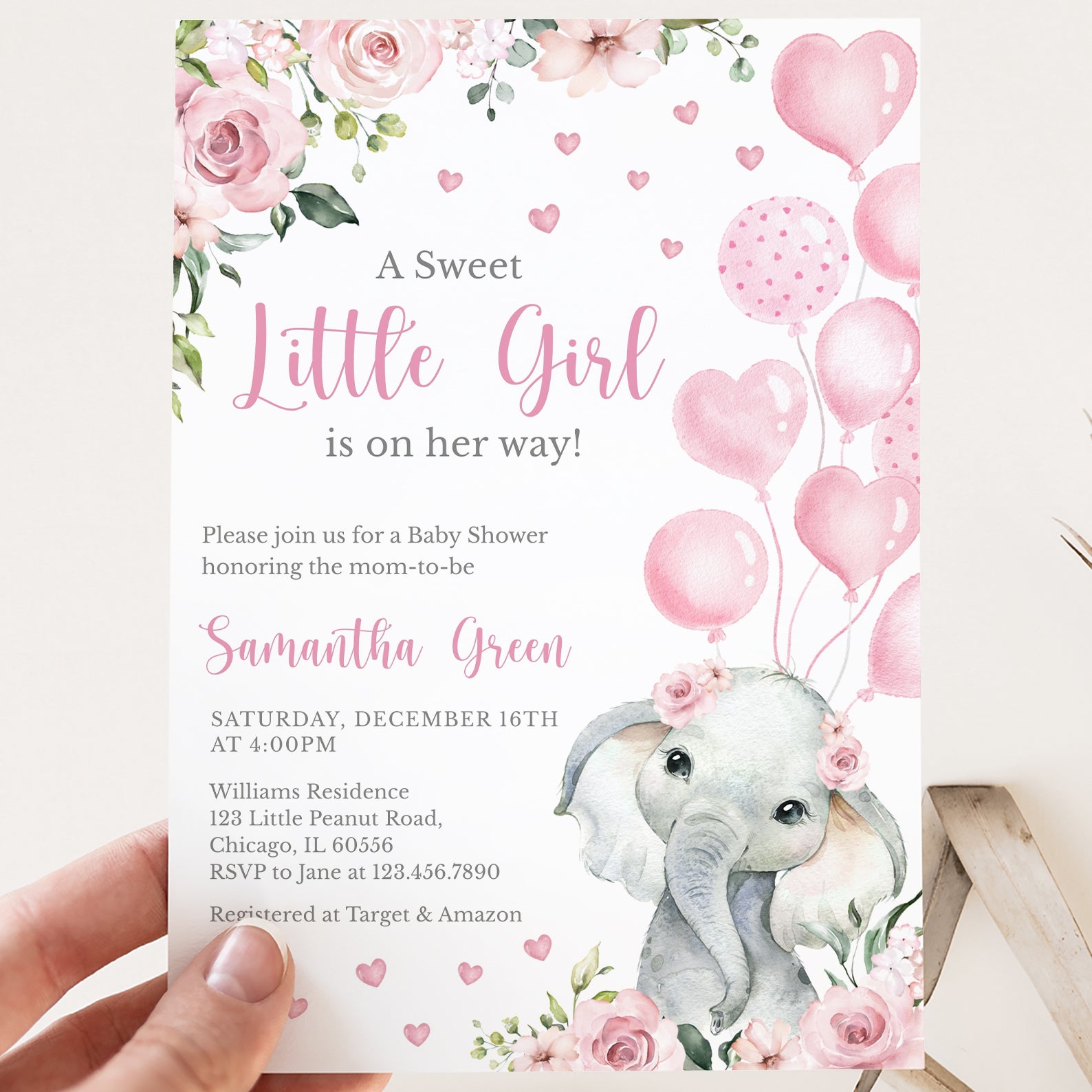 - Purchase this Pink Floral Elephant Baby Shower Invitation for Girl template