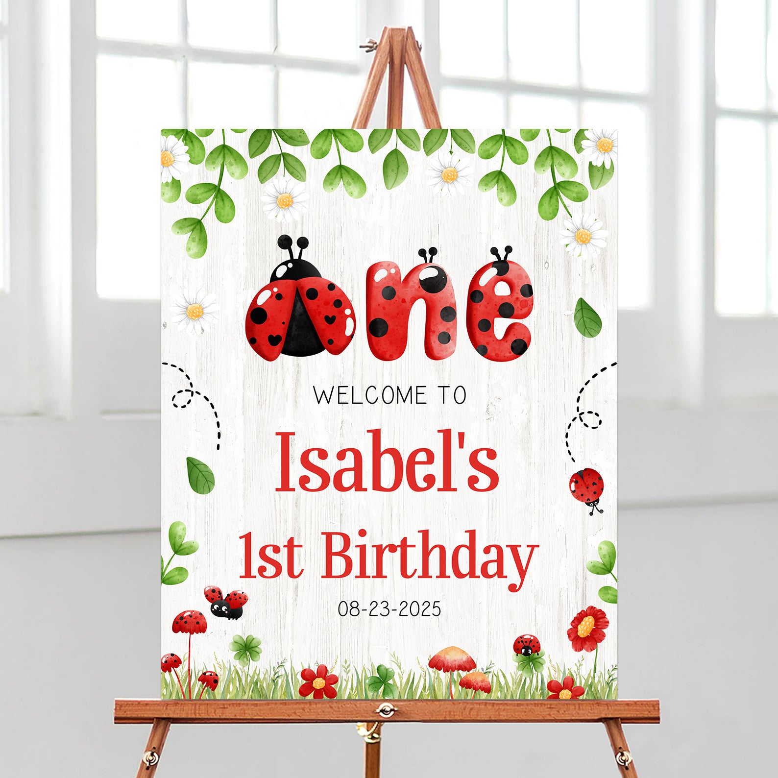 - Purchase this Ladybug 1st Birthday Welcome Sign: Summer Garden Theme template