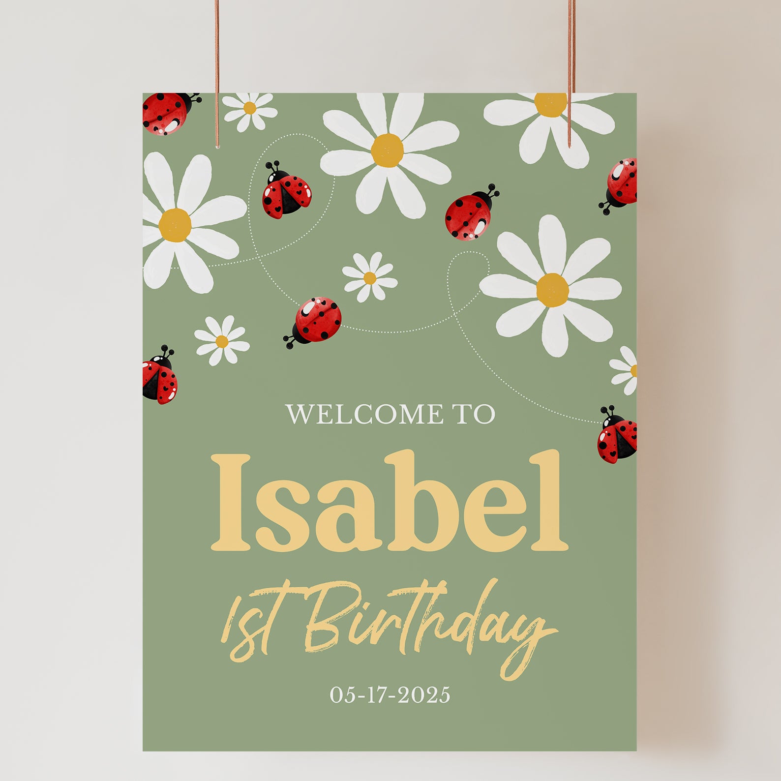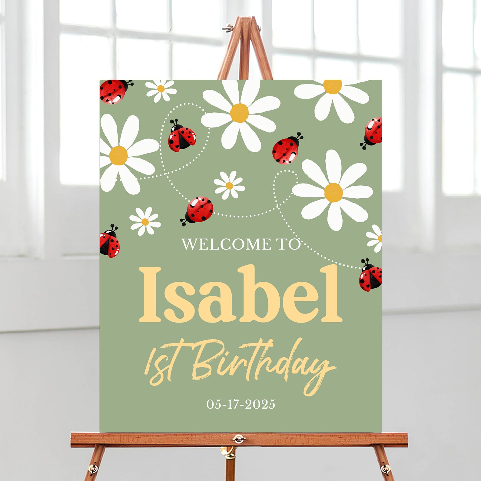 - Purchase this Little Ladybug Digital Birthday Welcome Sign Daisies & Green Theme template