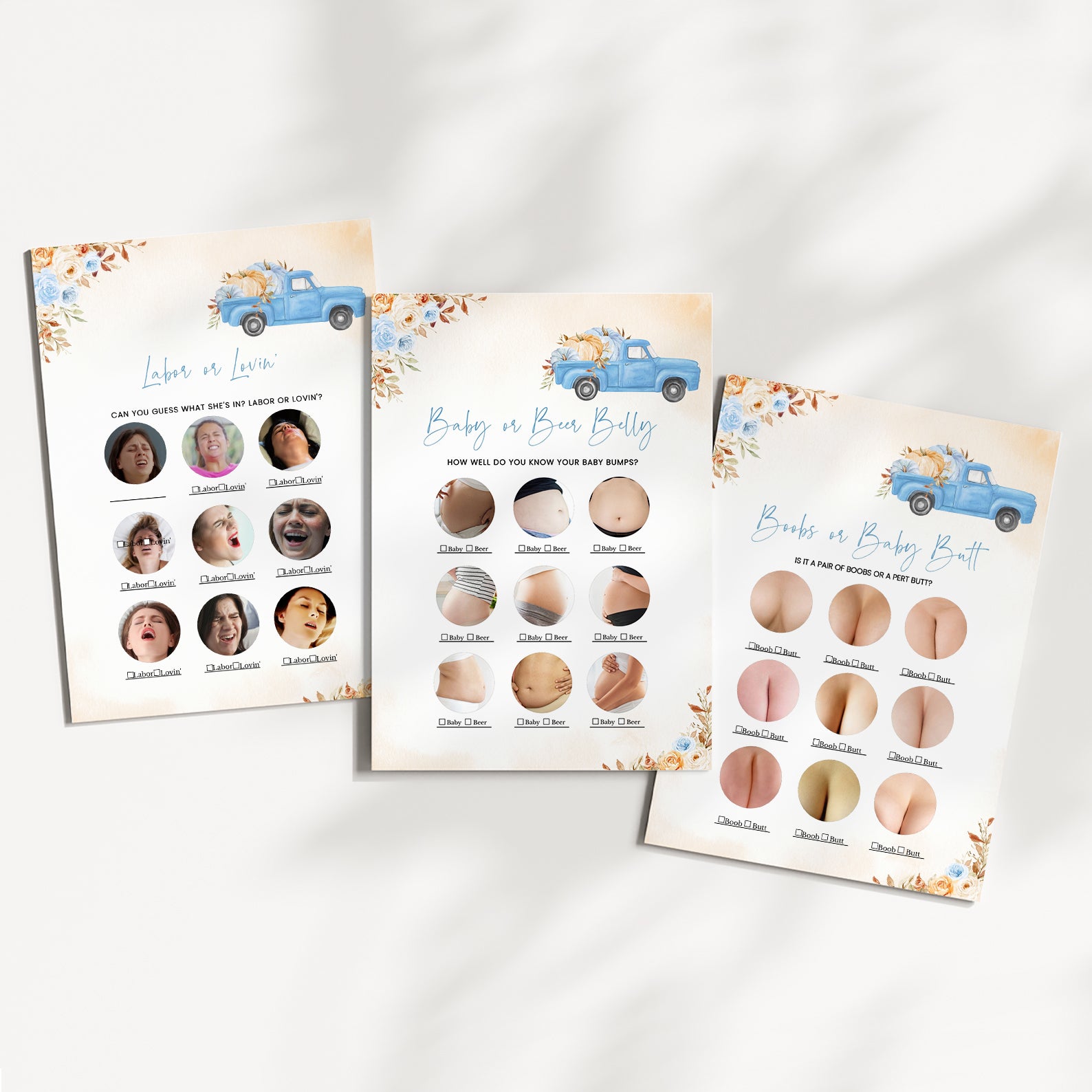 Pickup Truck & Pumpkins with Roses Fall Baby Shower Game Bundle
