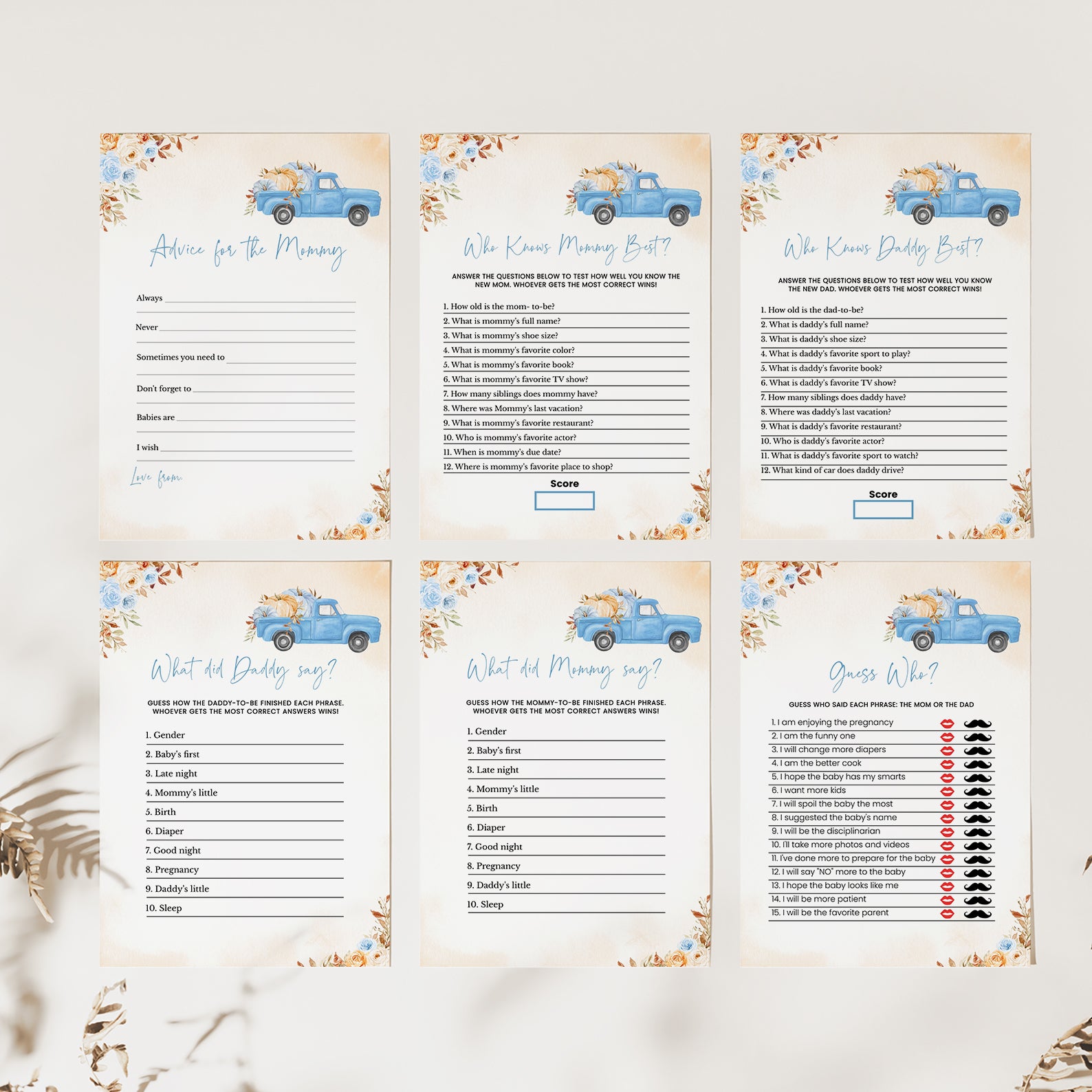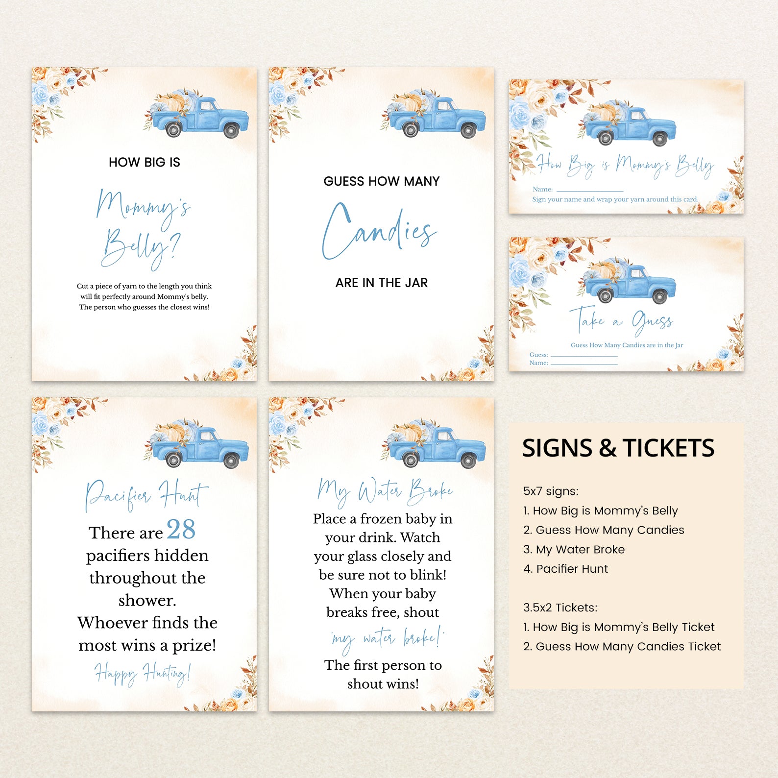 - Purchase this Pickup Truck & Pumpkins with Roses Fall Baby Shower Game Bundle template