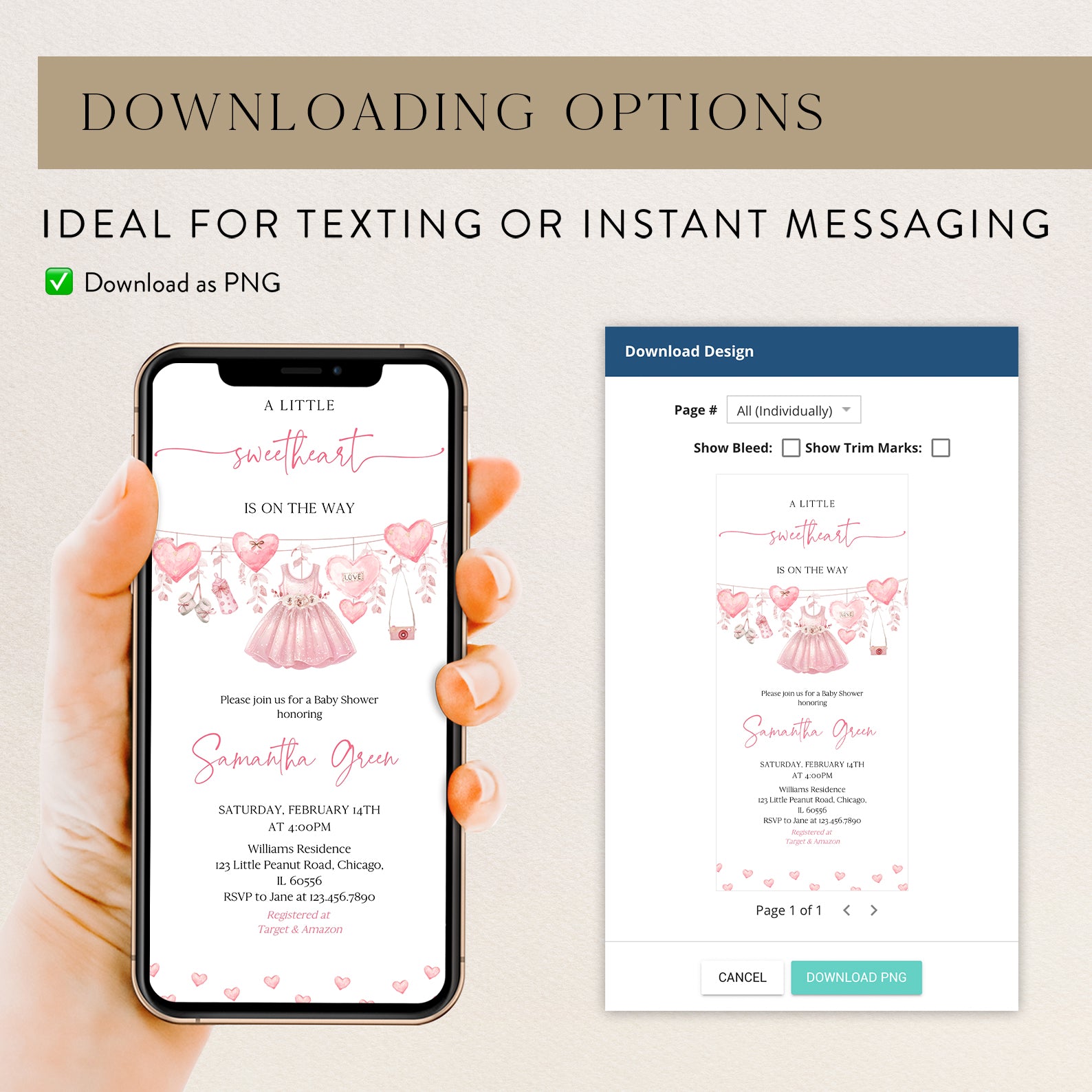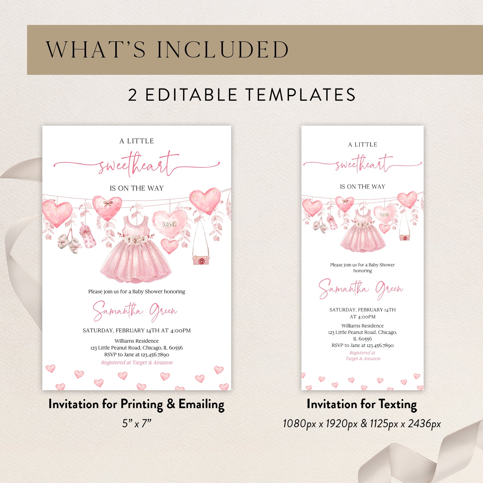 - Purchase this Valentine's Baby Shower Digital Invite Bundle: Little Sweetheart Theme template