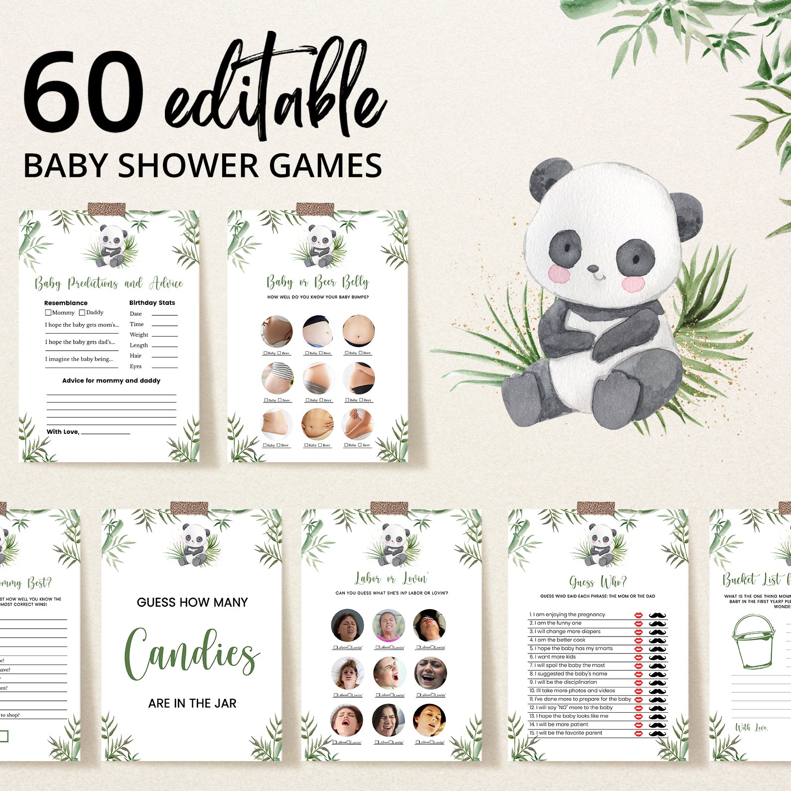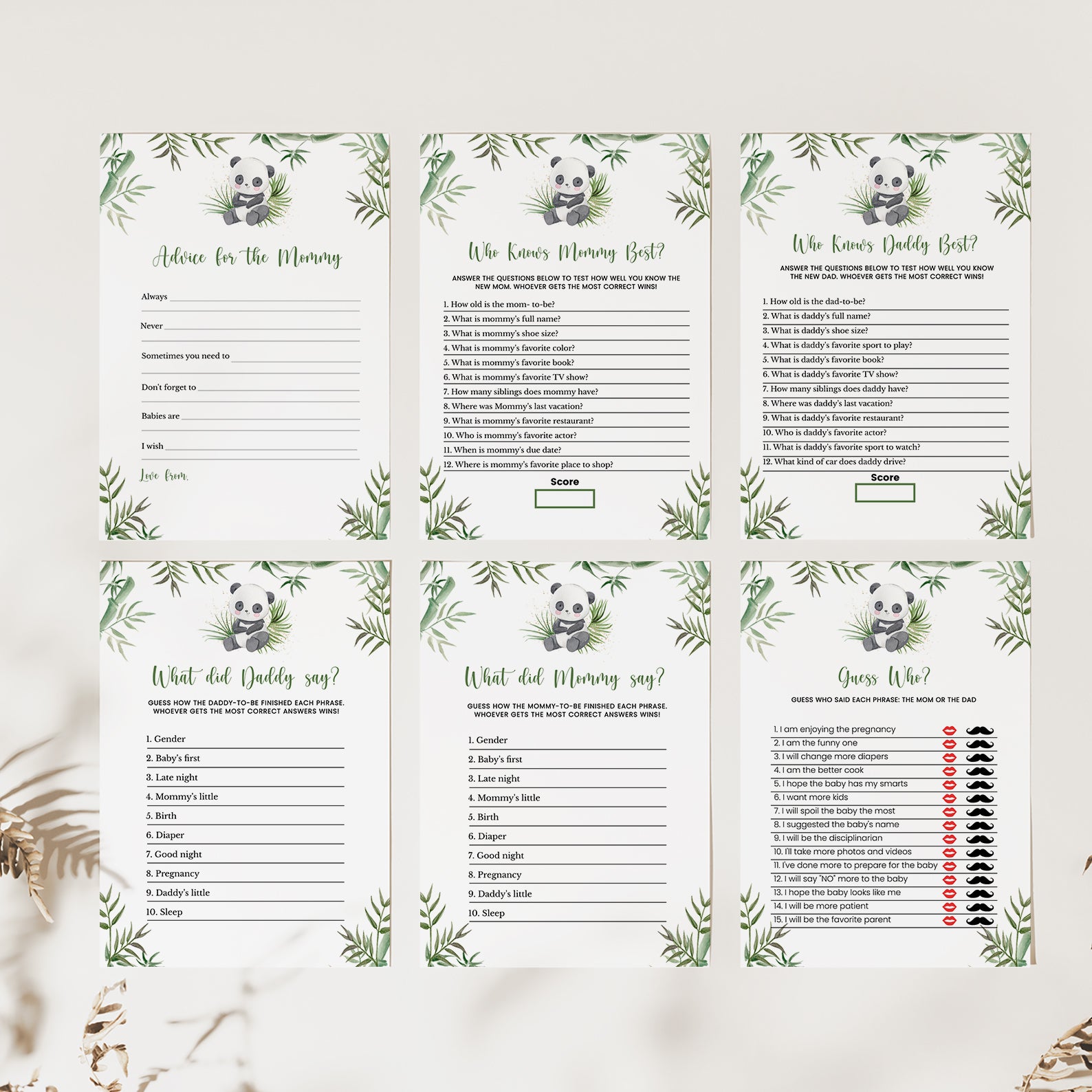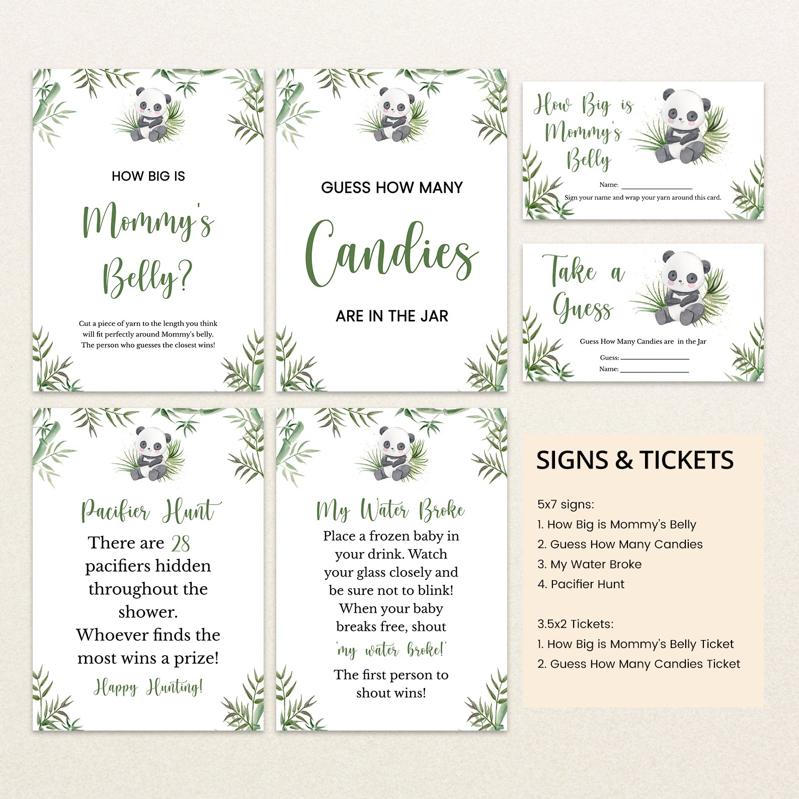 - Purchase this Cute Panda Baby Shower Digital Game Bundle: Bamboo & Gold Accents template