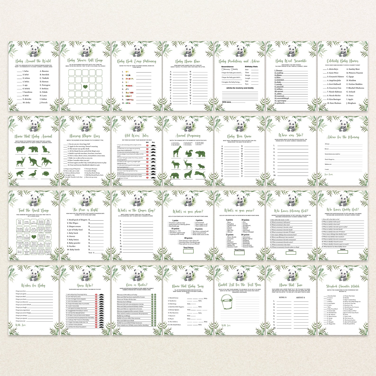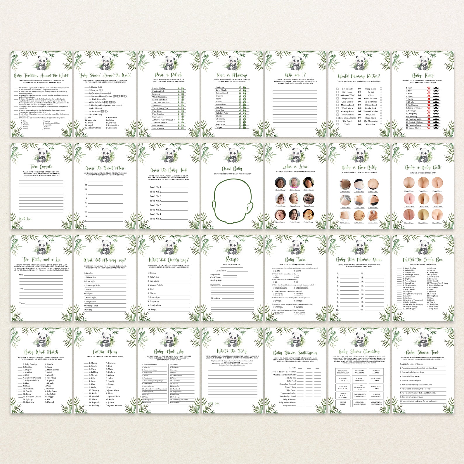 Cute Panda Baby Shower Digital Game Bundle: Bamboo & Gold Accents