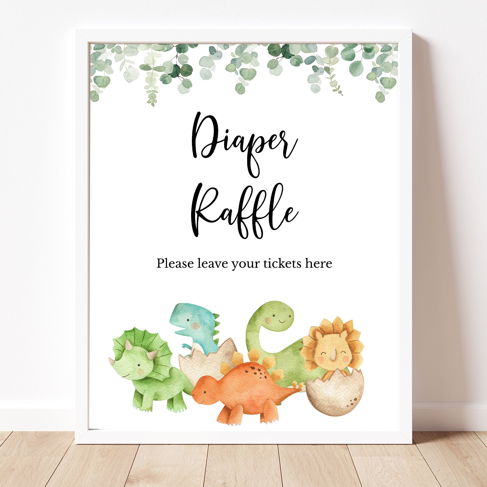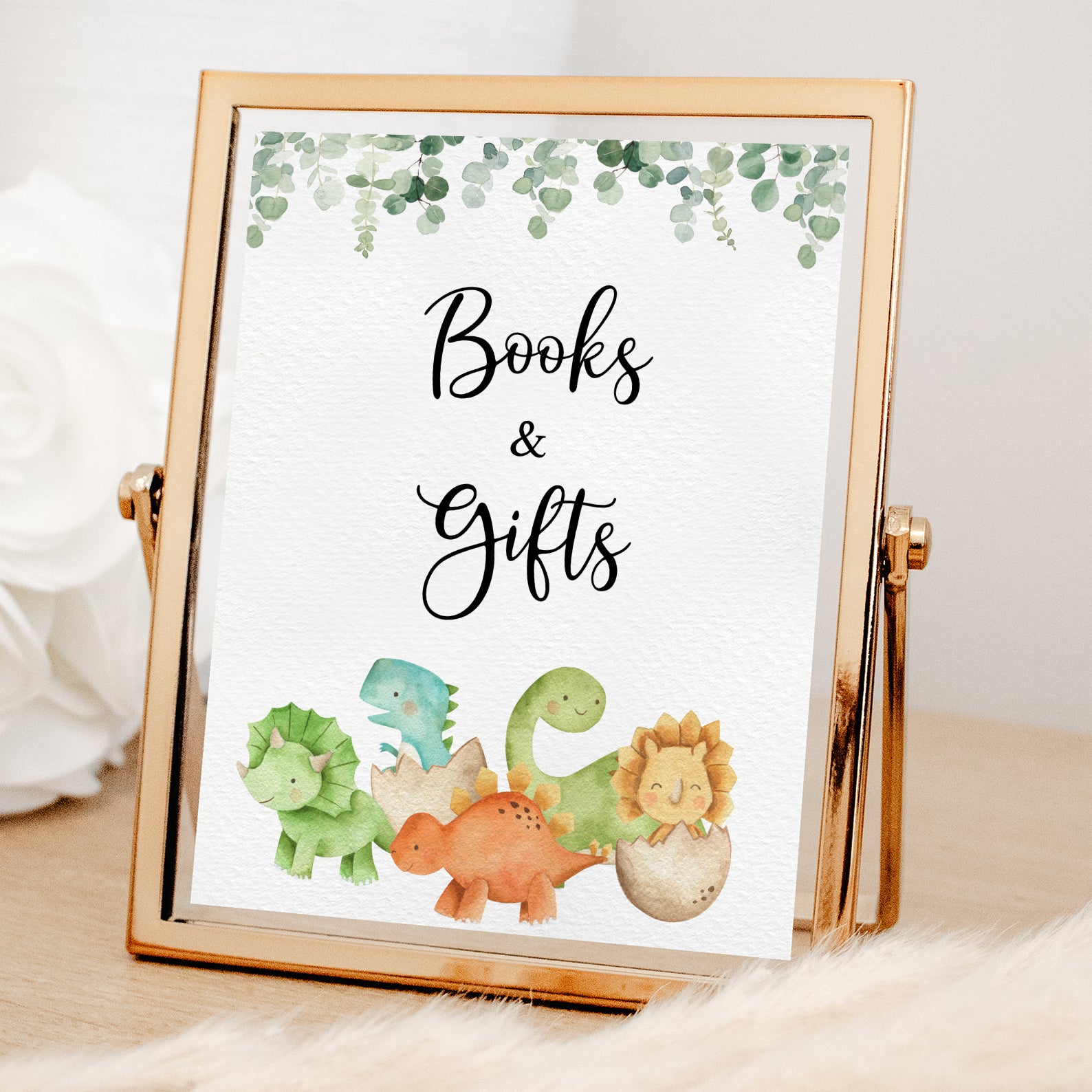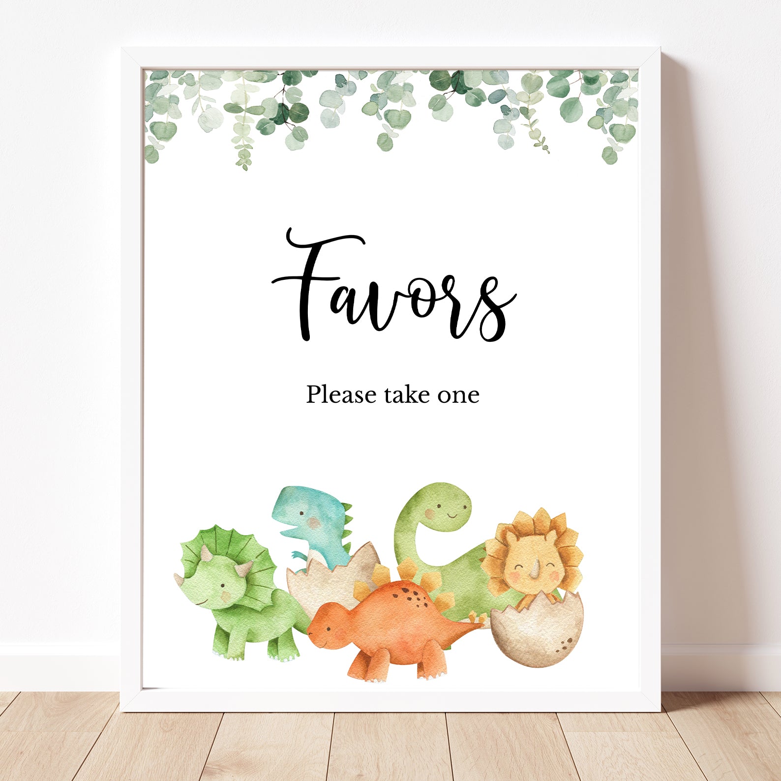 - Purchase this Dinosaur Baby Shower Table Sign with Greenery & Cute Dinos template