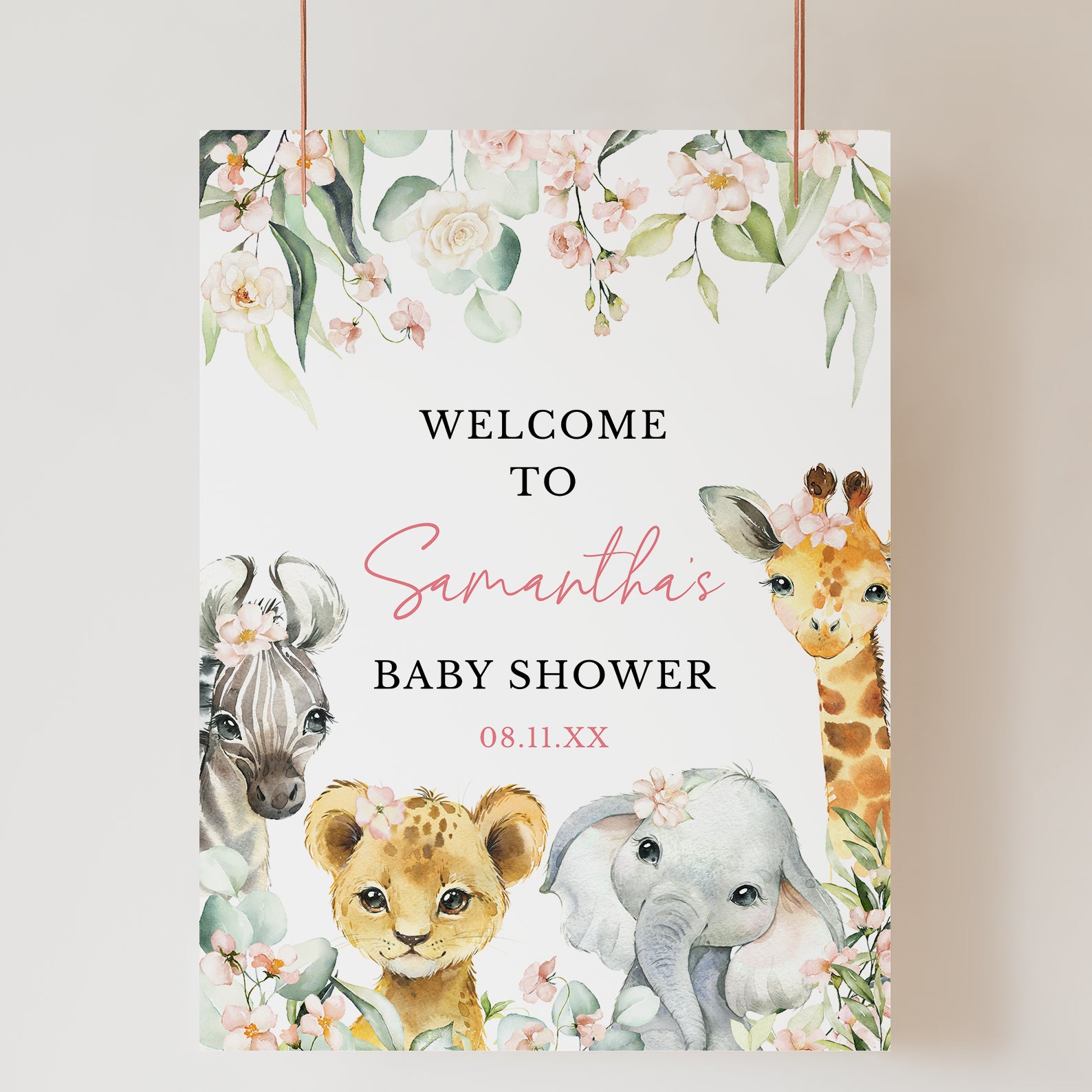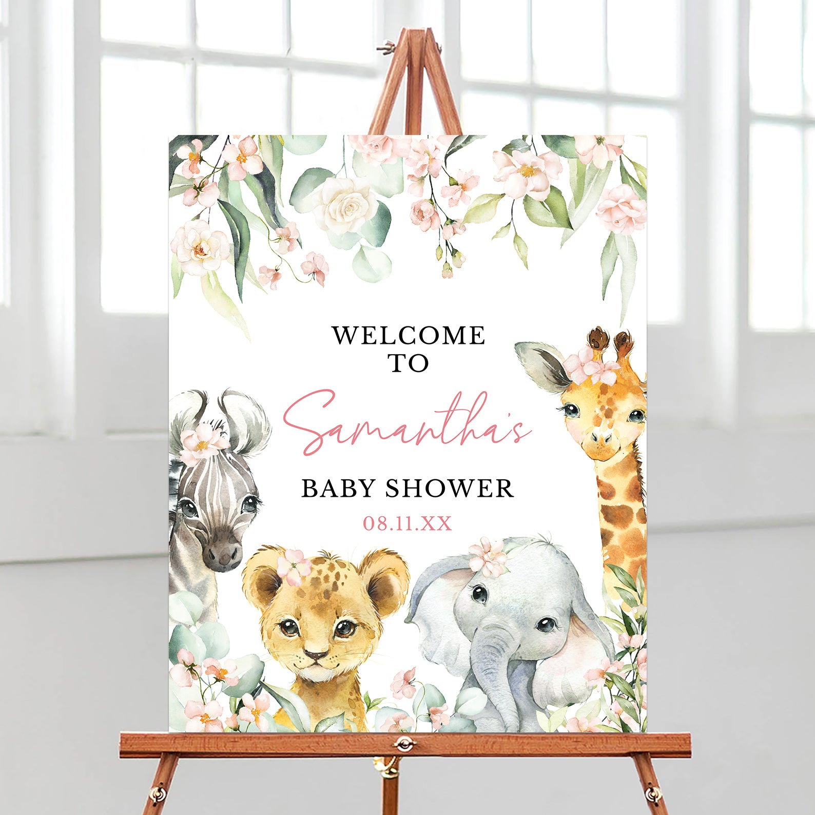 Floral Wild One Baby Shower Welcome Sign with Cute Animals