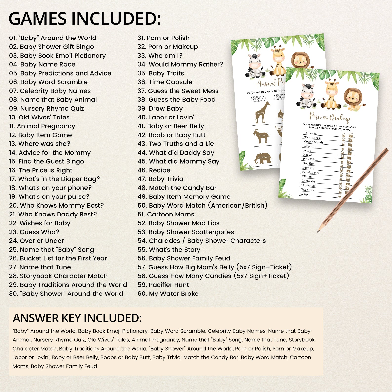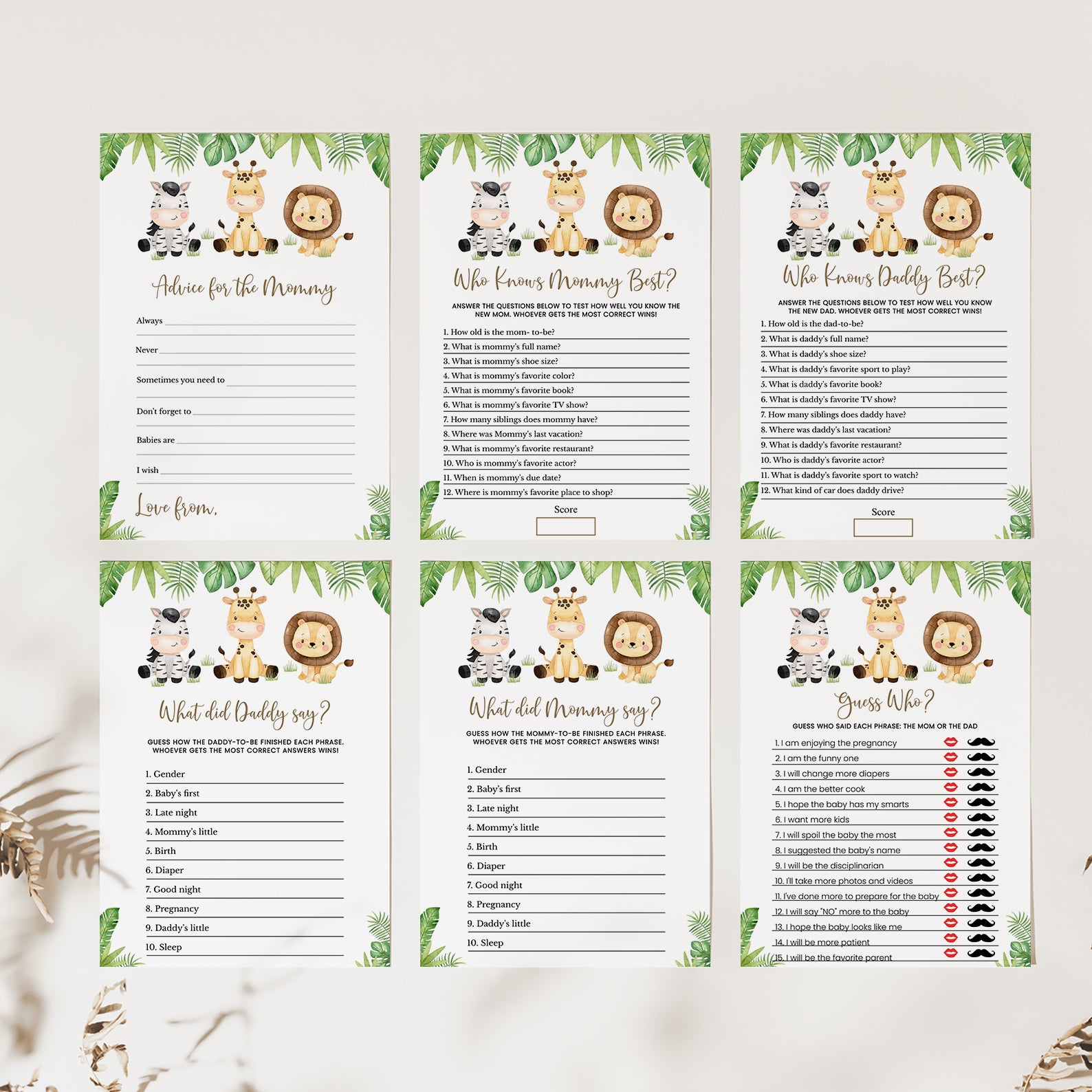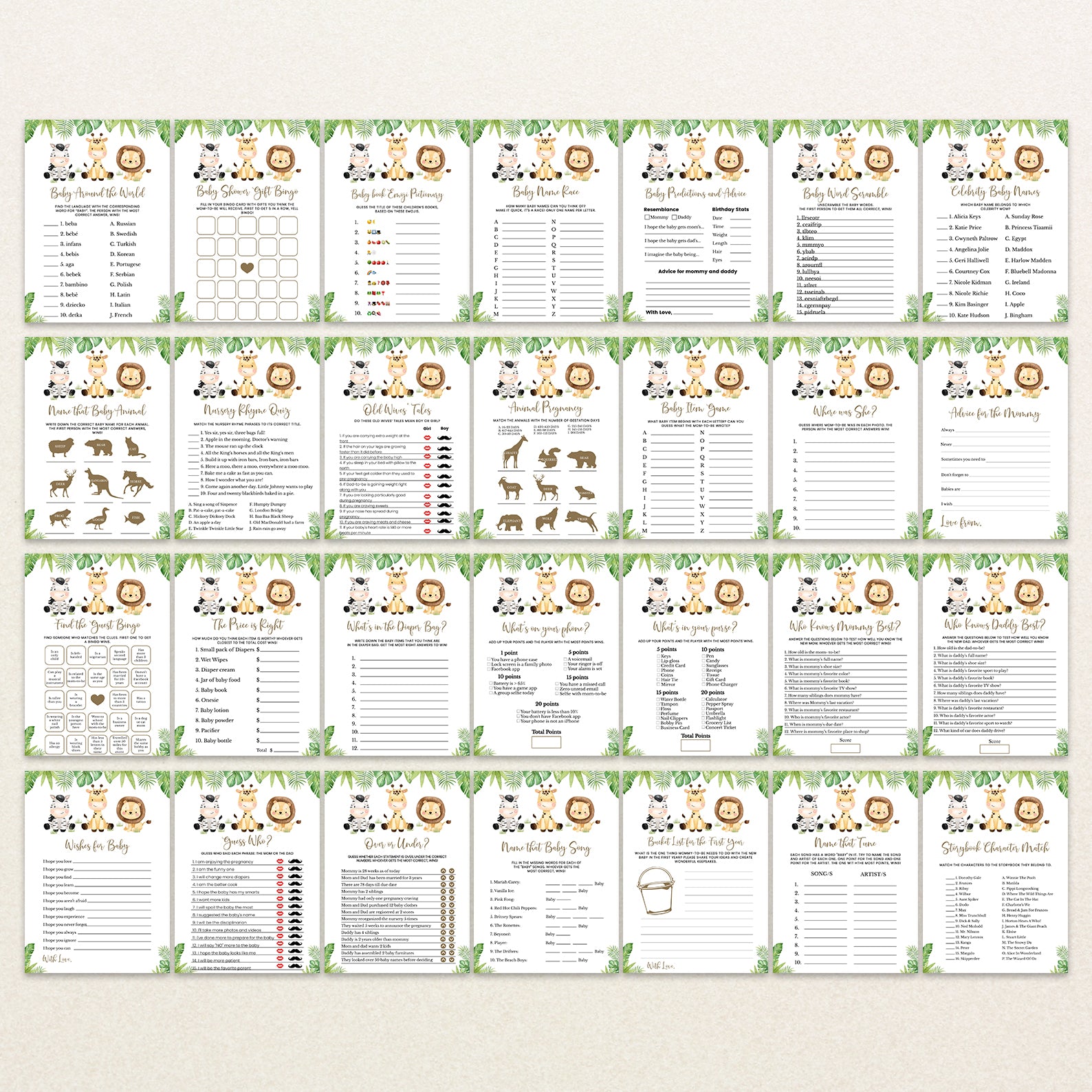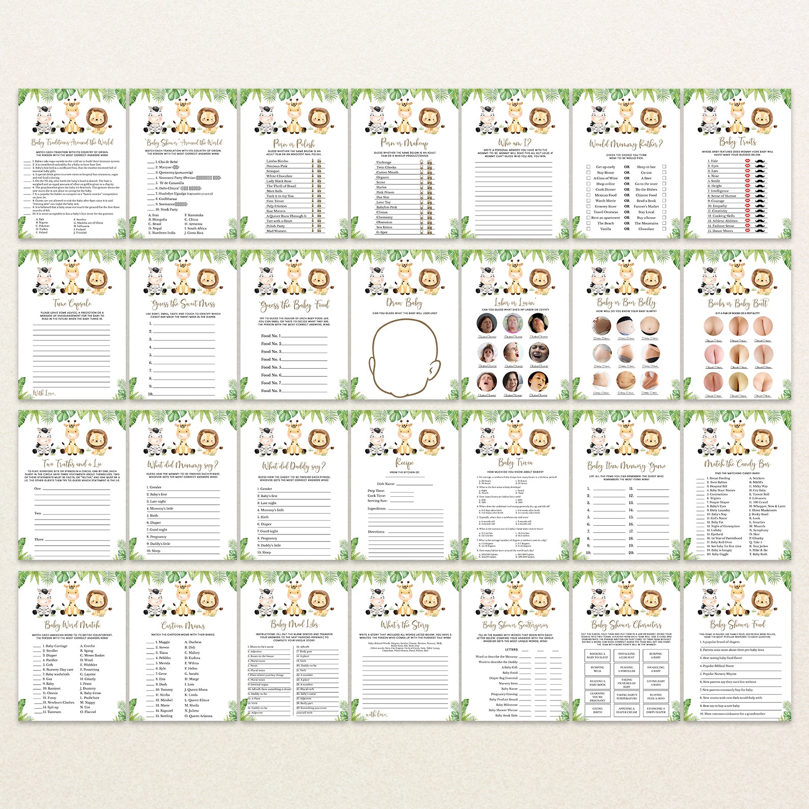 - Purchase this It’s a Boy Jungle Baby Shower Game Bundle: Safari Animals Theme template