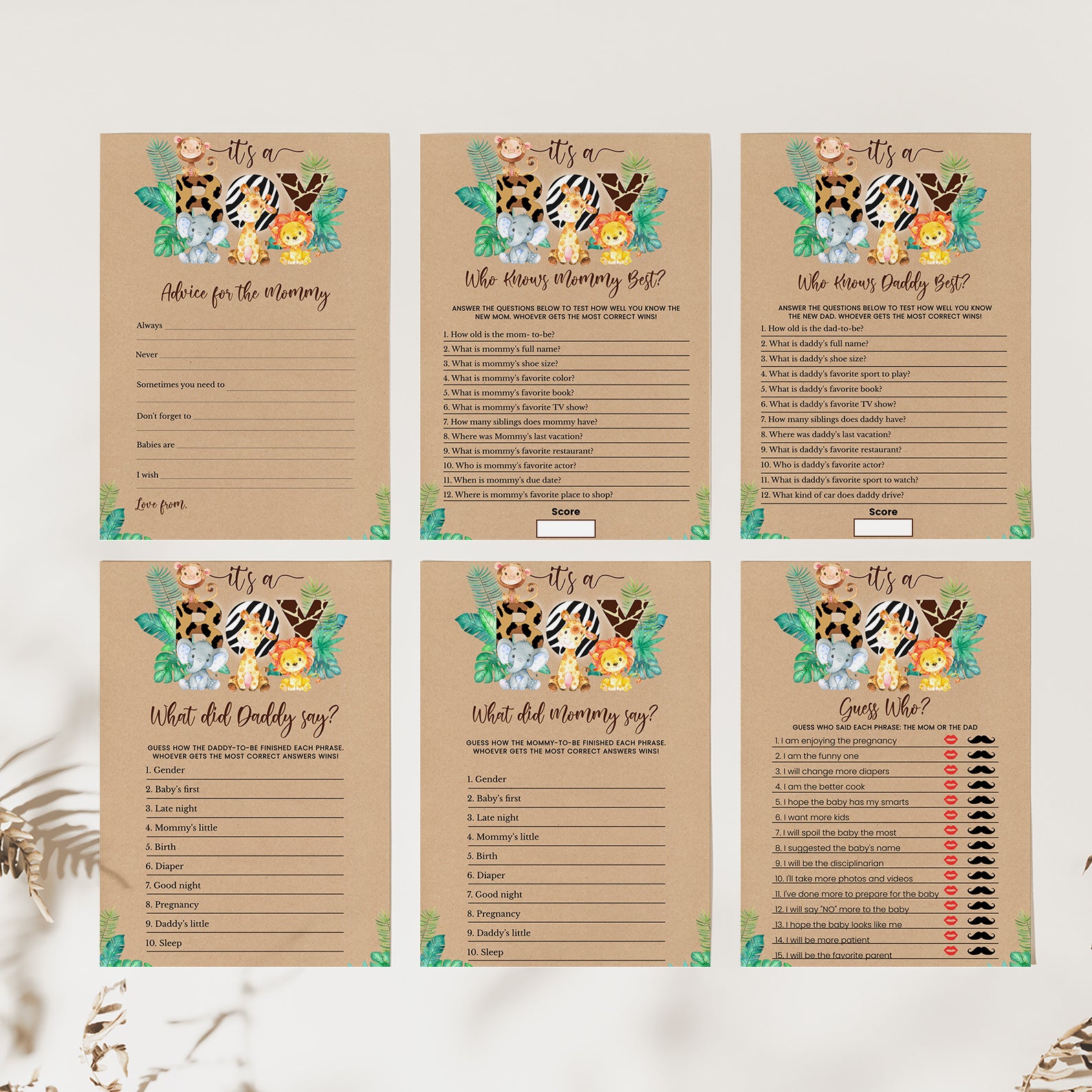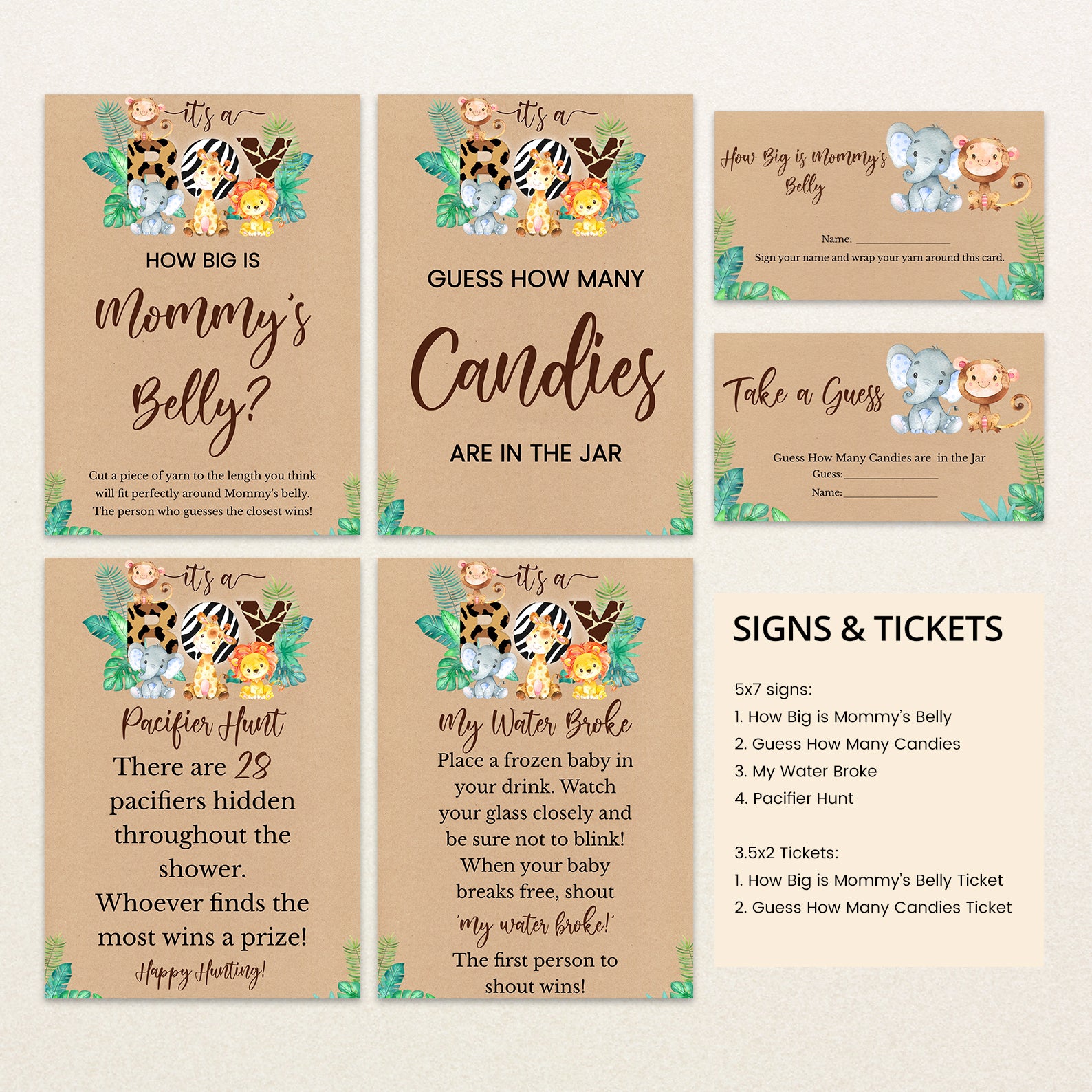 It’s a Boy Jungle Safari Baby Shower Kraft Game Bundle