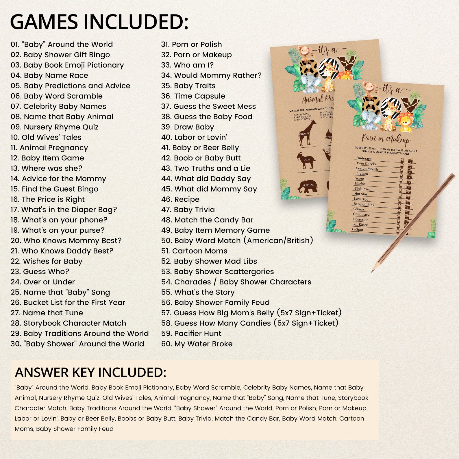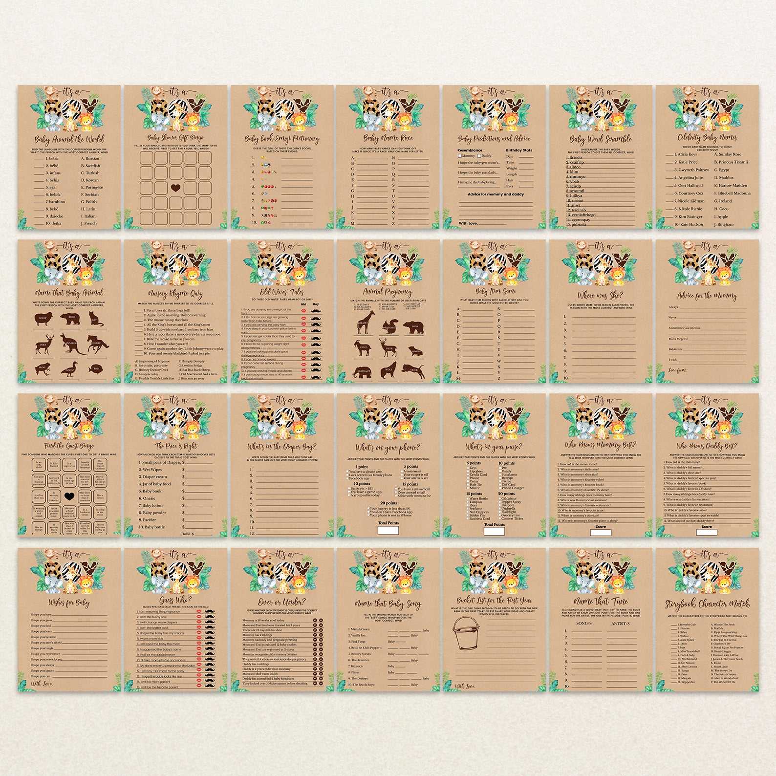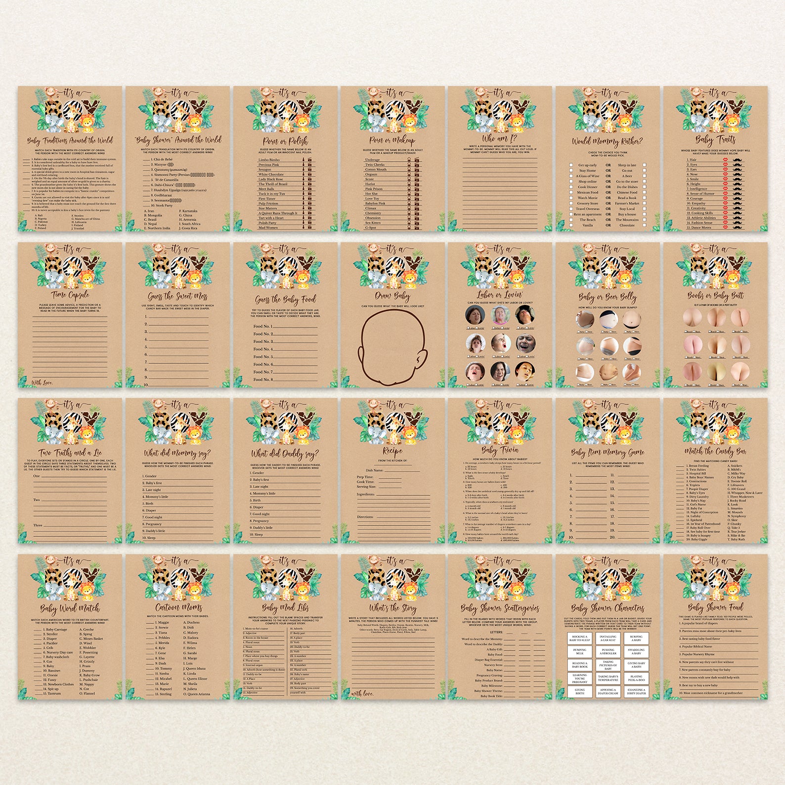 - Purchase this It’s a Boy Jungle Safari Baby Shower Kraft Game Bundle template