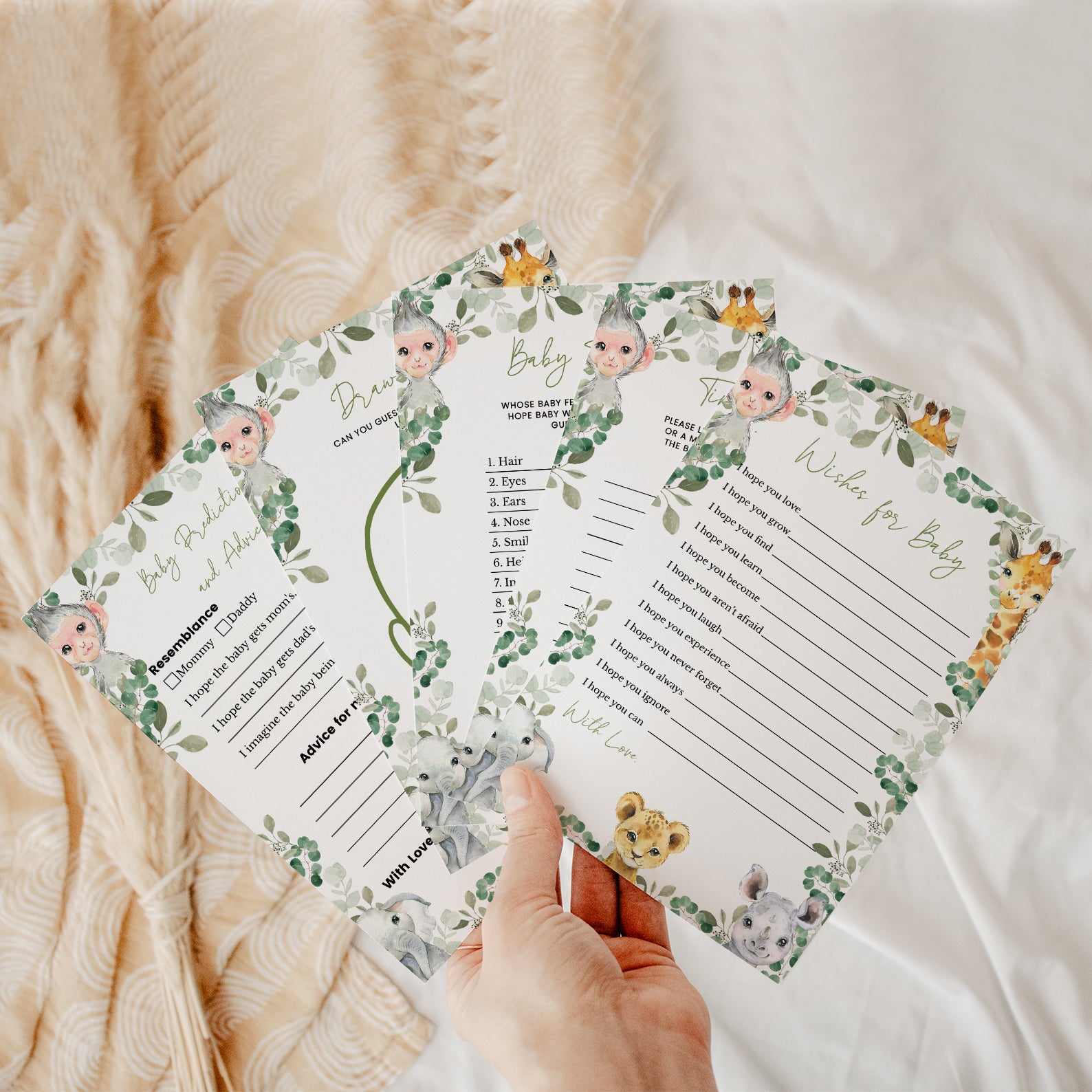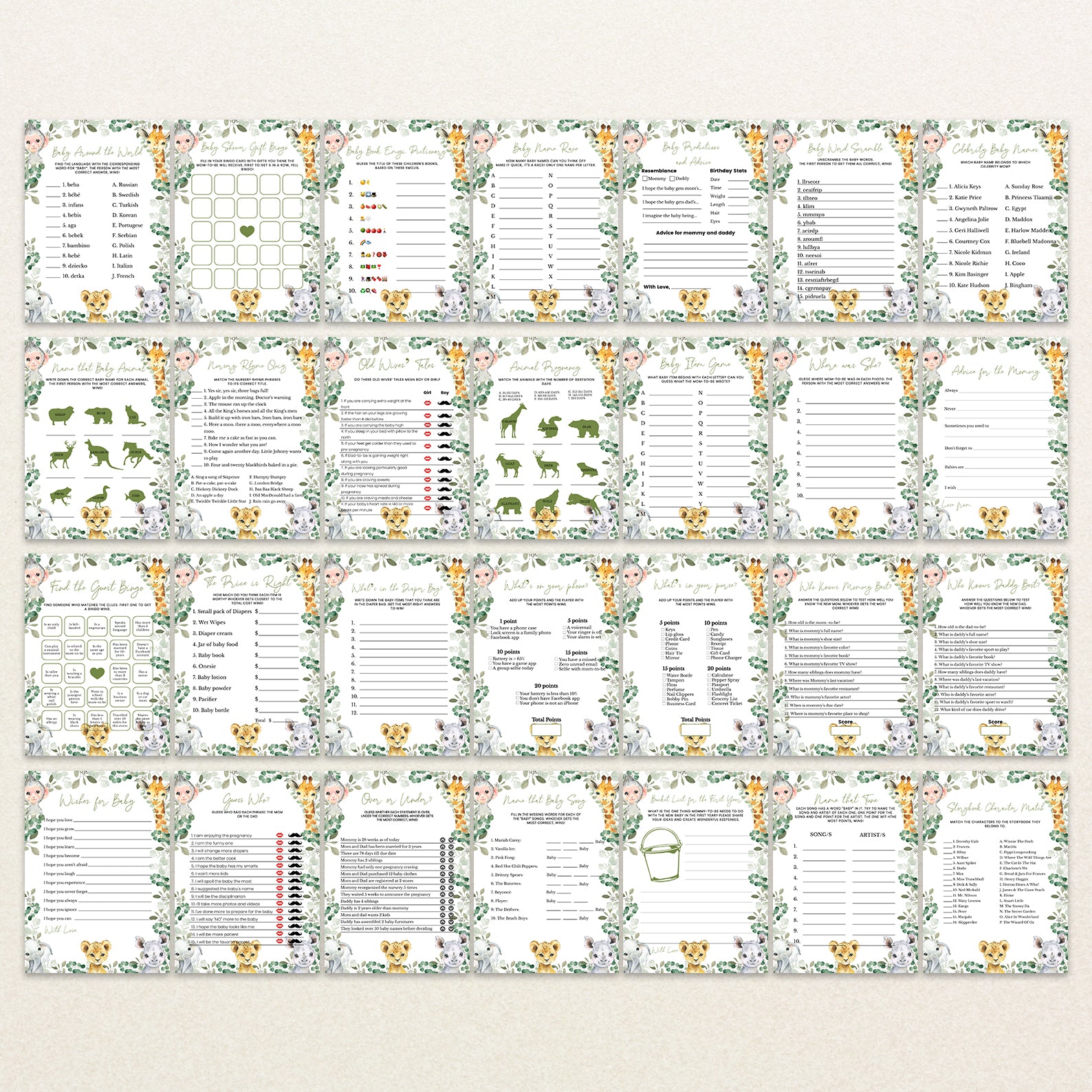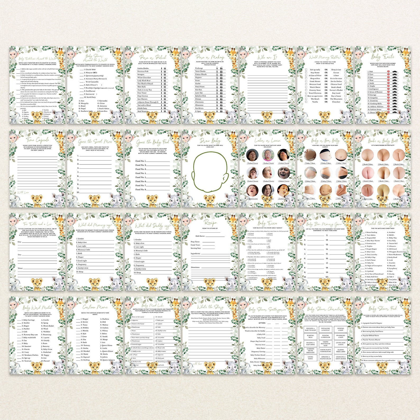- Purchase this Jungle Safari Baby Shower Game Bundle, Boy Theme in Green & Gold template