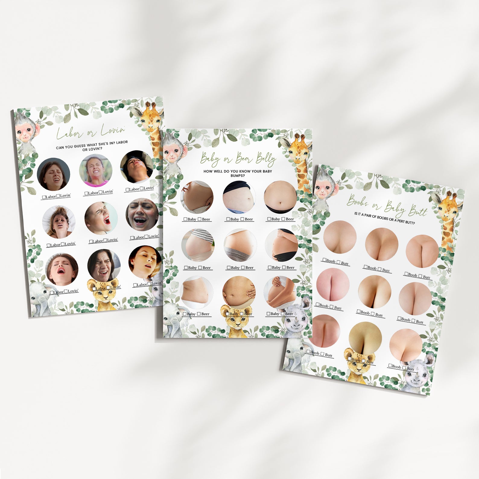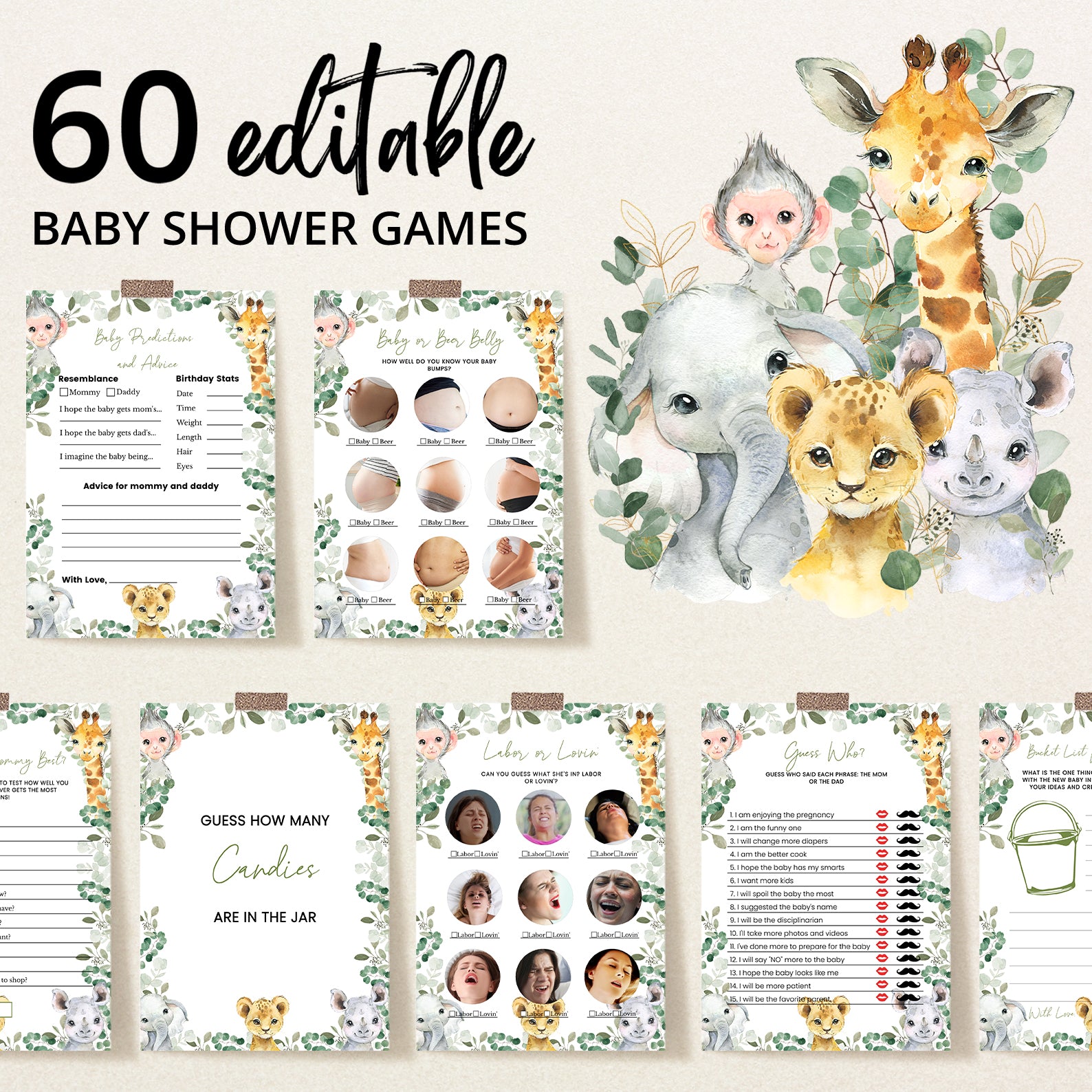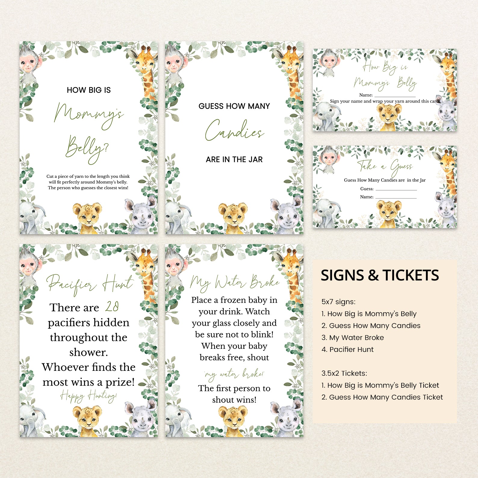 - Purchase this Jungle Safari Baby Shower Game Bundle, Boy Theme in Green & Gold template