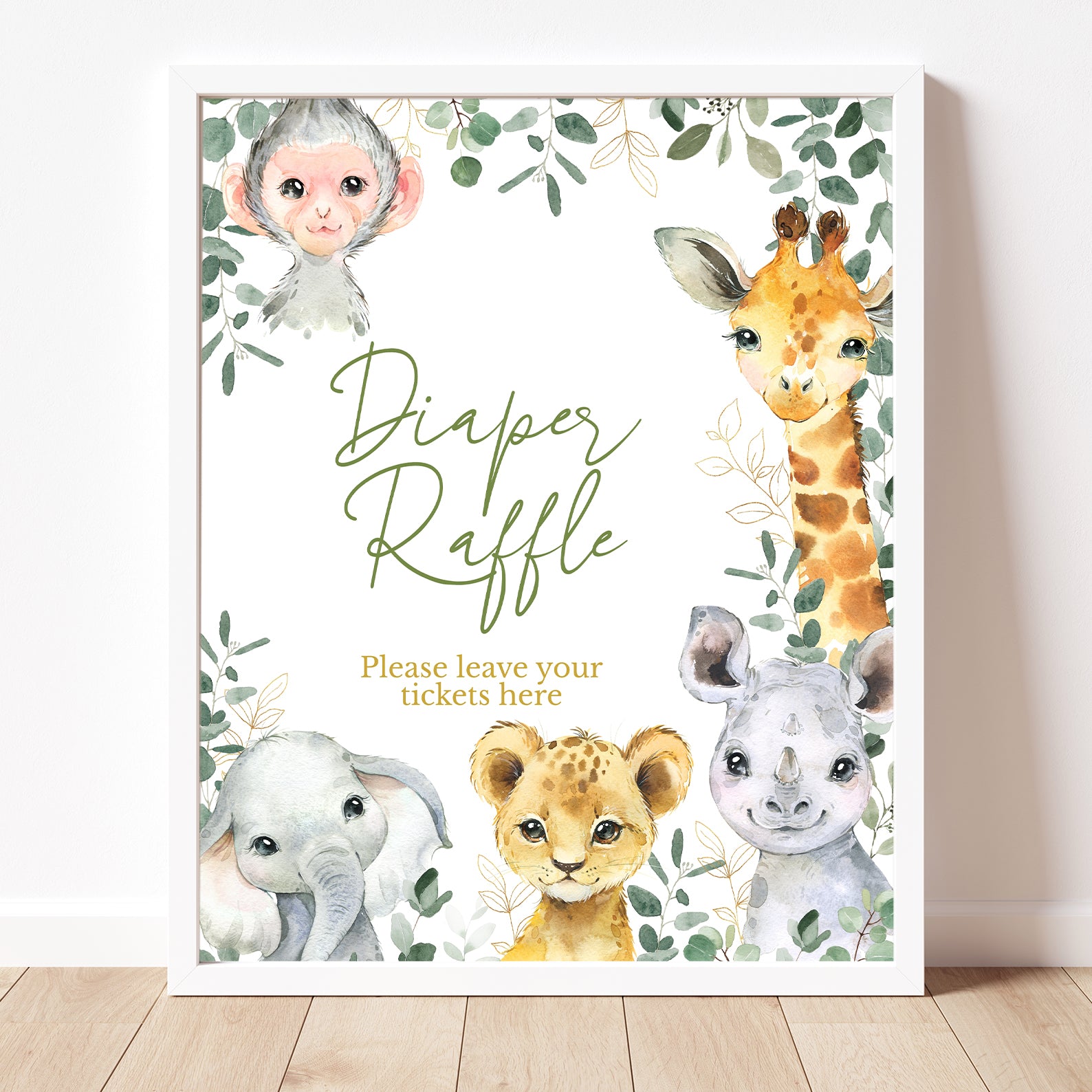- Purchase this Jungle Safari Baby Shower Table Sign, Boy Theme in Green & Gold template