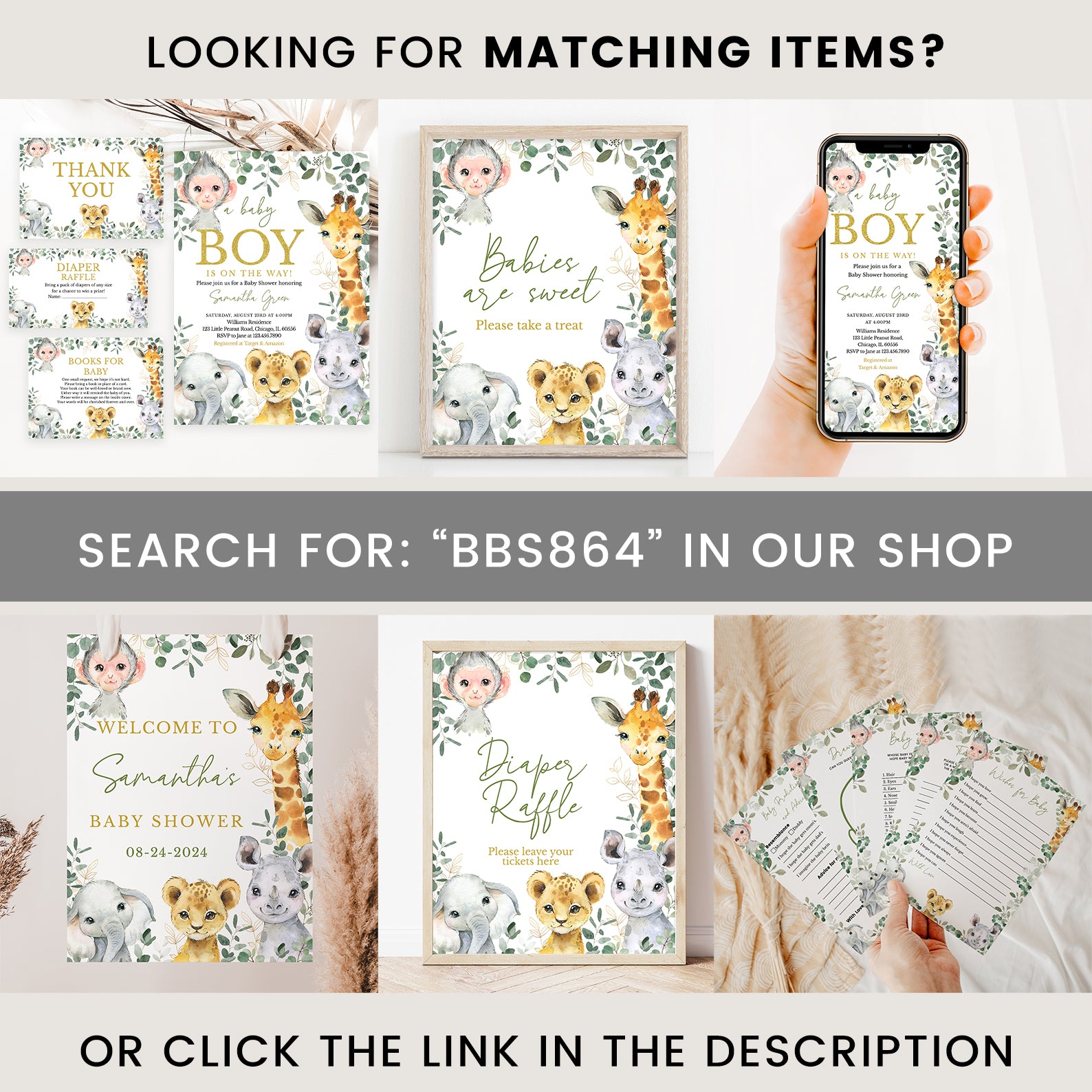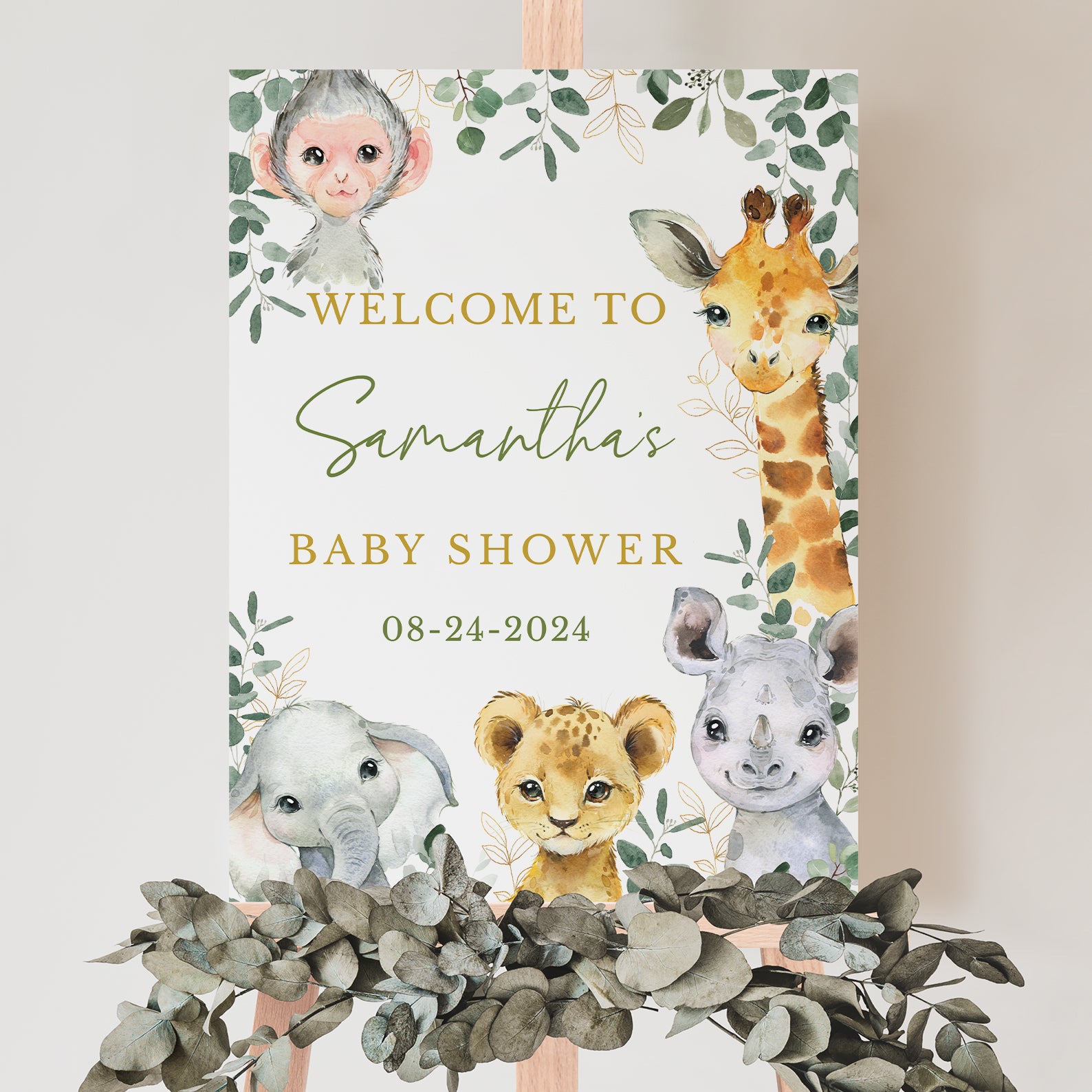1. Purchase this Jungle Safari Baby Shower Welcome Sign, Boy Theme in Green & Gold template
