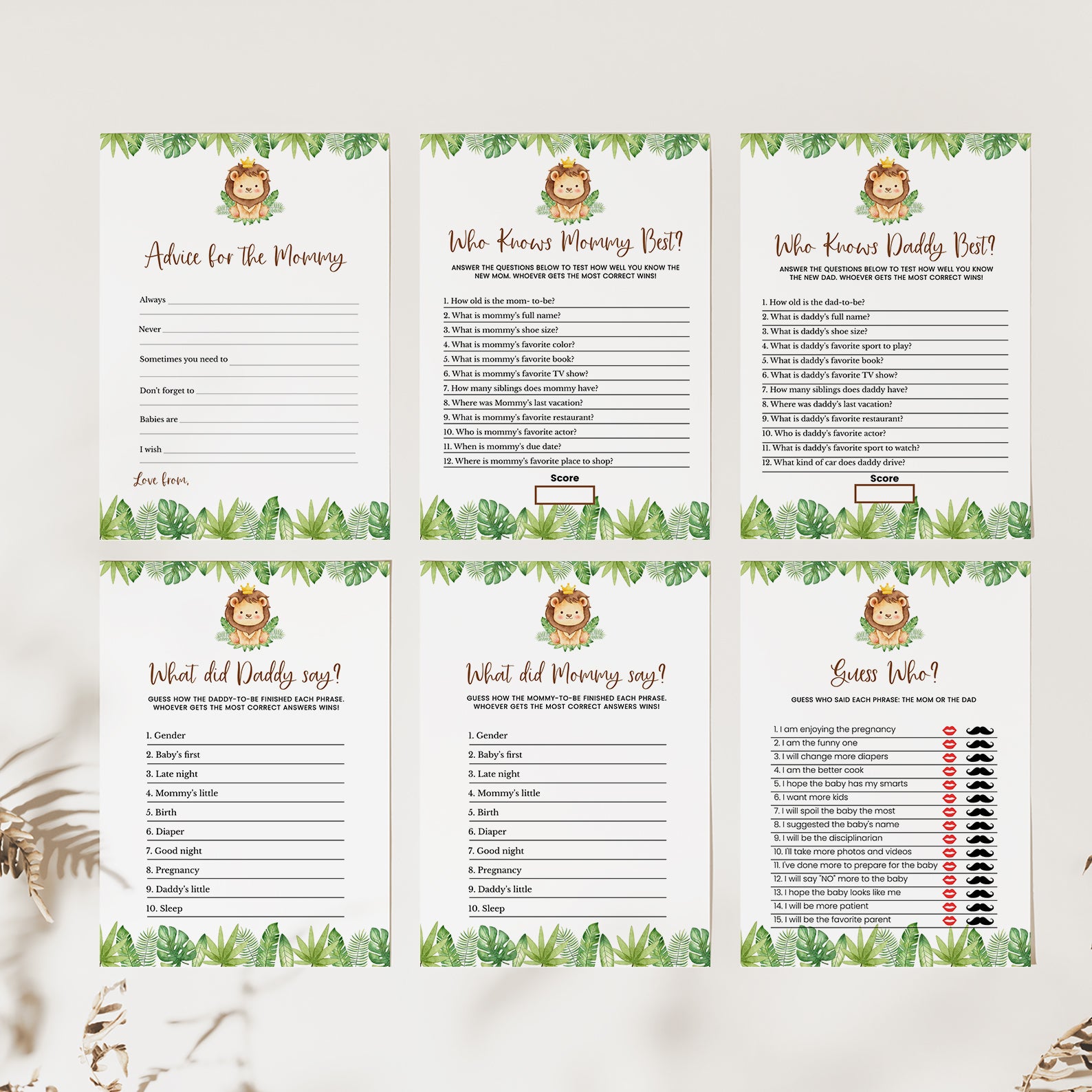 Our Little King Baby Shower Game Bundle: Jungle Lion Theme