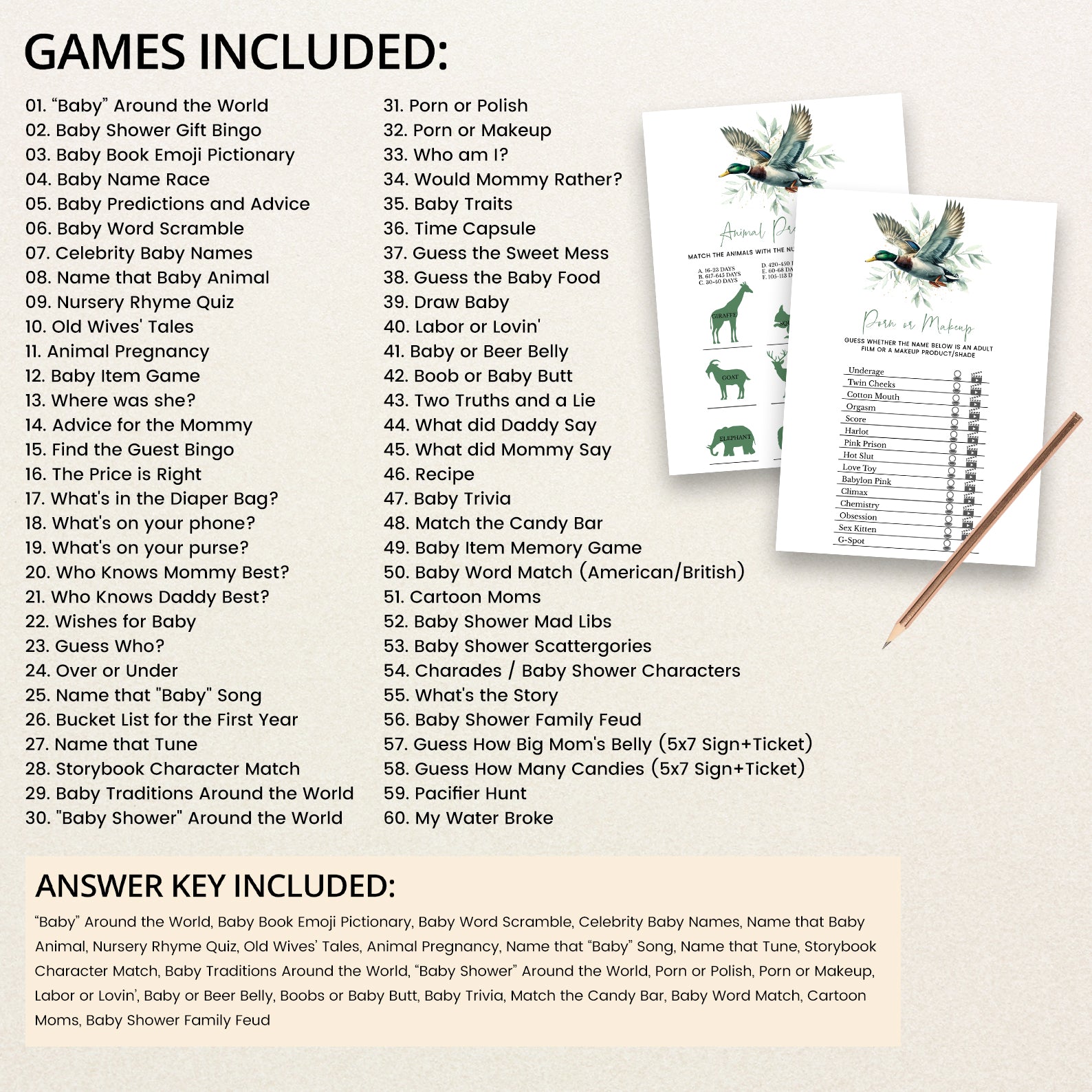 • 60 Editable Baby Shower Games Included
