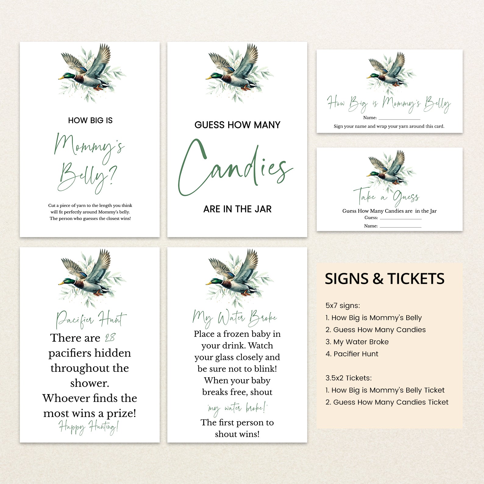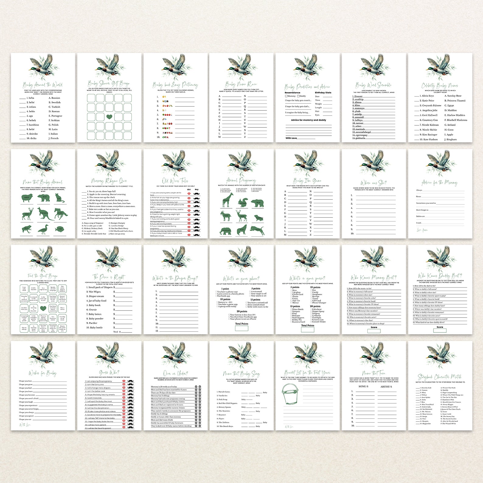 Minimalist Spring Baby Shower Digital Game Bundle with Mallard