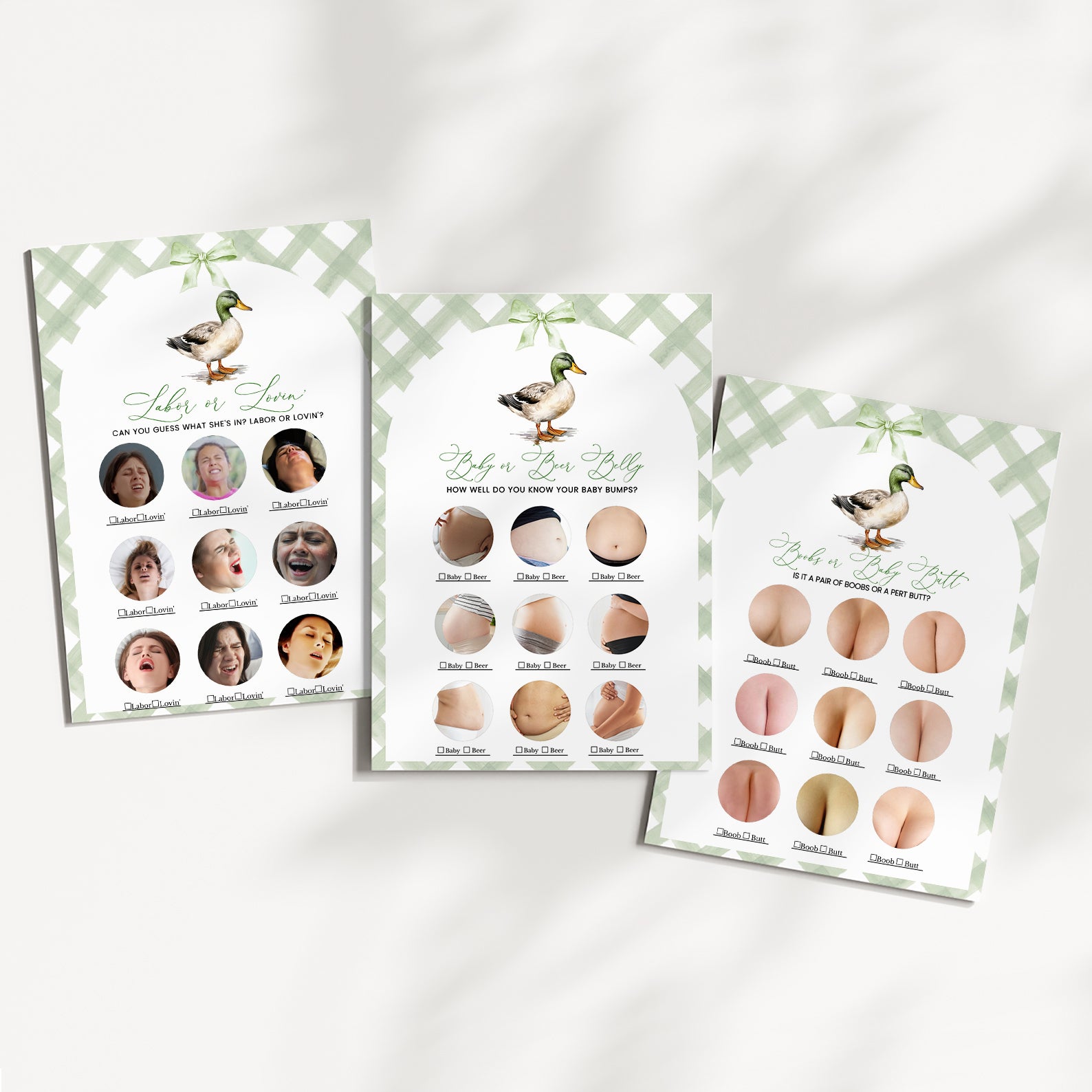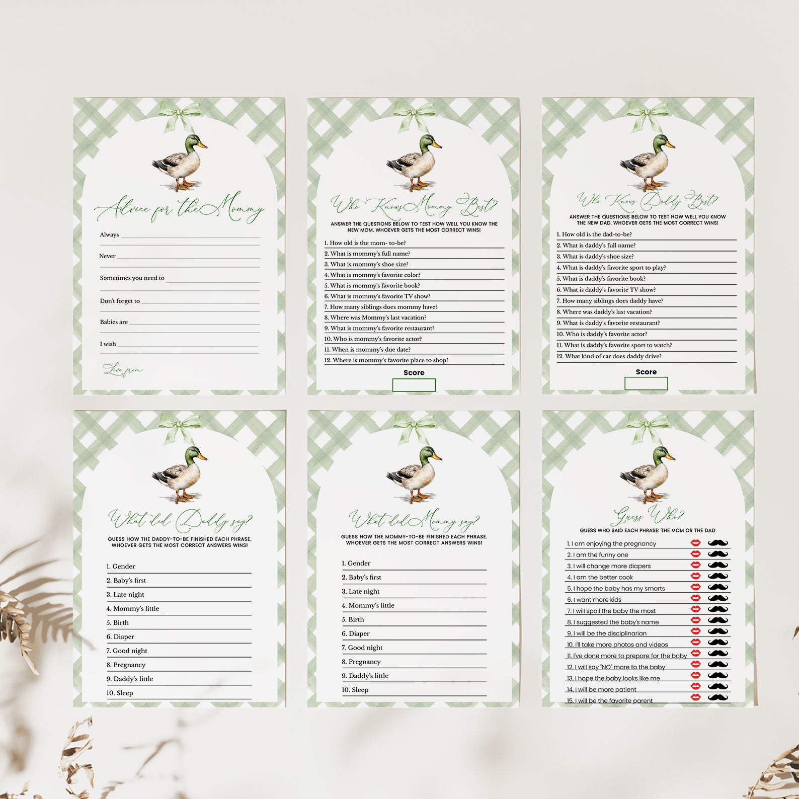 Spring Baby Boy Shower Game Bundle with Green Plaid & Mallard Duck