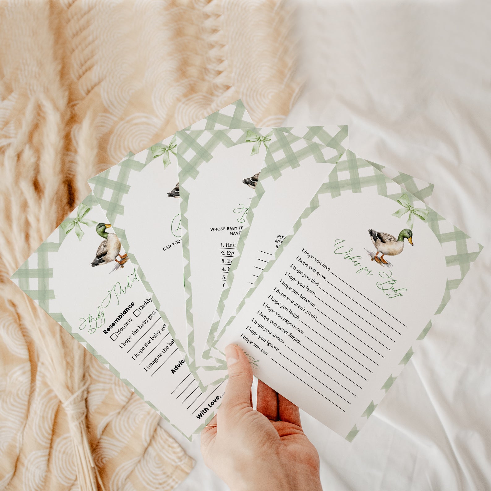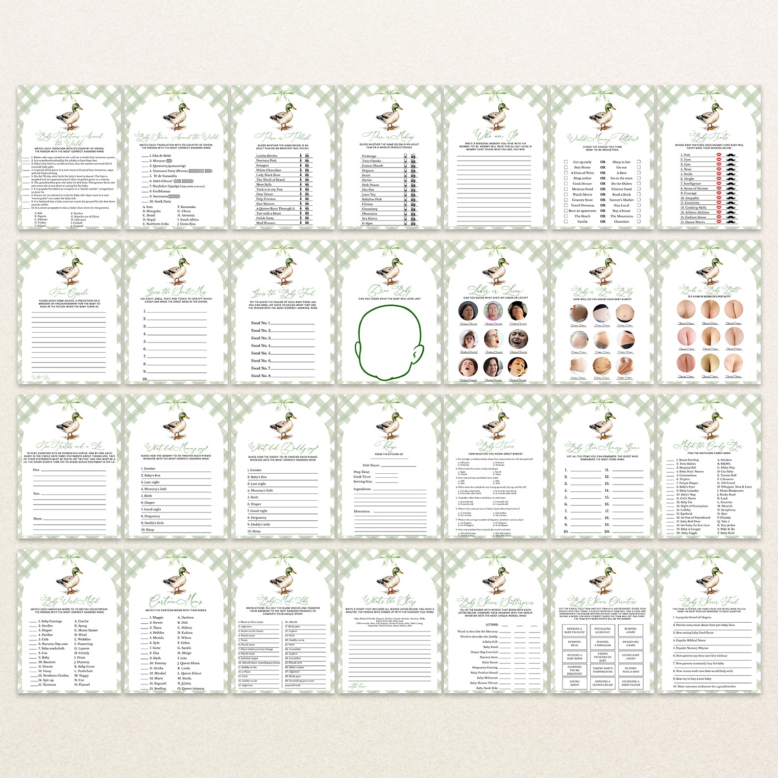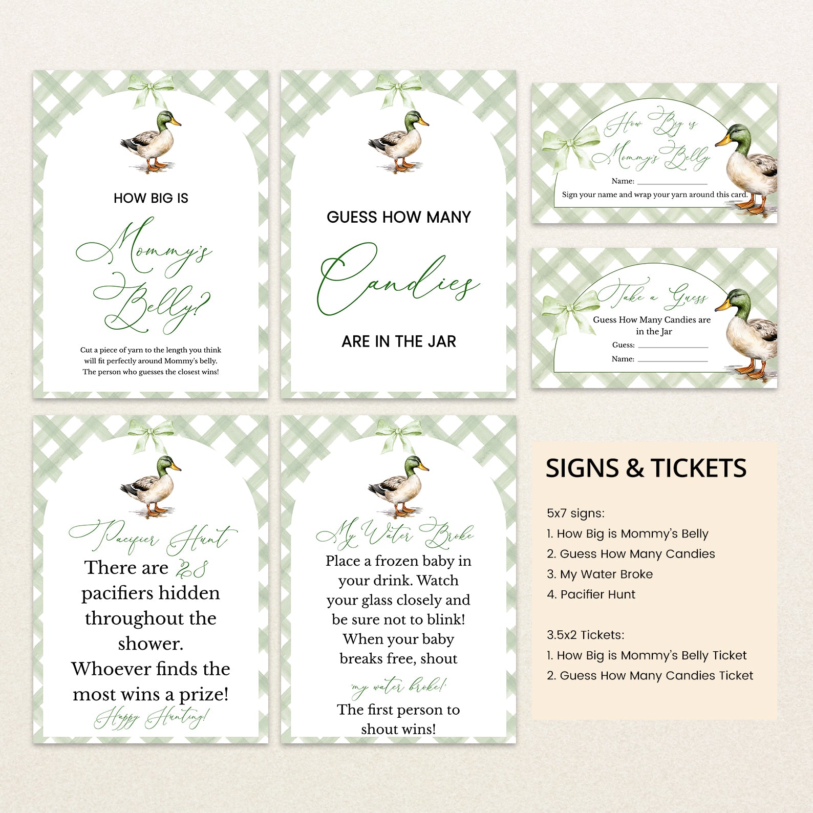 - Purchase this Spring Baby Boy Shower Game Bundle with Green Plaid & Mallard Duck template