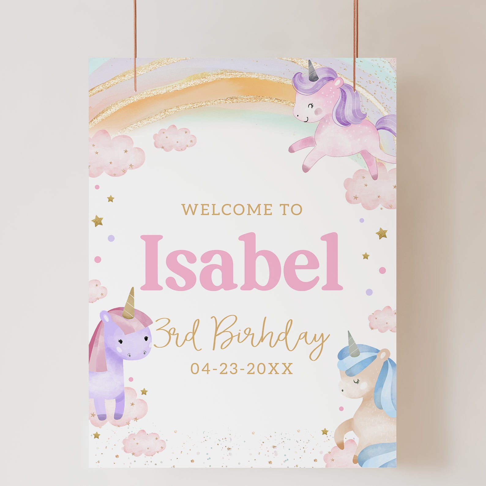 - Purchase this Magical 3rd Birthday Welcome Sign with Unicorns & Rainbows template