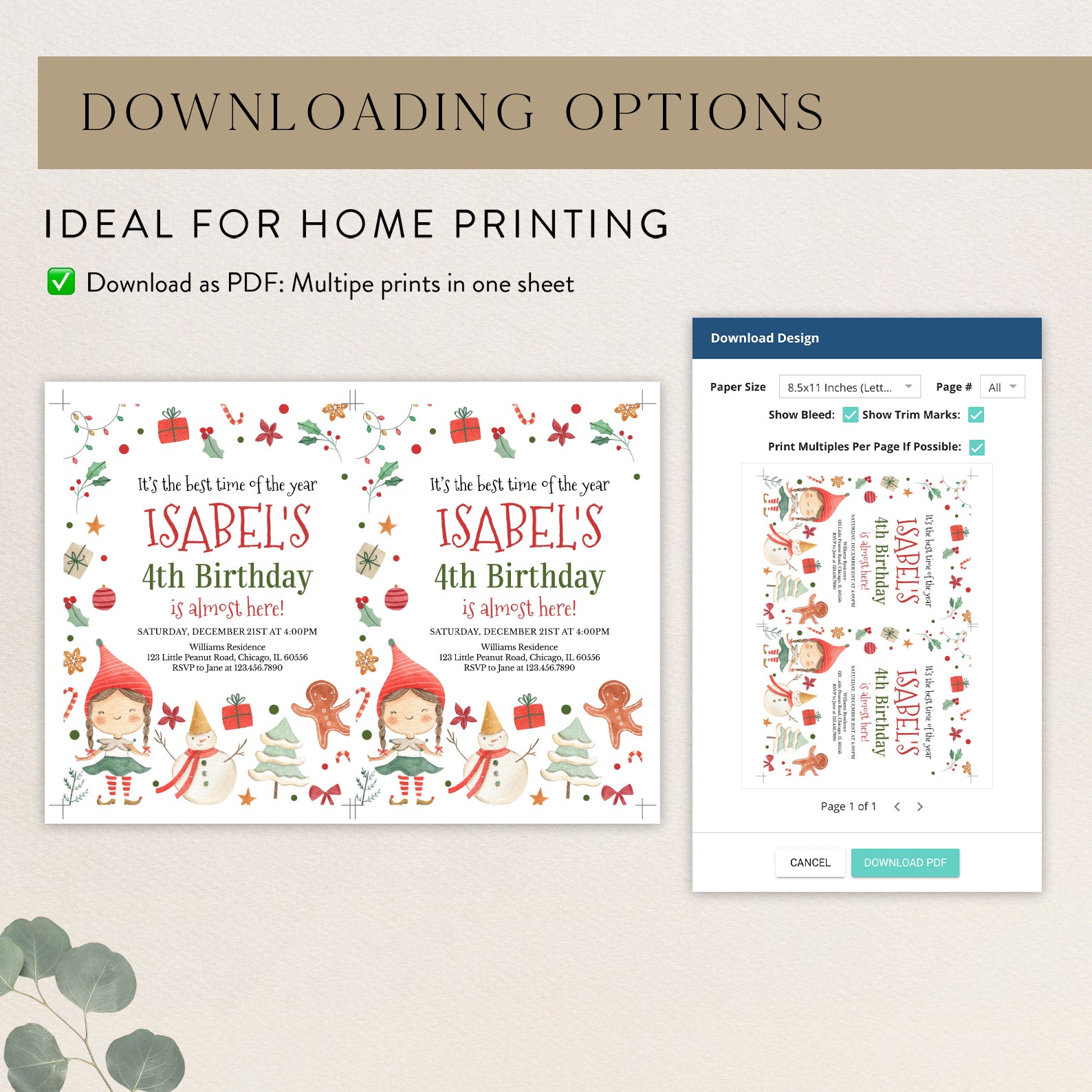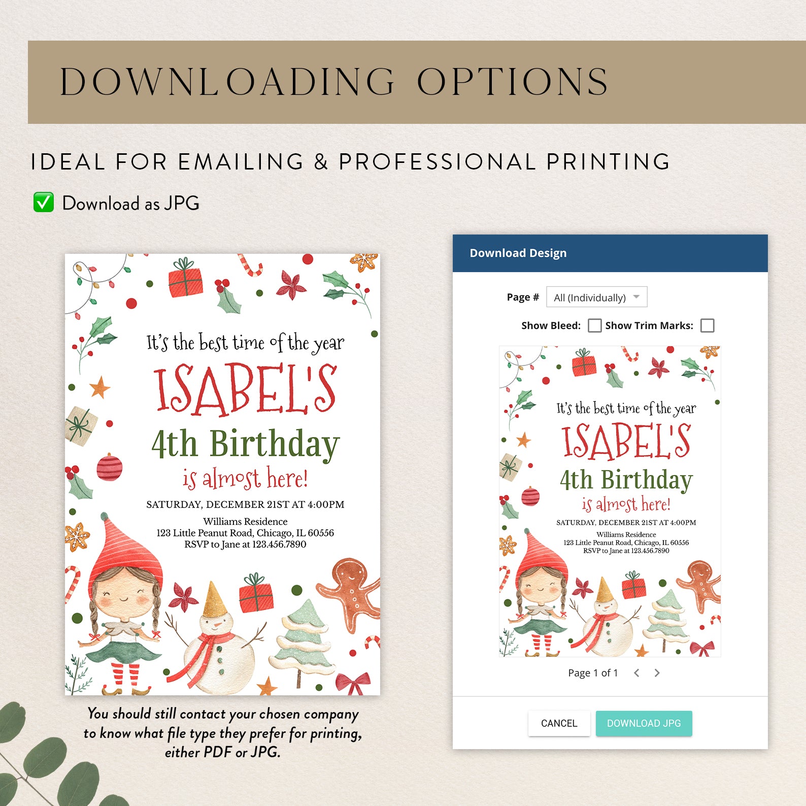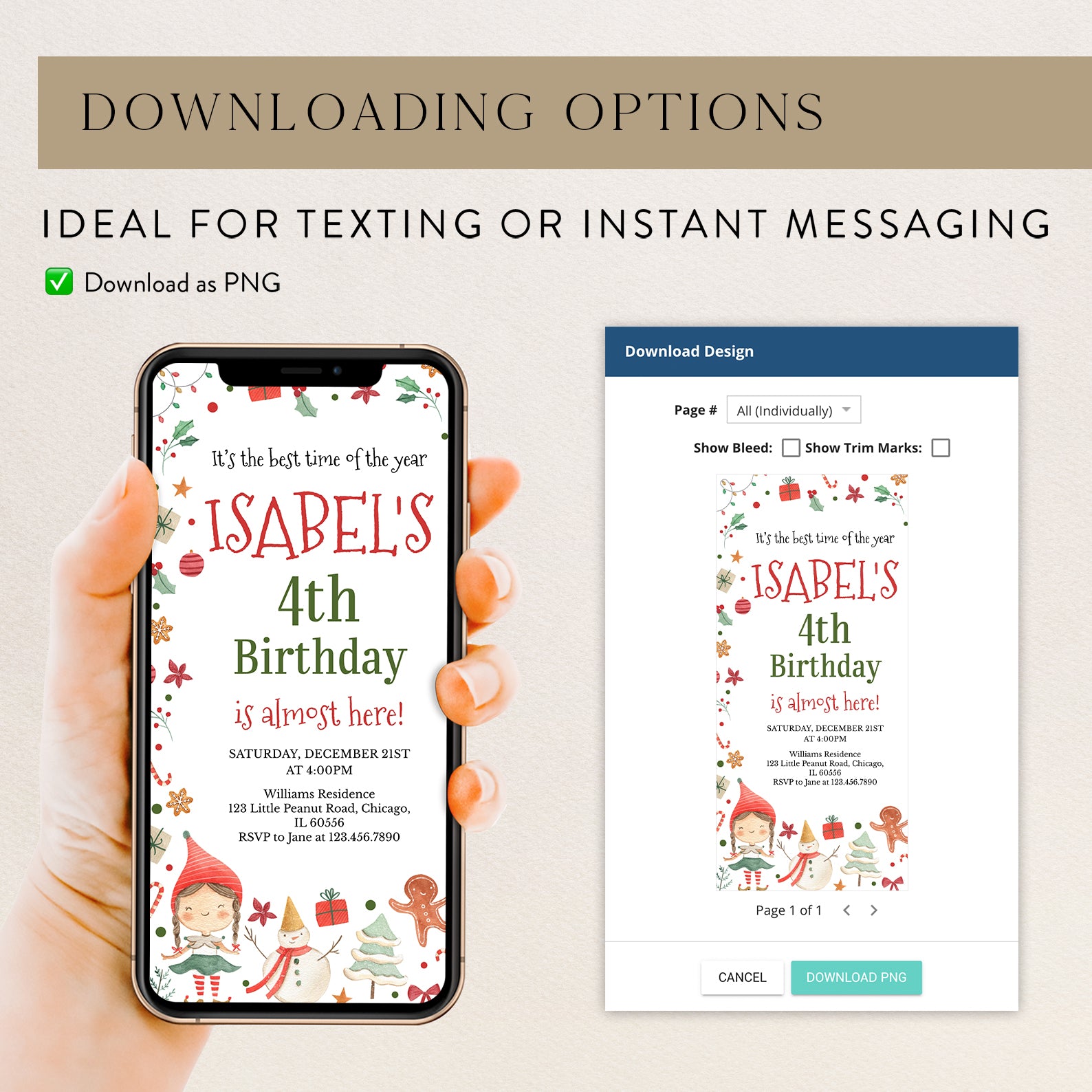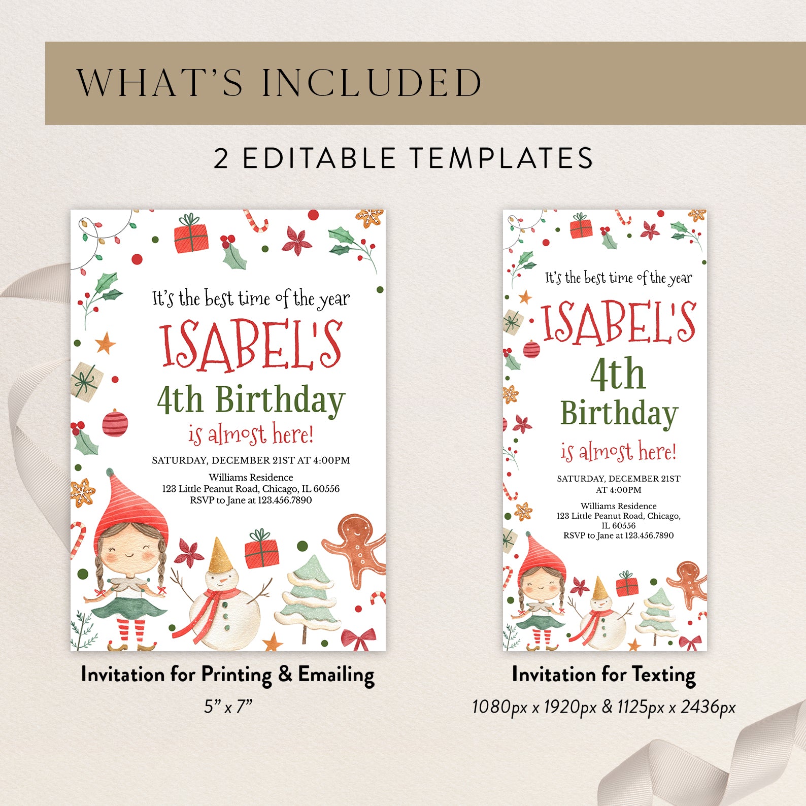 - Purchase this Festive 4th Birthday Digital Invite with Elf & Gifts template