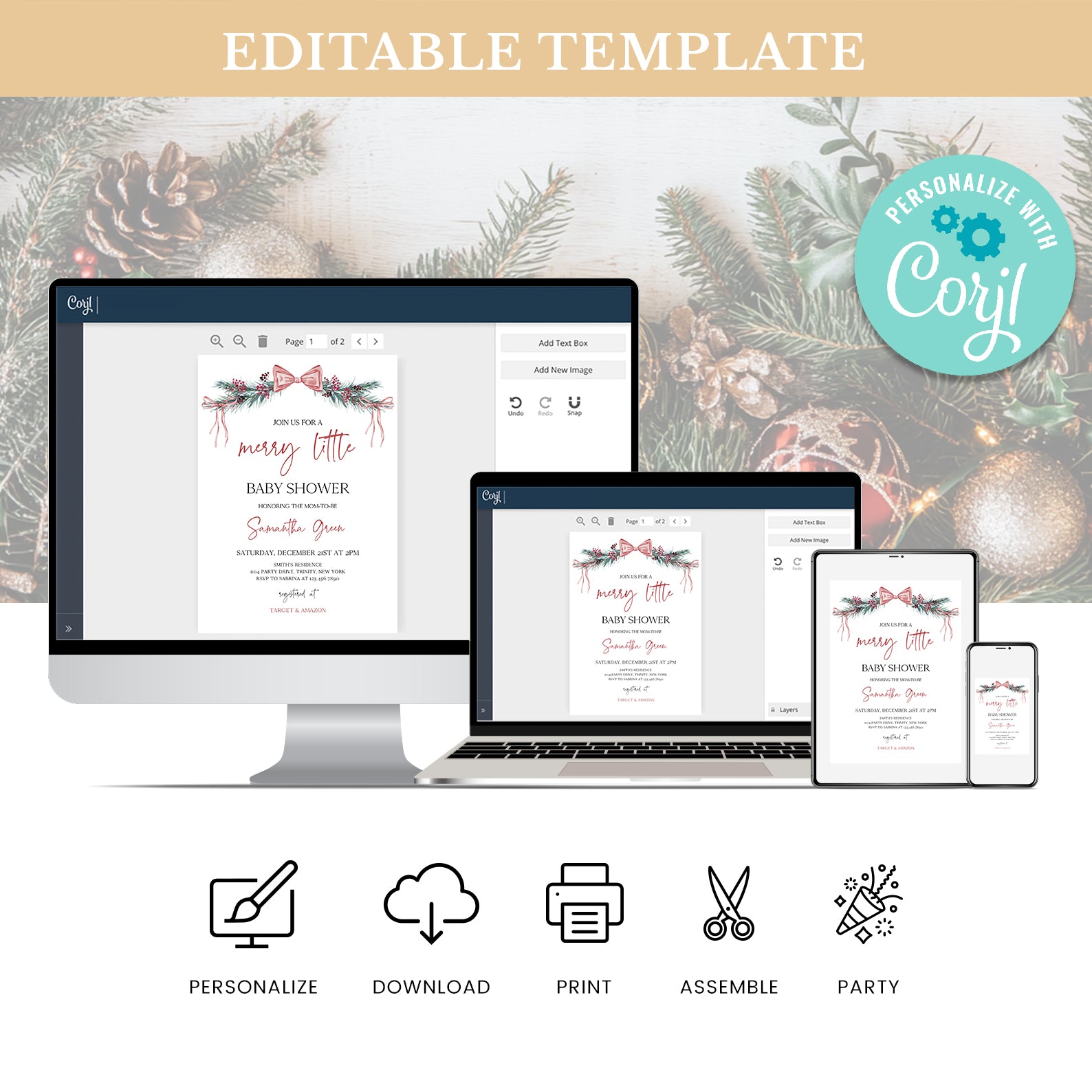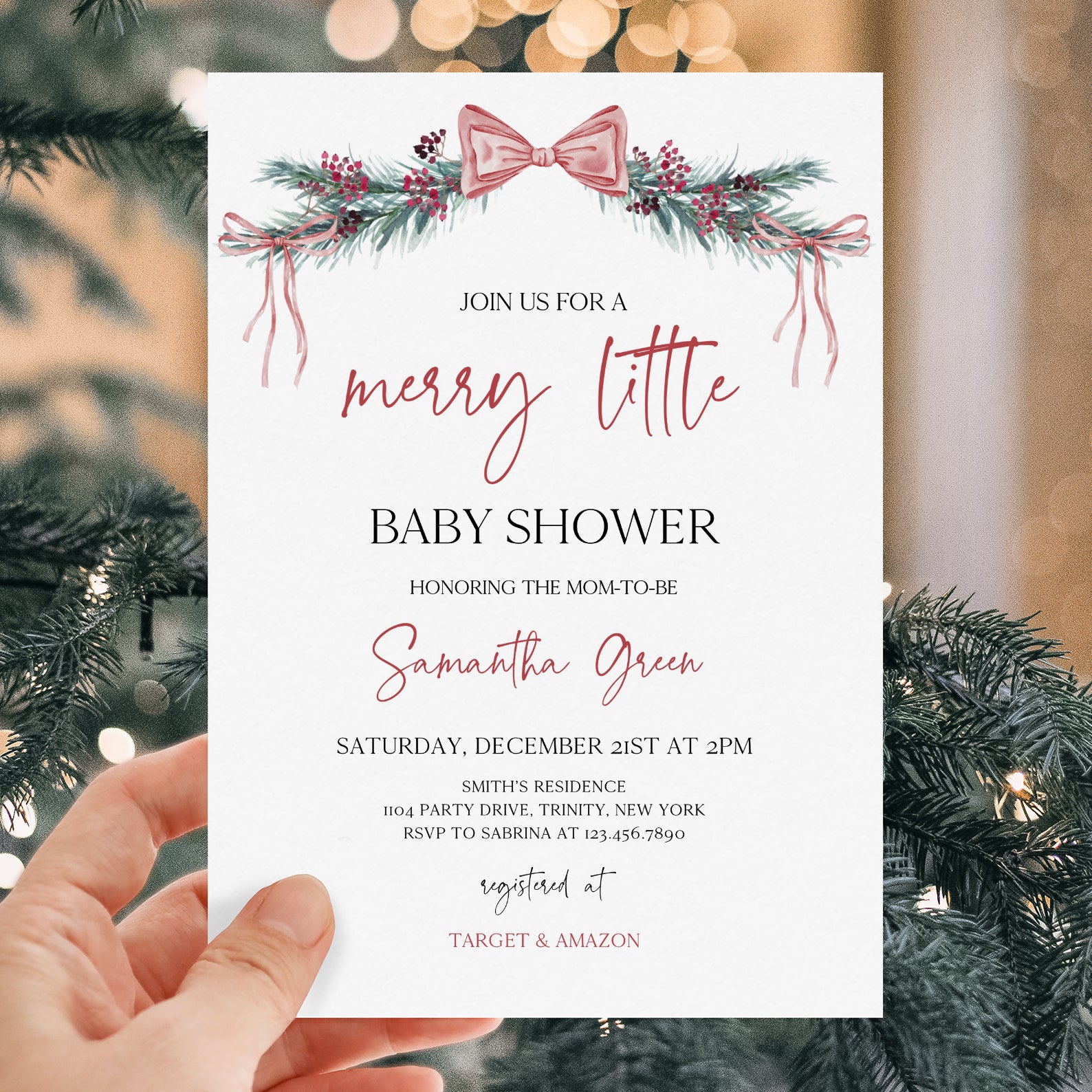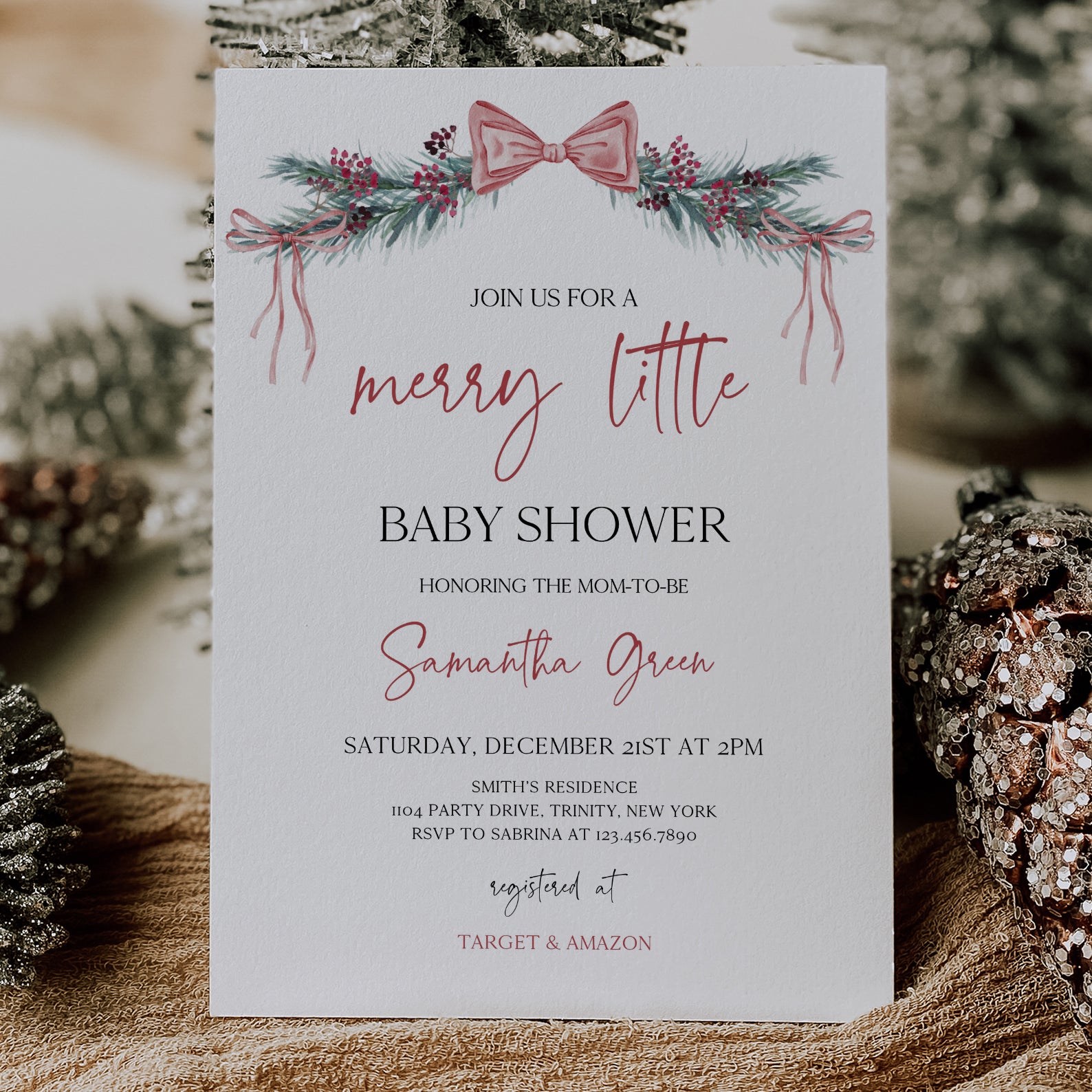 - Purchase this Merry Little Winter Baby Shower Invite with Minimalist Garland template