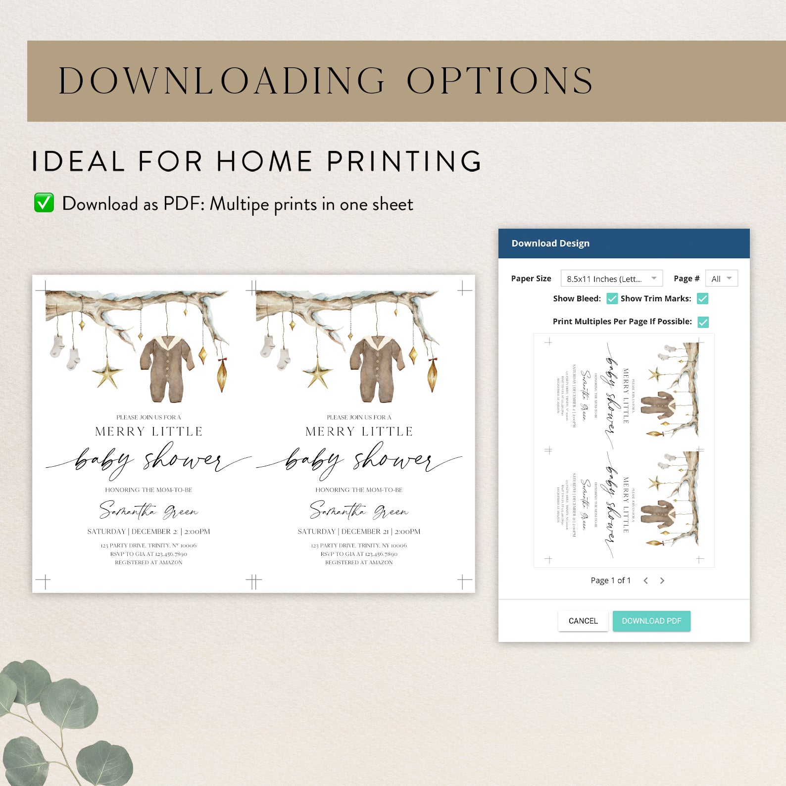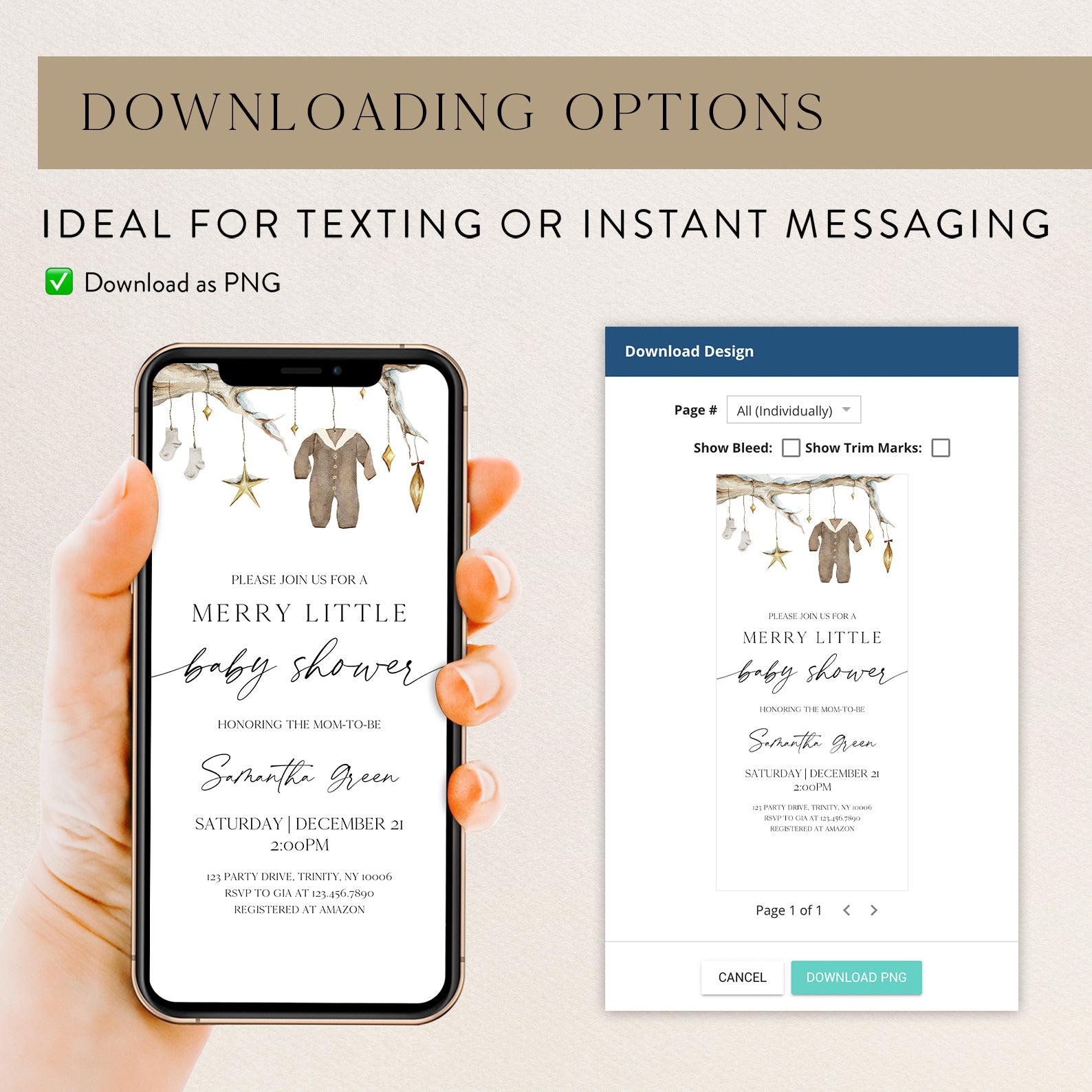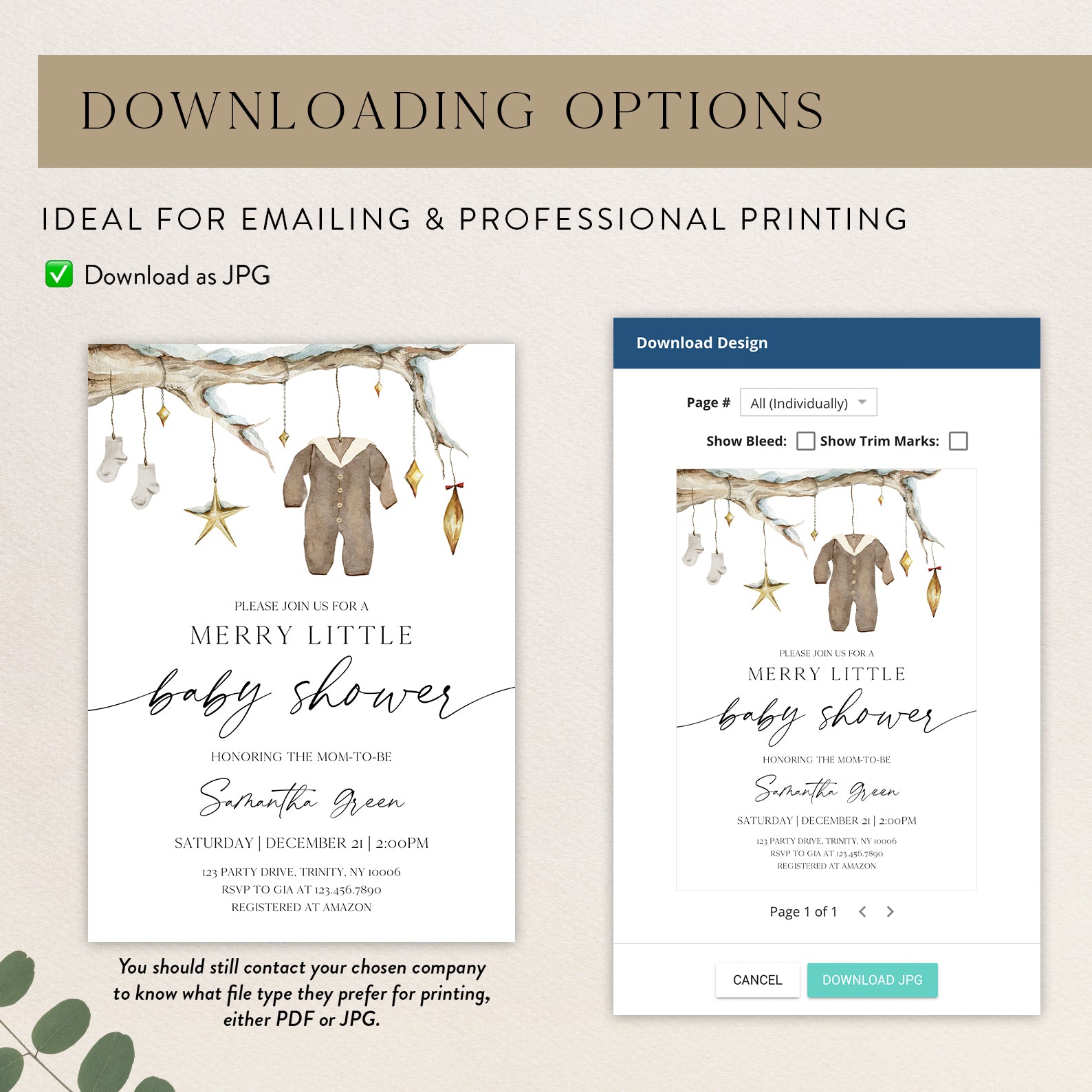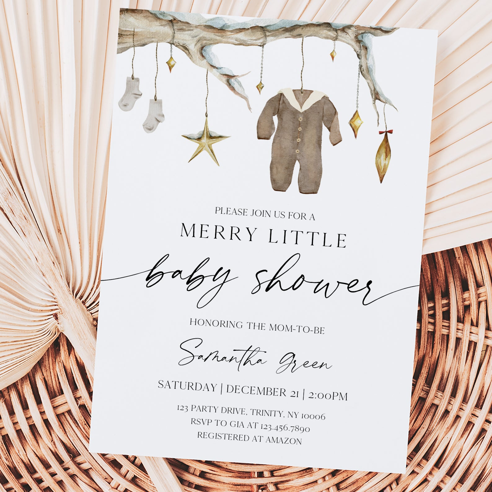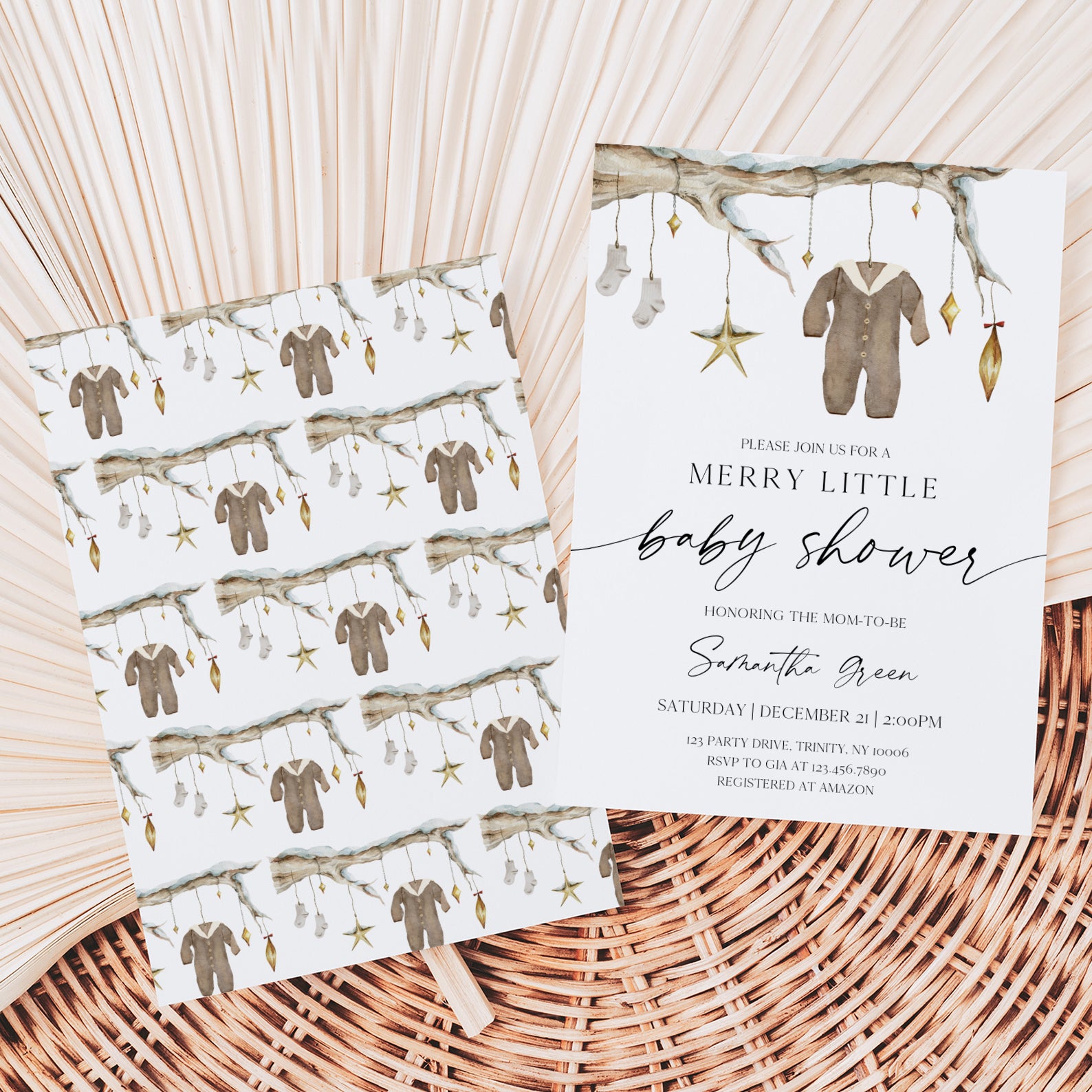 - Purchase this Minimalist Baby Shower Invite: Hanging Jumpsuit & Tree Branch template