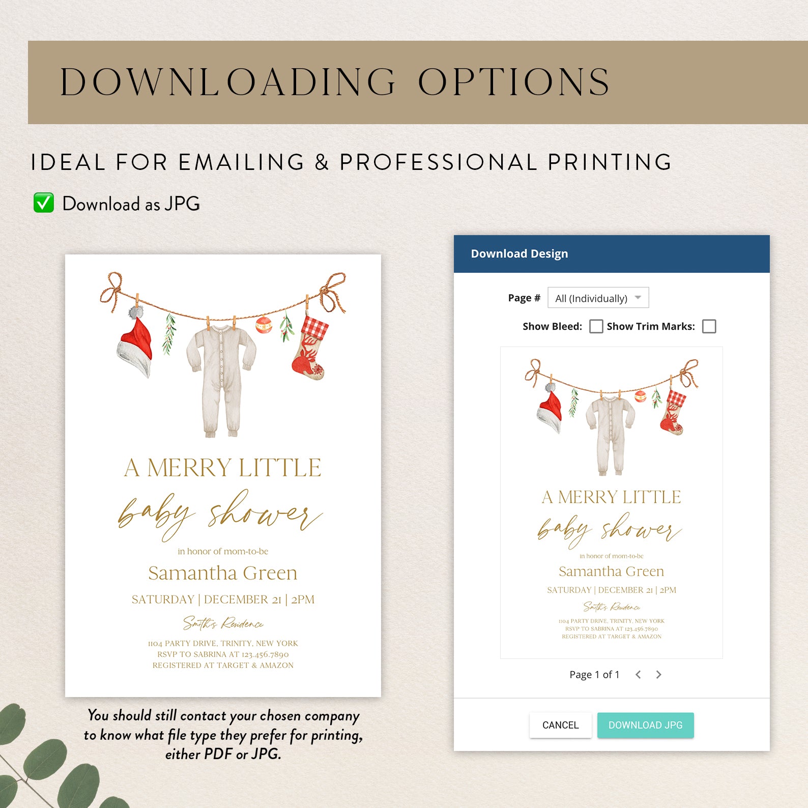 - Purchase this Minimalist Winter Baby Shower Invite Bundle: Baby Jumpsuit & Hat template