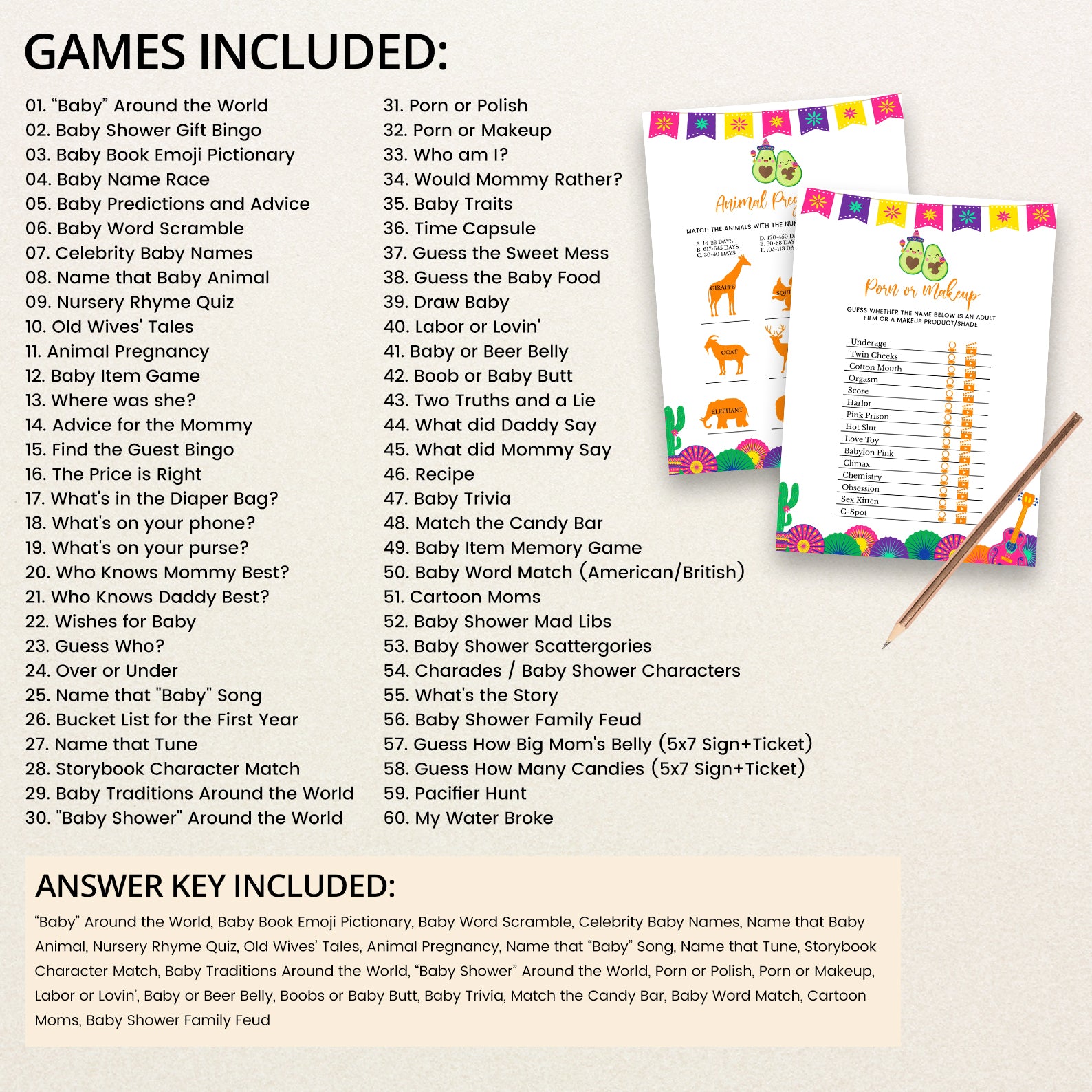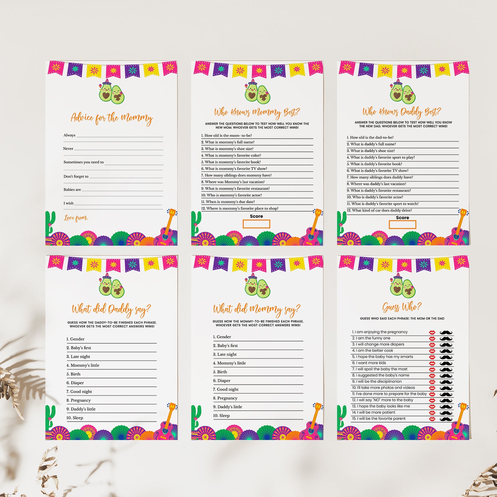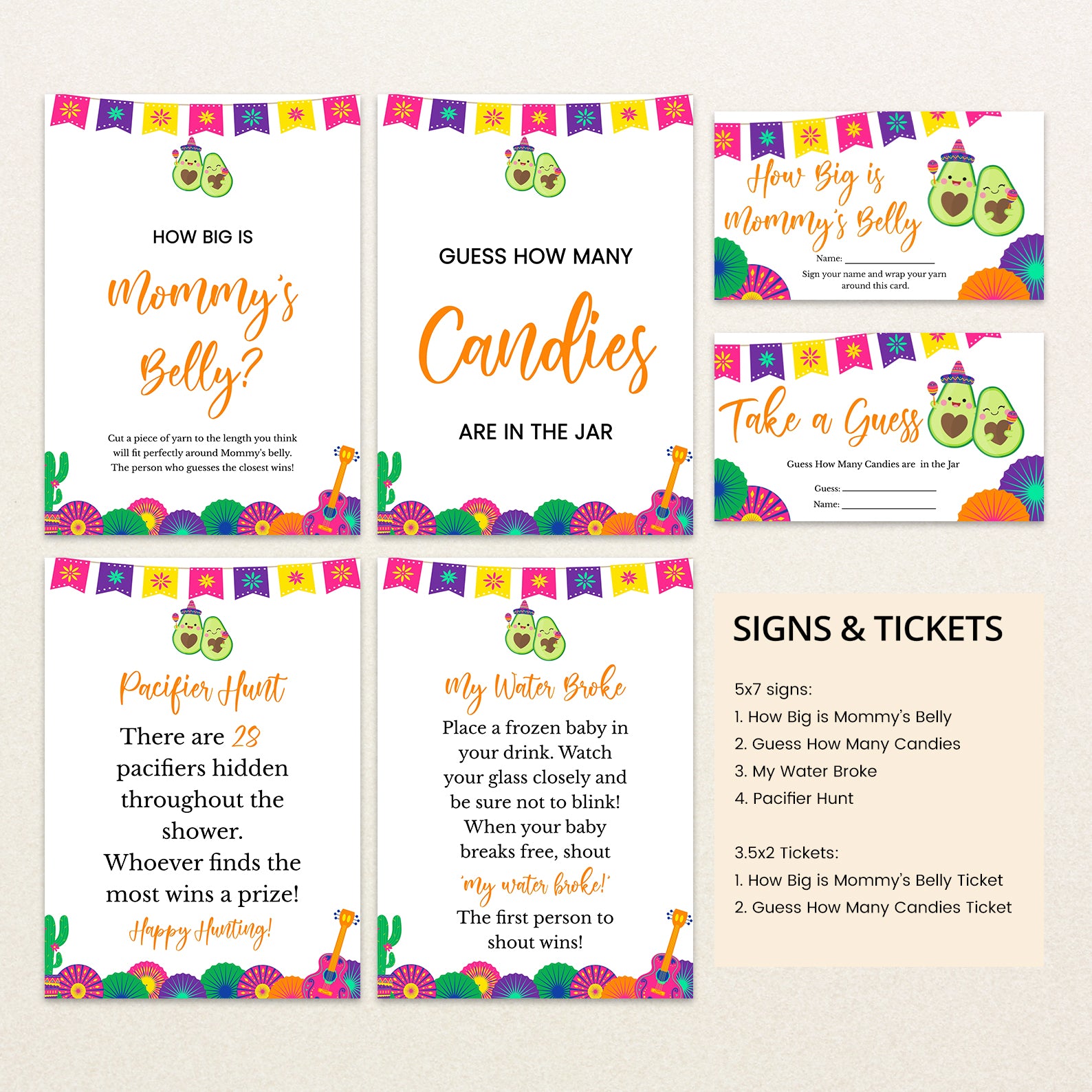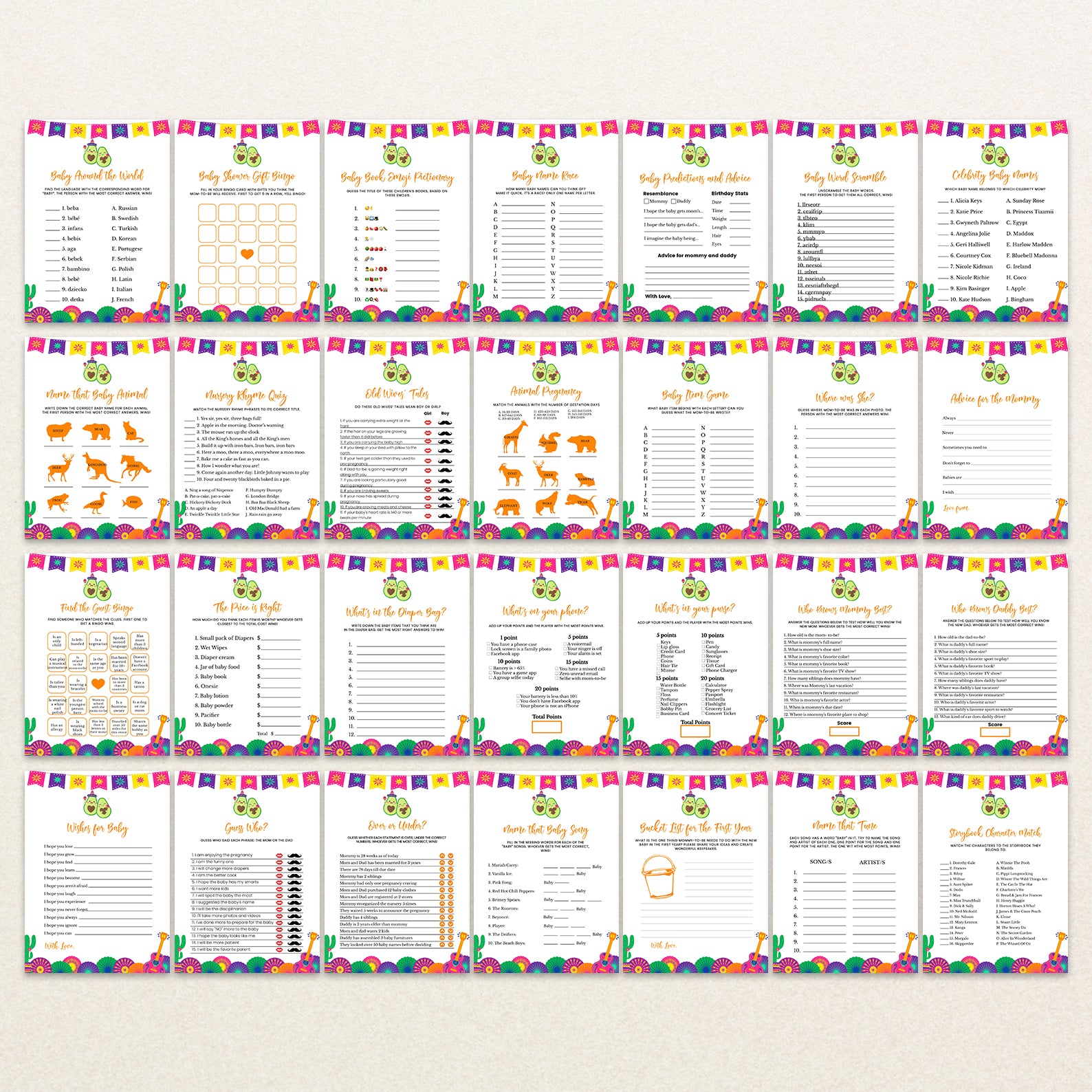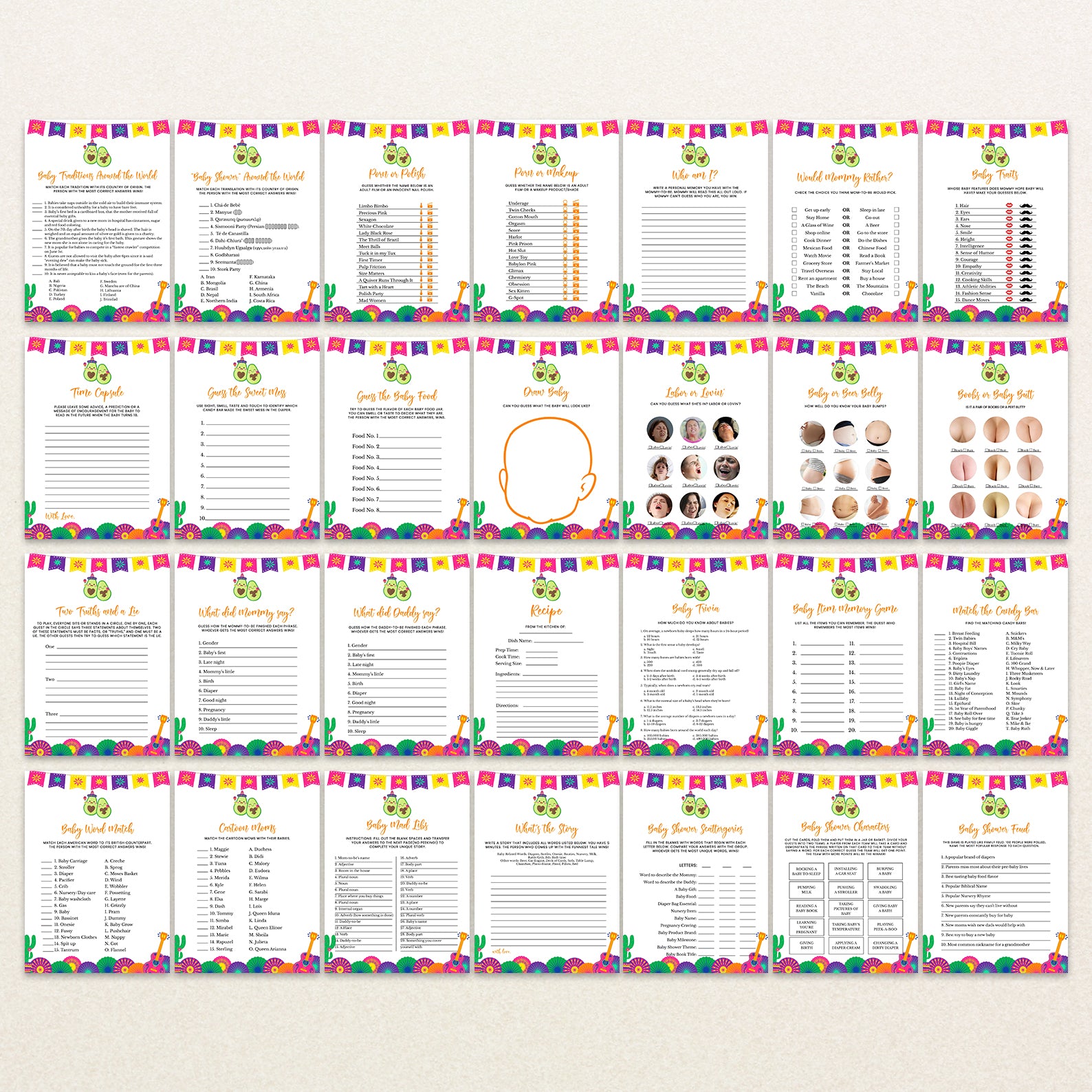 Holy Guacamole Summer Baby Shower Game Bundle: Fiesta & Avocados